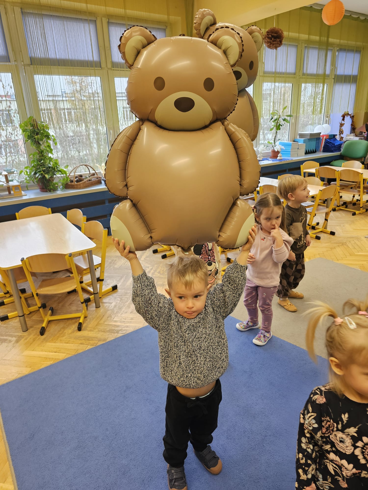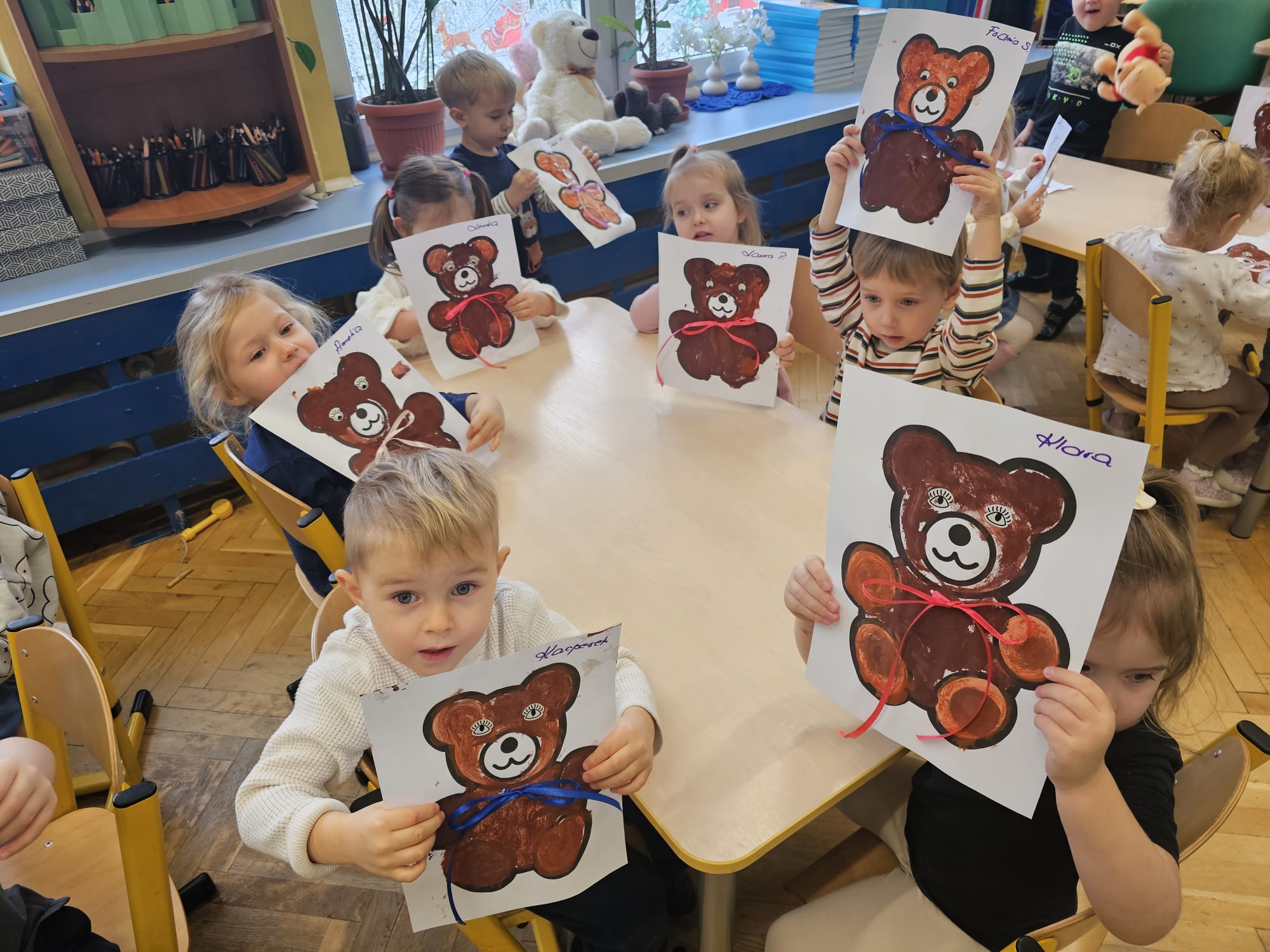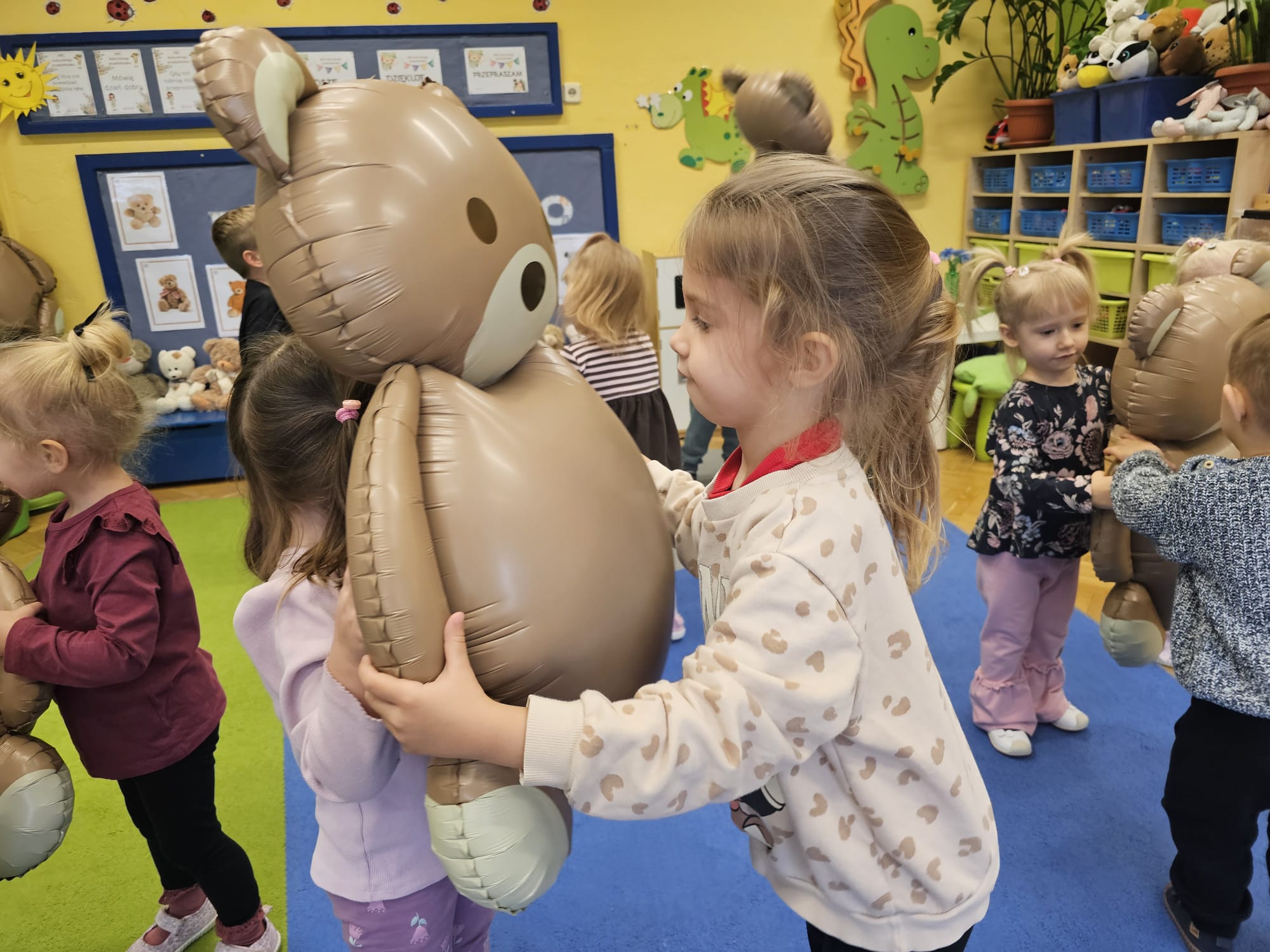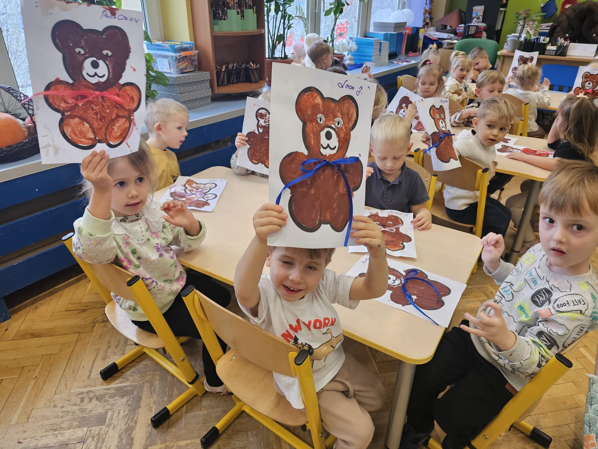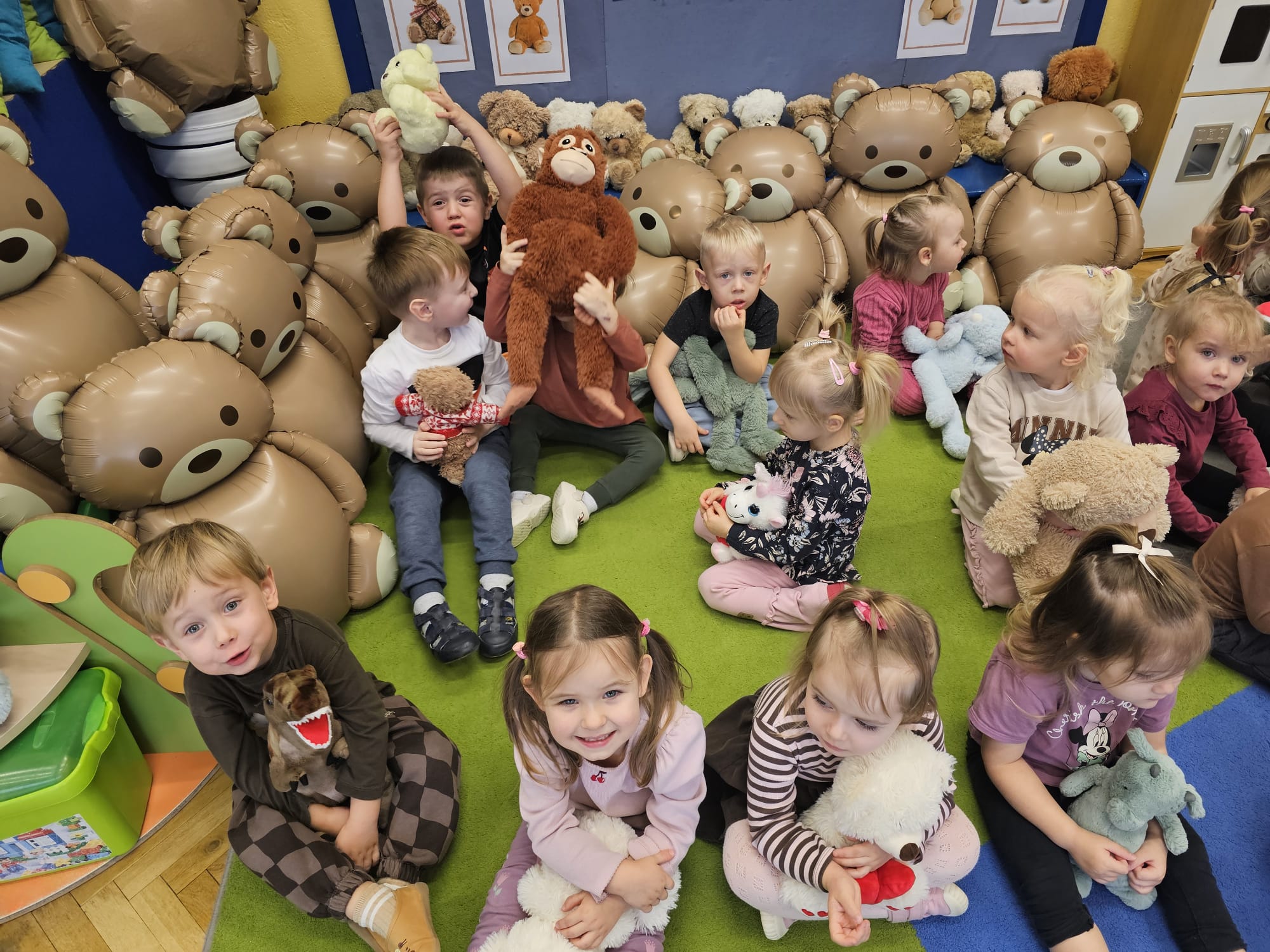 „Czy to jutro, czy to dziś – wszystkim jest potrzebny miś!”. Te słowa Heleny Behlerowej były myślą przewodnią Światowego Dnia Pluszowego Misia obchodzonego dzisiaj w naszej grupie. To bardzo ważny dzień dla każdego przedszkolaka. Miś Pluszowy, a szczególnie ten własny, wyjątkowy i ukochany, nie jest przecież zwykłą, pluszową zabawką. Jest po to, żeby było się do kogo tulić, kiedy pada deszcz i jest smutno. Ma duże uszy, żeby mieć coś do targania i kochania. Ma też bardzo miękkie łapki, za które można trzymać, kiedy się tylko chce. Taki miękki, puchaty, czy taki z łatką, to najmilsza zabawka, najlepszy przyjaciel i niezastąpiona przytulanka przy zasypianiu. Trudno byłoby wyobrazić sobie świat dziecka bez pluszowego misia, bo to przecież towarzysz beztroskiej zabawy oraz przyjaciel i powiernik największych sekretów i tajemnic. Pluszowy Miś ma po prostu magiczne moce. Wierzymy, że potrafi odstraszyć złe duchy, jest wiernym kompanem zabawy i zawsze czuwa nad swoim przyjacielem. Jak mawiała Dominika Zielińska autorka wiersza pt.: „W świecie misia”- „Kto przytuli w ciemną noc? Kto ma pocieszania moc? Kto sekretów mych nie zdradzi? Kto w potrzebie mi doradzi? Mój przyjaciel Miś maleńki, co przegania wszystkie lęki.” (…) Nic więc dziwnego, że po prostu musi obchodzić swoje święto. STO LAT MISIU! – dziś tobie śpiewamy i pod sam sufit huśtamy.