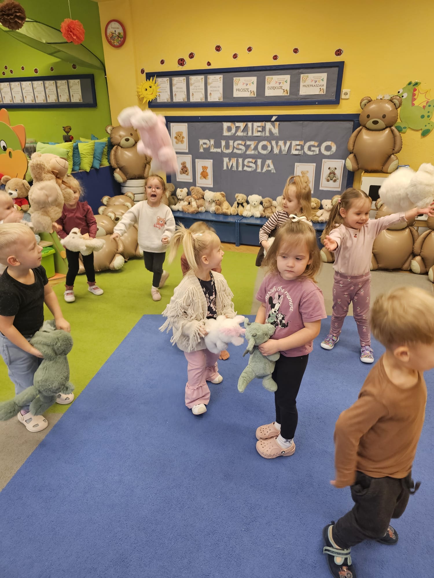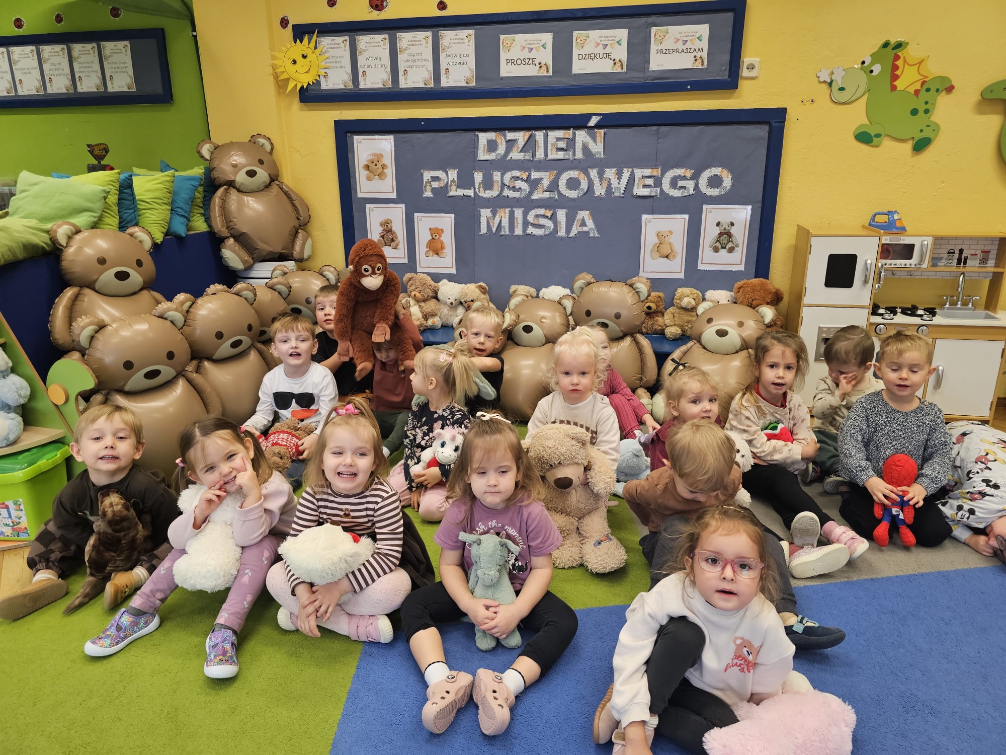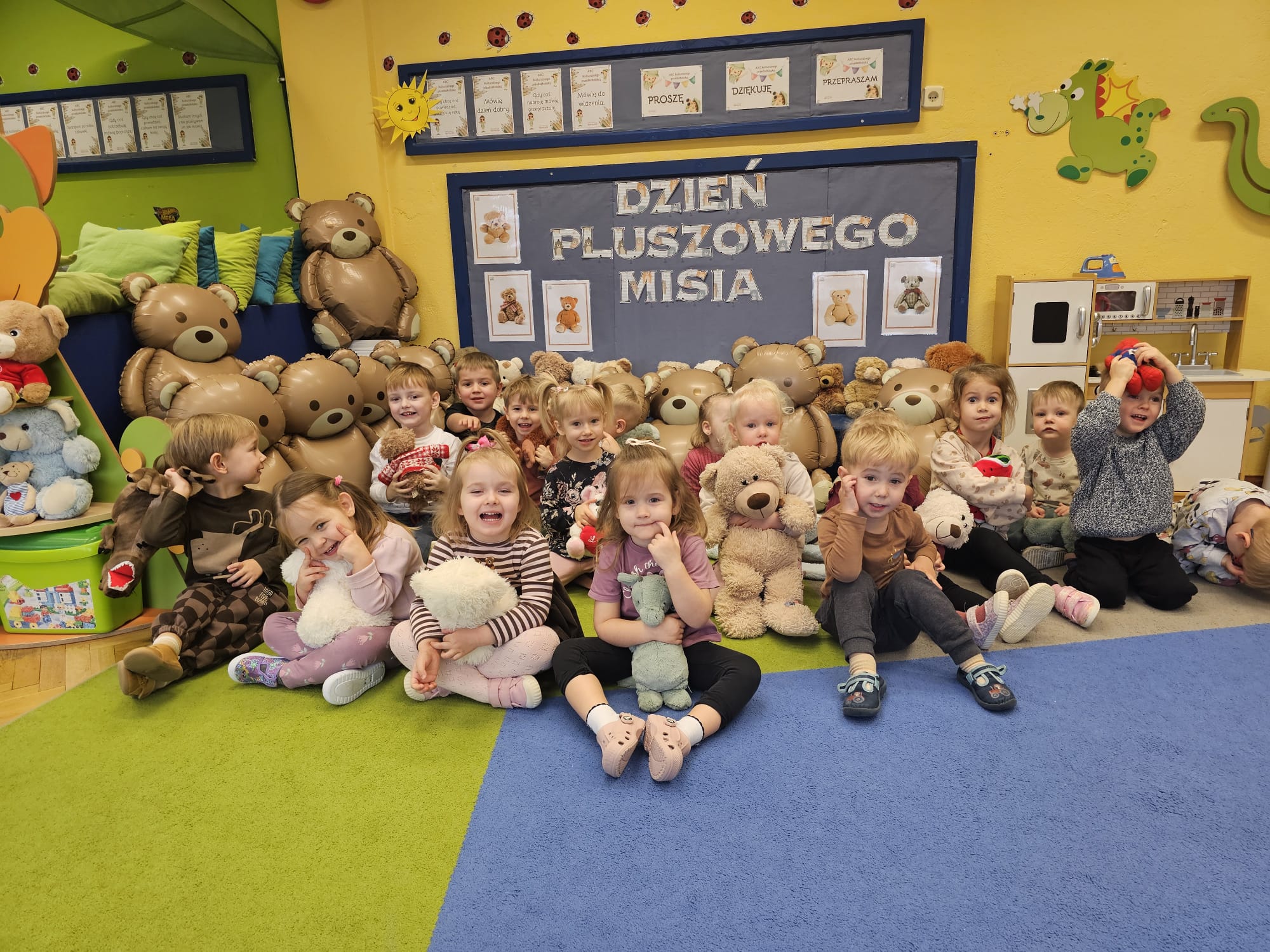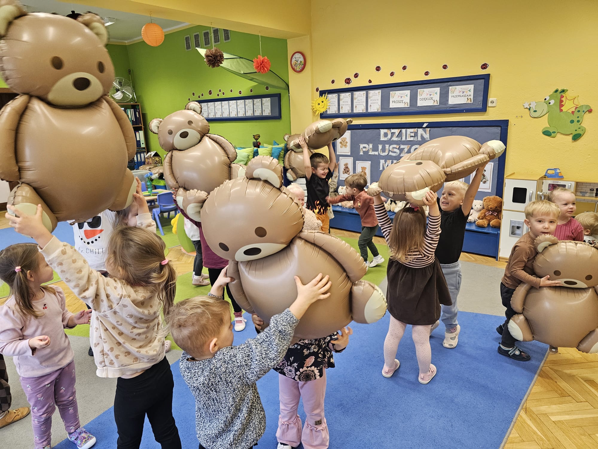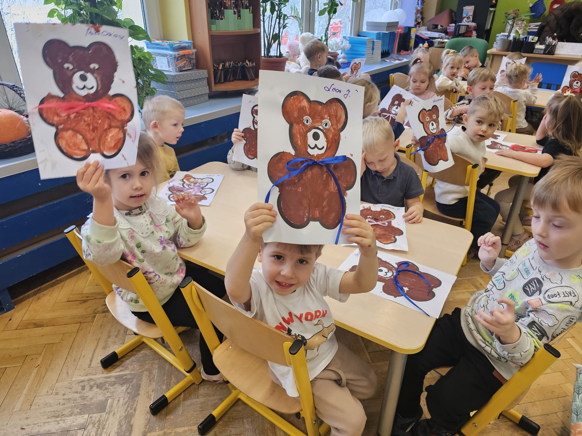 „Czy to jutro, czy to dziś – wszystkim jest potrzebny miś!”. Te słowa Heleny Behlerowej były myślą przewodnią Światowego Dnia Pluszowego Misia obchodzonego dzisiaj w naszej grupie. To bardzo ważny dzień dla każdego przedszkolaka. Miś Pluszowy, a szczególnie ten własny, wyjątkowy i ukochany, nie jest przecież zwykłą, pluszową zabawką. Jest po to, żeby było się do kogo tulić, kiedy pada deszcz i jest smutno. Ma duże uszy, żeby mieć coś do targania i kochania. Ma też bardzo miękkie łapki, za które można trzymać, kiedy się tylko chce. Taki miękki, puchaty, czy taki z łatką, to najmilsza zabawka, najlepszy przyjaciel i niezastąpiona przytulanka przy zasypianiu. Trudno byłoby wyobrazić sobie świat dziecka bez pluszowego misia, bo to przecież towarzysz beztroskiej zabawy oraz przyjaciel i powiernik największych sekretów i tajemnic. Pluszowy Miś ma po prostu magiczne moce. Wierzymy, że potrafi odstraszyć złe duchy, jest wiernym kompanem zabawy i zawsze czuwa nad swoim przyjacielem. Jak mawiała Dominika Zielińska autorka wiersza pt.: „W świecie misia”- „Kto przytuli w ciemną noc? Kto ma pocieszania moc? Kto sekretów mych nie zdradzi? Kto w potrzebie mi doradzi? Mój przyjaciel Miś maleńki, co przegania wszystkie lęki.” (…) Nic więc dziwnego, że po prostu musi obchodzić swoje święto. STO LAT MISIU! – dziś tobie śpiewamy i pod sam sufit huśtamy.