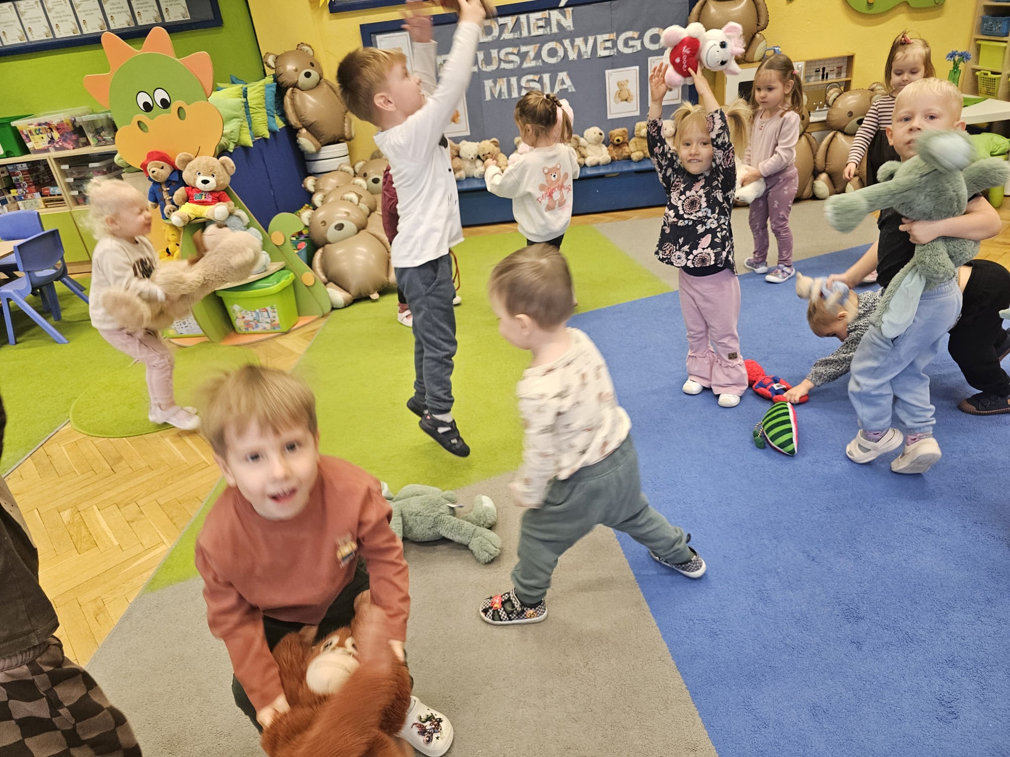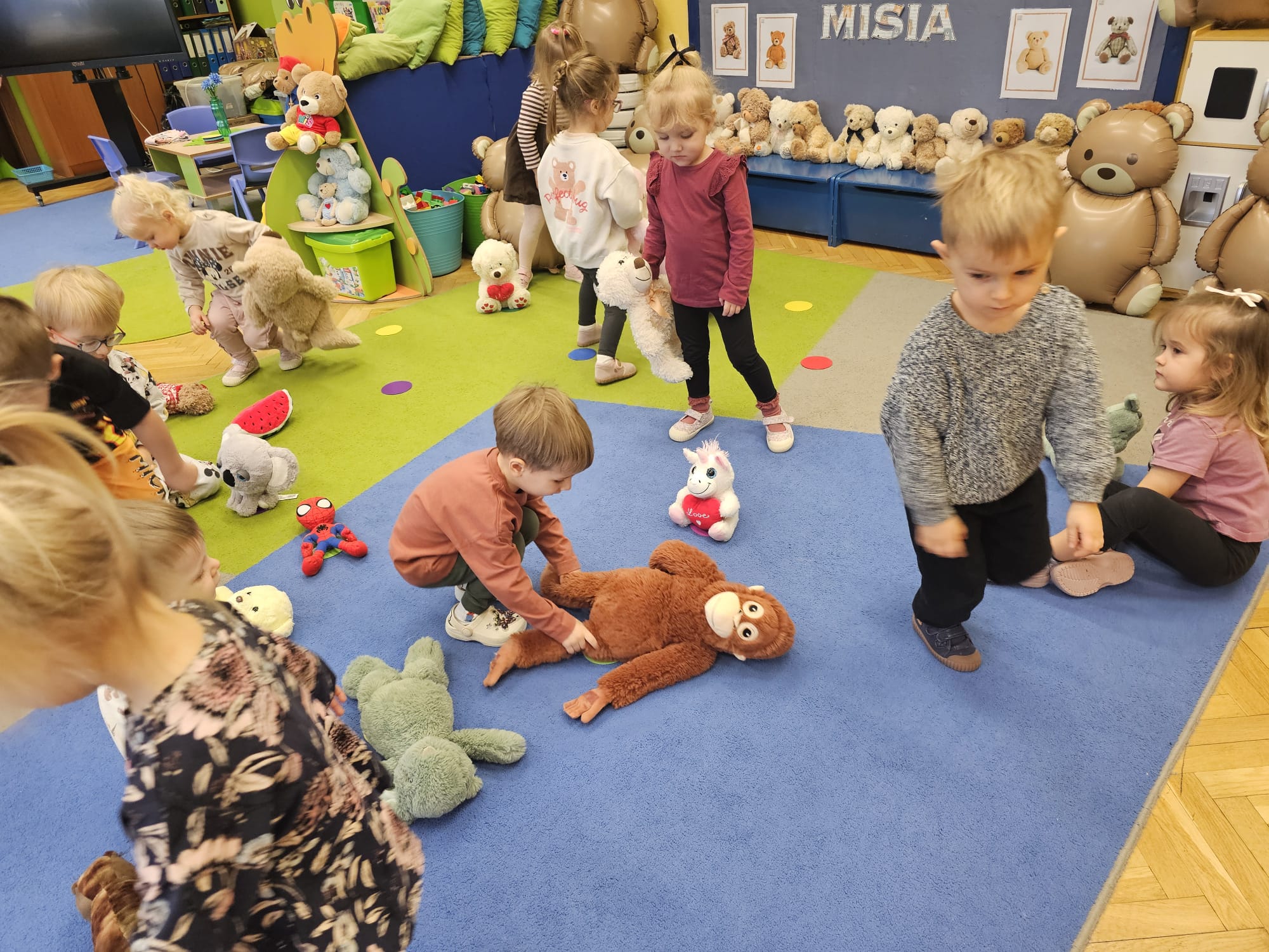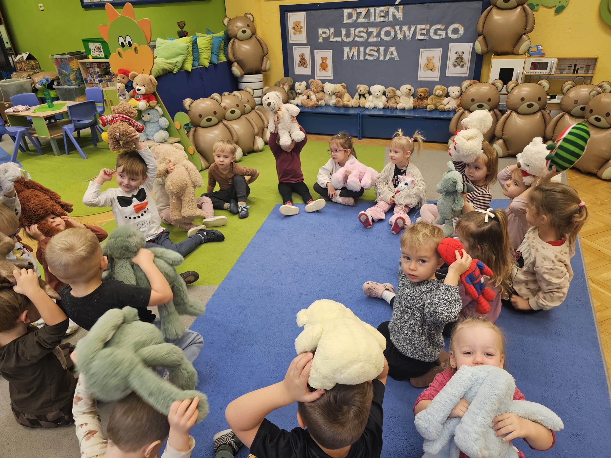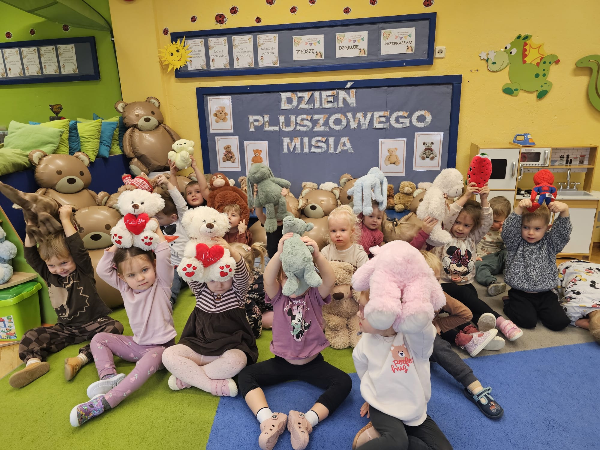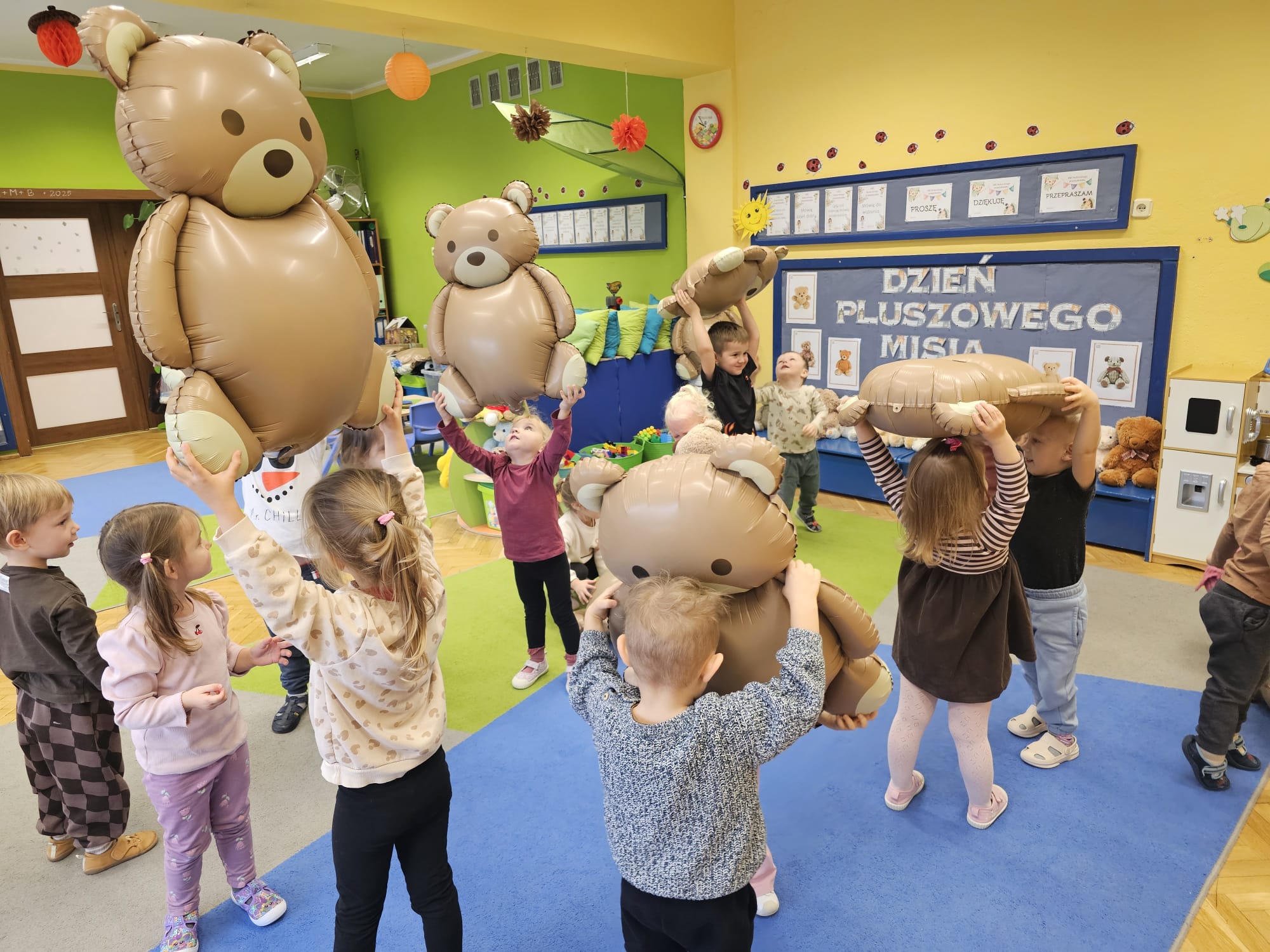 „Czy to jutro, czy to dziś – wszystkim jest potrzebny miś!”. Te słowa Heleny Behlerowej były myślą przewodnią Światowego Dnia Pluszowego Misia obchodzonego dzisiaj w naszej grupie. To bardzo ważny dzień dla każdego przedszkolaka. Miś Pluszowy, a szczególnie ten własny, wyjątkowy i ukochany, nie jest przecież zwykłą, pluszową zabawką. Jest po to, żeby było się do kogo tulić, kiedy pada deszcz i jest smutno. Ma duże uszy, żeby mieć coś do targania i kochania. Ma też bardzo miękkie łapki, za które można trzymać, kiedy się tylko chce. Taki miękki, puchaty, czy taki z łatką, to najmilsza zabawka, najlepszy przyjaciel i niezastąpiona przytulanka przy zasypianiu. Trudno byłoby wyobrazić sobie świat dziecka bez pluszowego misia, bo to przecież towarzysz beztroskiej zabawy oraz przyjaciel i powiernik największych sekretów i tajemnic. Pluszowy Miś ma po prostu magiczne moce. Wierzymy, że potrafi odstraszyć złe duchy, jest wiernym kompanem zabawy i zawsze czuwa nad swoim przyjacielem. Jak mawiała Dominika Zielińska autorka wiersza pt.: „W świecie misia”- „Kto przytuli w ciemną noc? Kto ma pocieszania moc? Kto sekretów mych nie zdradzi? Kto w potrzebie mi doradzi? Mój przyjaciel Miś maleńki, co przegania wszystkie lęki.” (…) Nic więc dziwnego, że po prostu musi obchodzić swoje święto. STO LAT MISIU! – dziś tobie śpiewamy i pod sam sufit huśtamy.