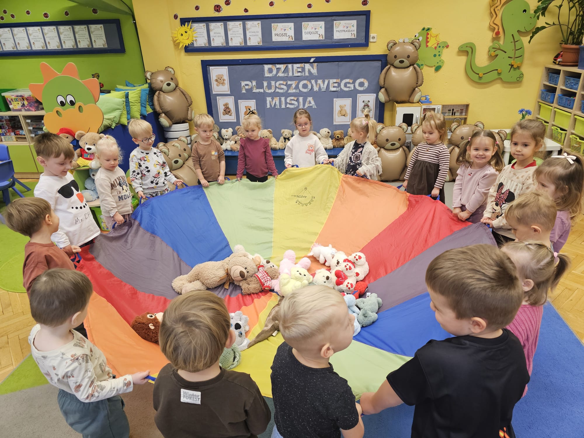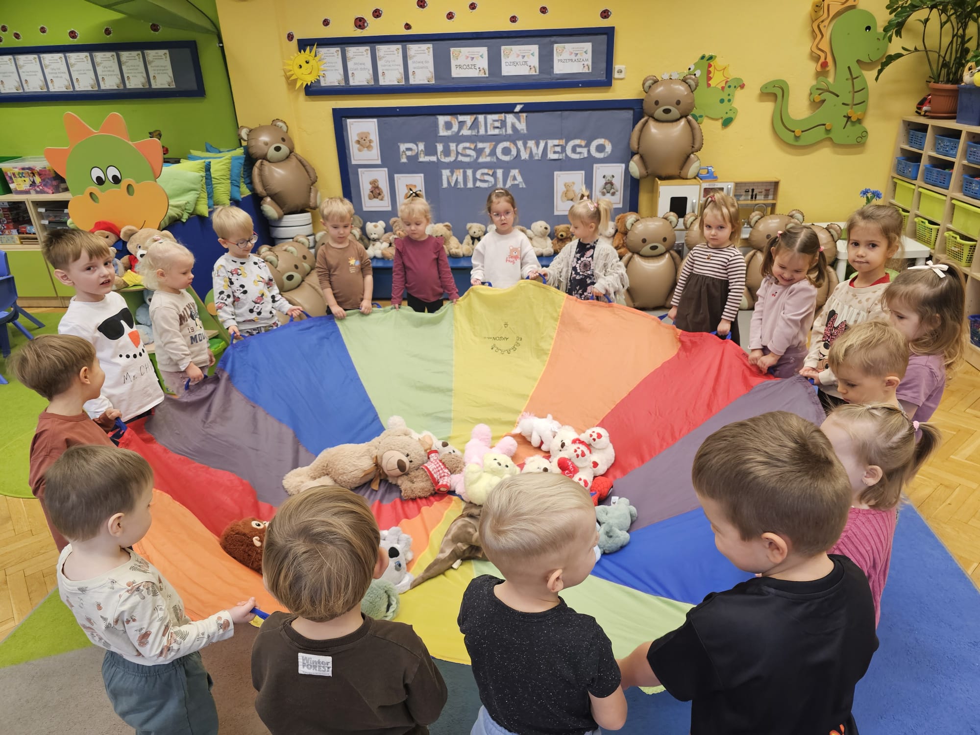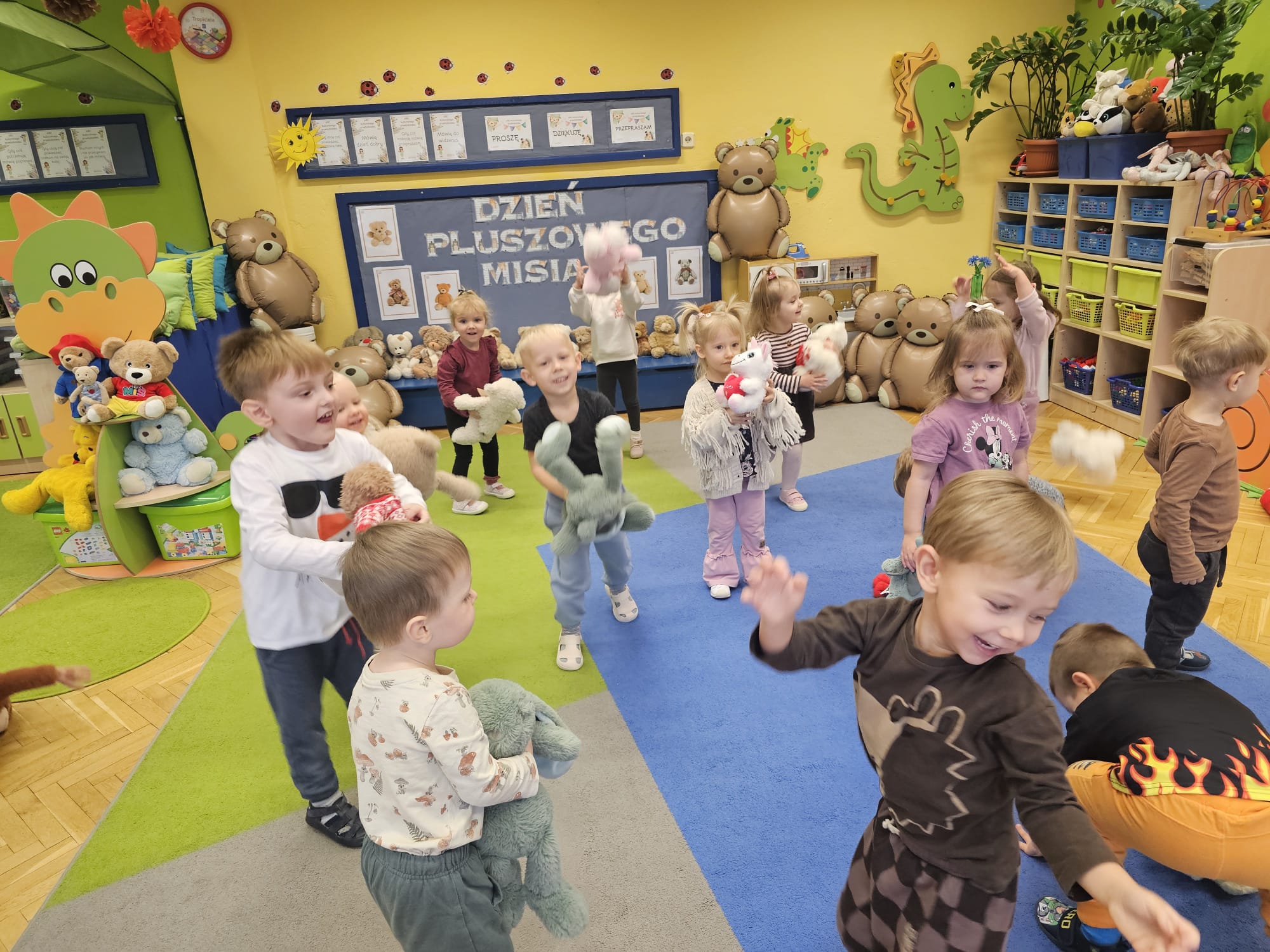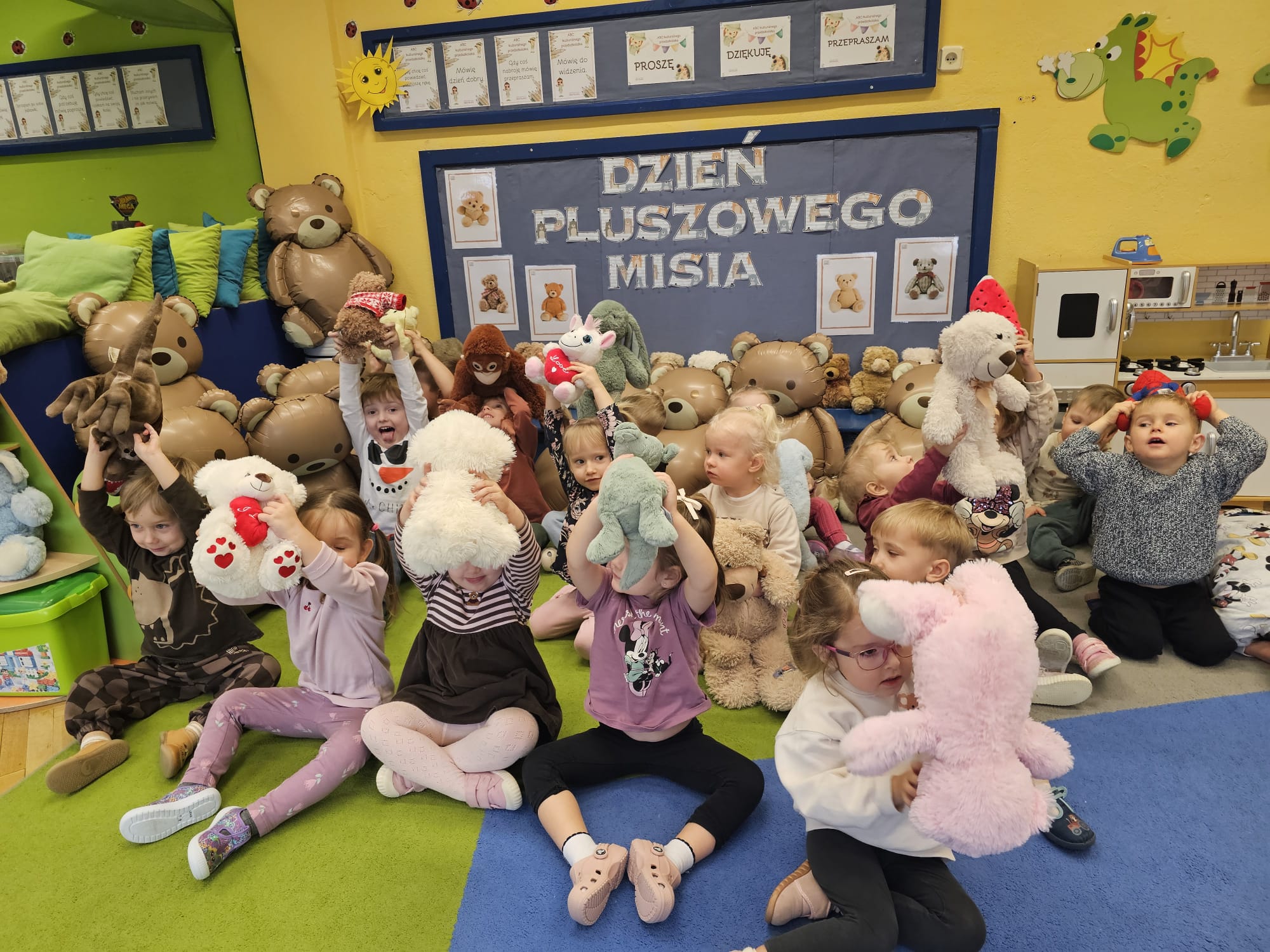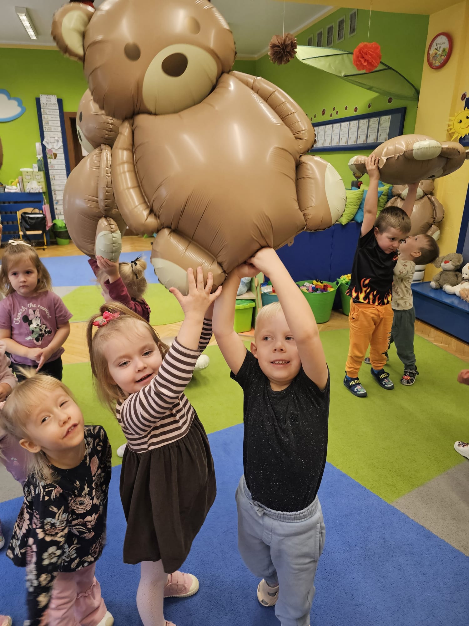 „Czy to jutro, czy to dziś – wszystkim jest potrzebny miś!”. Te słowa Heleny Behlerowej były myślą przewodnią Światowego Dnia Pluszowego Misia obchodzonego dzisiaj w naszej grupie. To bardzo ważny dzień dla każdego przedszkolaka. Miś Pluszowy, a szczególnie ten własny, wyjątkowy i ukochany, nie jest przecież zwykłą, pluszową zabawką. Jest po to, żeby było się do kogo tulić, kiedy pada deszcz i jest smutno. Ma duże uszy, żeby mieć coś do targania i kochania. Ma też bardzo miękkie łapki, za które można trzymać, kiedy się tylko chce. Taki miękki, puchaty, czy taki z łatką, to najmilsza zabawka, najlepszy przyjaciel i niezastąpiona przytulanka przy zasypianiu. Trudno byłoby wyobrazić sobie świat dziecka bez pluszowego misia, bo to przecież towarzysz beztroskiej zabawy oraz przyjaciel i powiernik największych sekretów i tajemnic. Pluszowy Miś ma po prostu magiczne moce. Wierzymy, że potrafi odstraszyć złe duchy, jest wiernym kompanem zabawy i zawsze czuwa nad swoim przyjacielem. Jak mawiała Dominika Zielińska autorka wiersza pt.: „W świecie misia”- „Kto przytuli w ciemną noc? Kto ma pocieszania moc? Kto sekretów mych nie zdradzi? Kto w potrzebie mi doradzi? Mój przyjaciel Miś maleńki, co przegania wszystkie lęki.” (…) Nic więc dziwnego, że po prostu musi obchodzić swoje święto. STO LAT MISIU! – dziś tobie śpiewamy i pod sam sufit huśtamy.