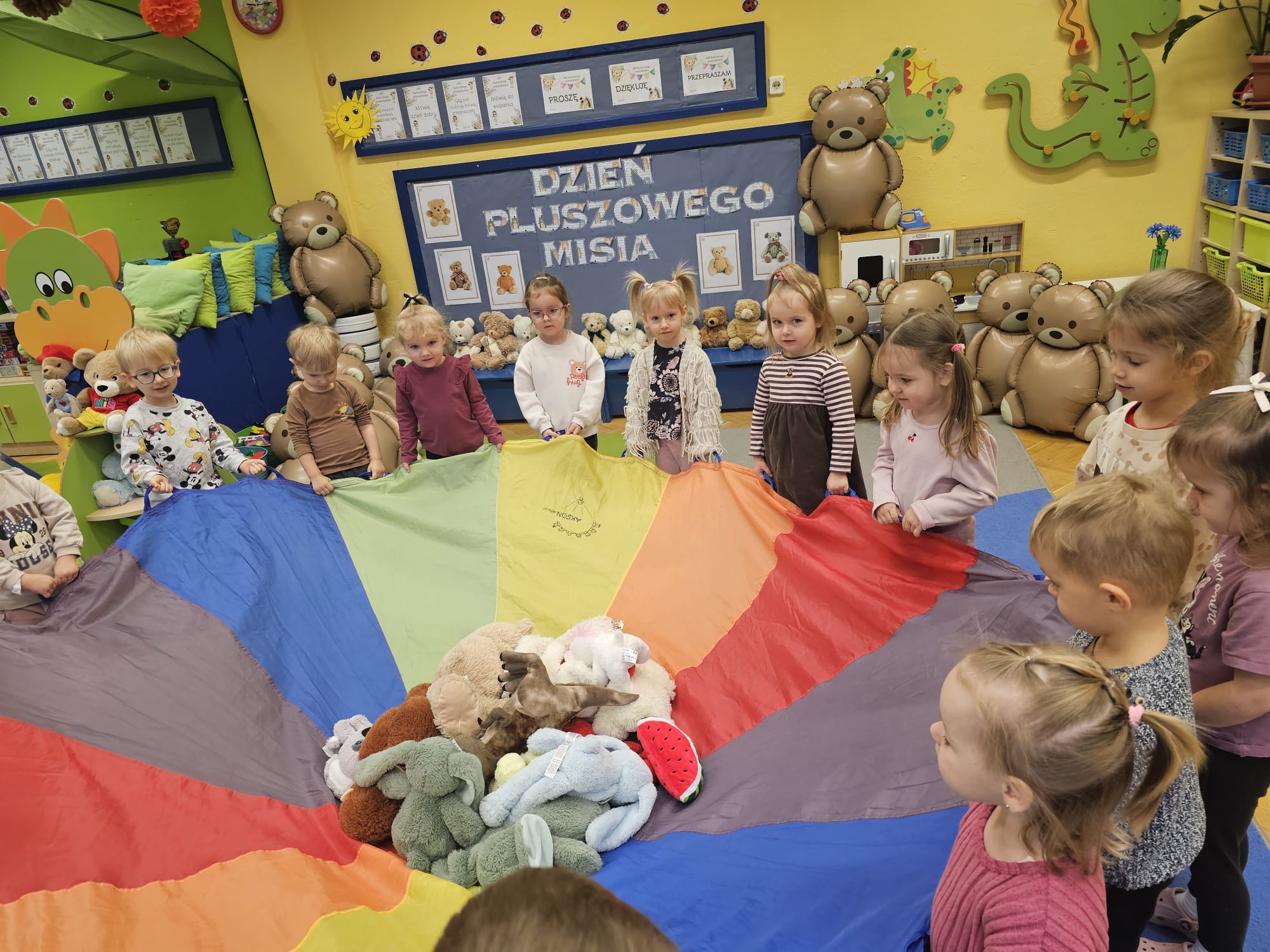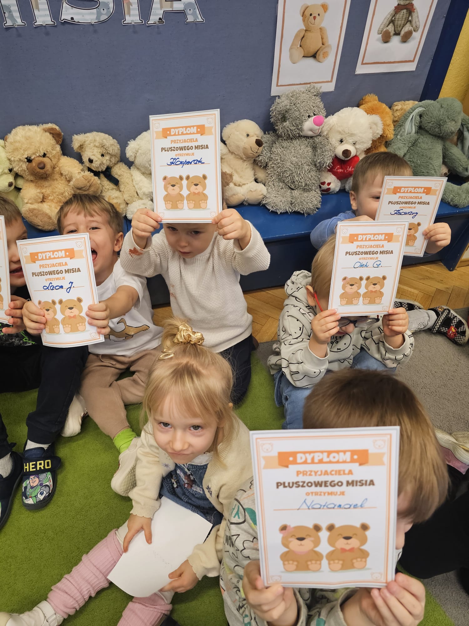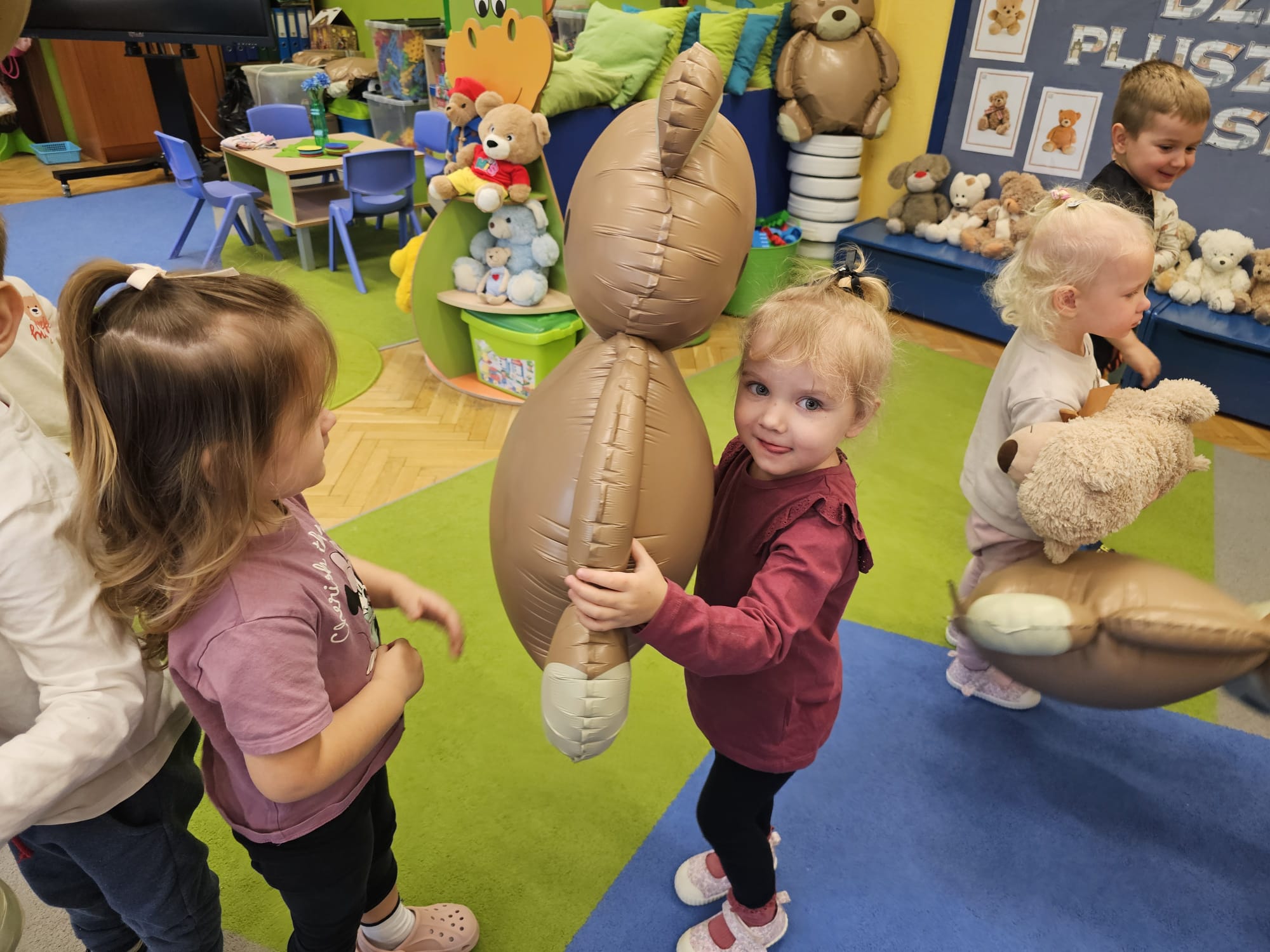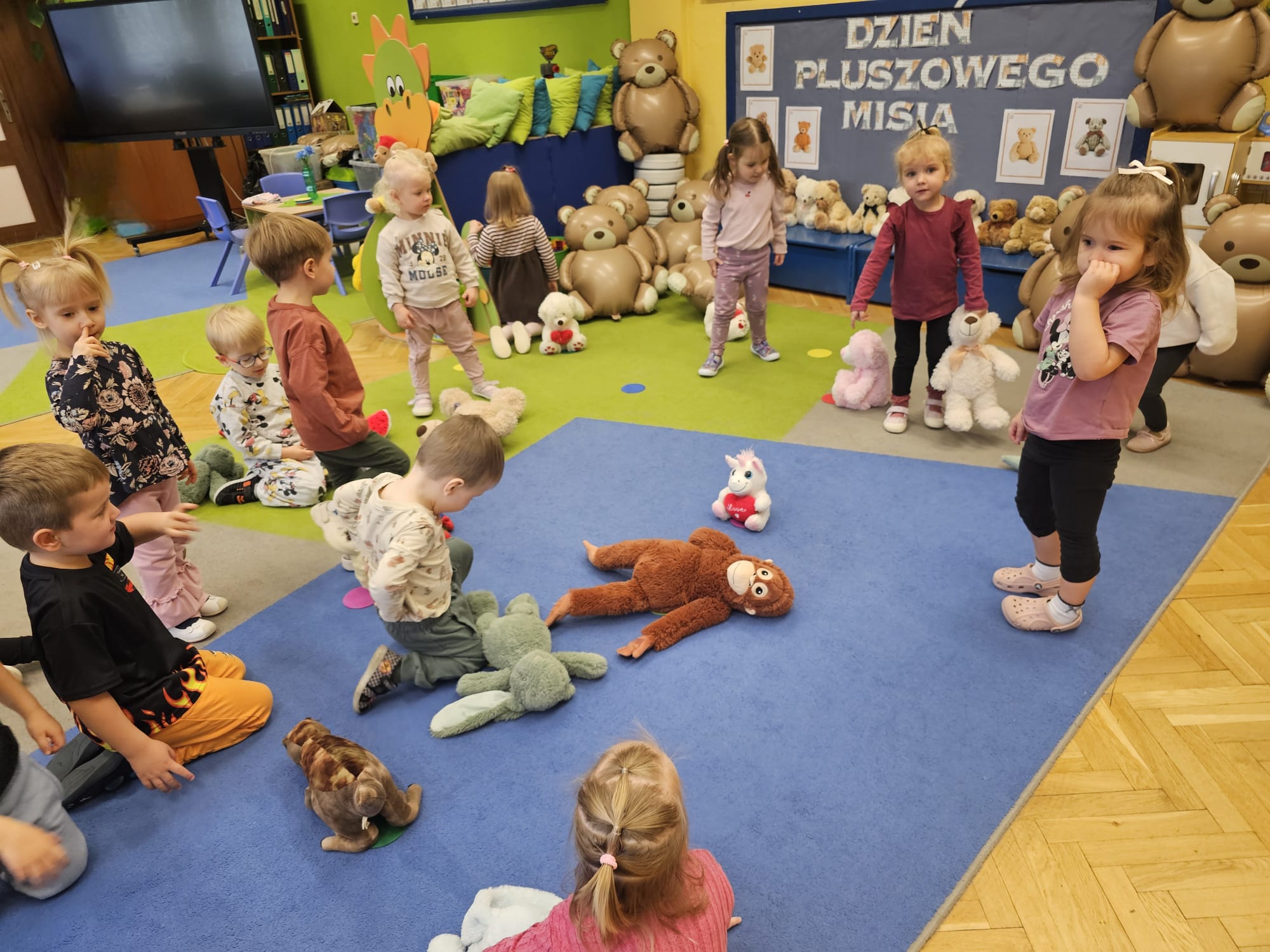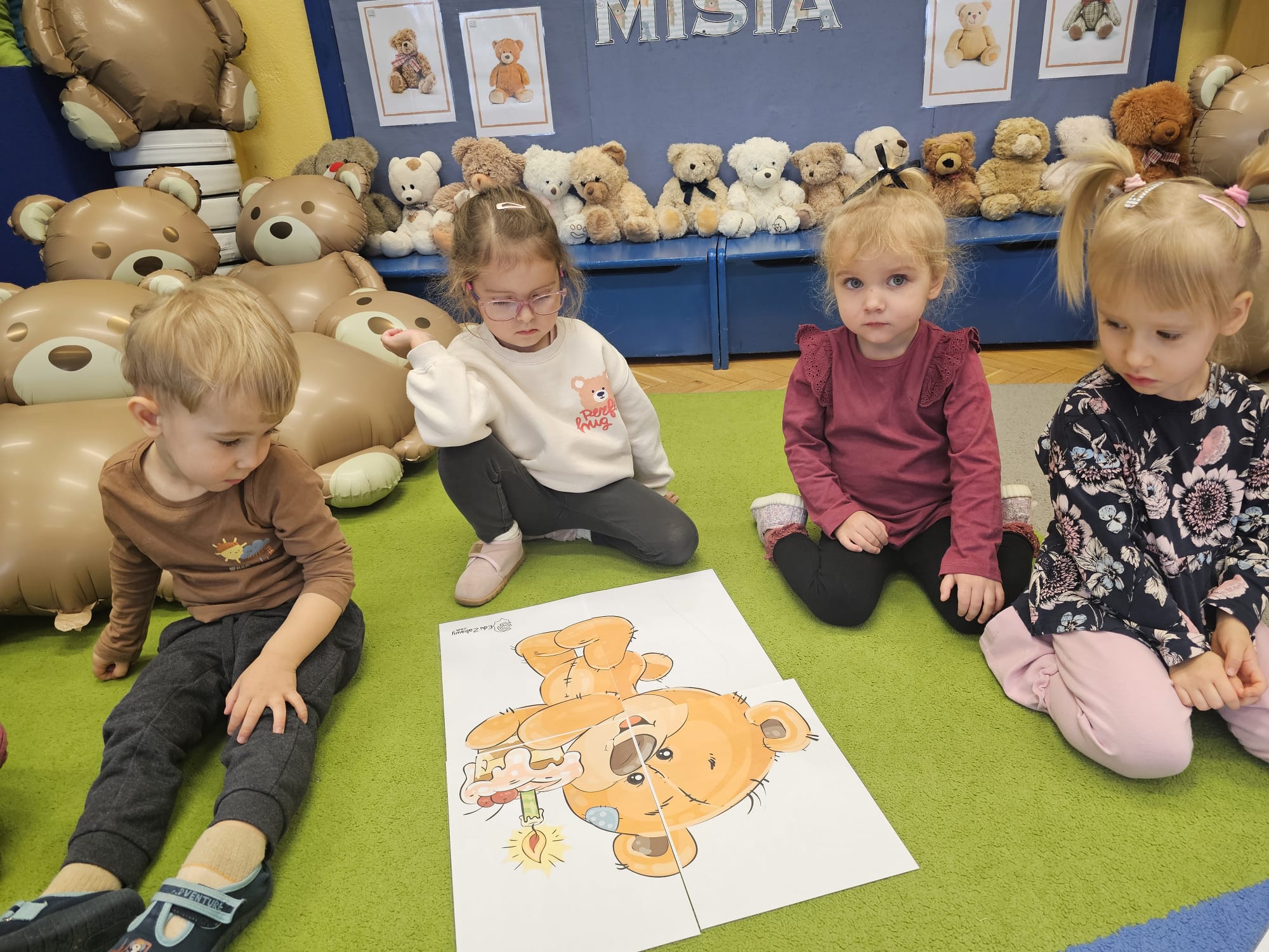 „Czy to jutro, czy to dziś – wszystkim jest potrzebny miś!”. Te słowa Heleny Behlerowej były myślą przewodnią Światowego Dnia Pluszowego Misia obchodzonego dzisiaj w naszej grupie. To bardzo ważny dzień dla każdego przedszkolaka. Miś Pluszowy, a szczególnie ten własny, wyjątkowy i ukochany, nie jest przecież zwykłą, pluszową zabawką. Jest po to, żeby było się do kogo tulić, kiedy pada deszcz i jest smutno. Ma duże uszy, żeby mieć coś do targania i kochania. Ma też bardzo miękkie łapki, za które można trzymać, kiedy się tylko chce. Taki miękki, puchaty, czy taki z łatką, to najmilsza zabawka, najlepszy przyjaciel i niezastąpiona przytulanka przy zasypianiu. Trudno byłoby wyobrazić sobie świat dziecka bez pluszowego misia, bo to przecież towarzysz beztroskiej zabawy oraz przyjaciel i powiernik największych sekretów i tajemnic. Pluszowy Miś ma po prostu magiczne moce. Wierzymy, że potrafi odstraszyć złe duchy, jest wiernym kompanem zabawy i zawsze czuwa nad swoim przyjacielem. Jak mawiała Dominika Zielińska autorka wiersza pt.: „W świecie misia”- „Kto przytuli w ciemną noc? Kto ma pocieszania moc? Kto sekretów mych nie zdradzi? Kto w potrzebie mi doradzi? Mój przyjaciel Miś maleńki, co przegania wszystkie lęki.” (…) Nic więc dziwnego, że po prostu musi obchodzić swoje święto. STO LAT MISIU! – dziś tobie śpiewamy i pod sam sufit huśtamy.