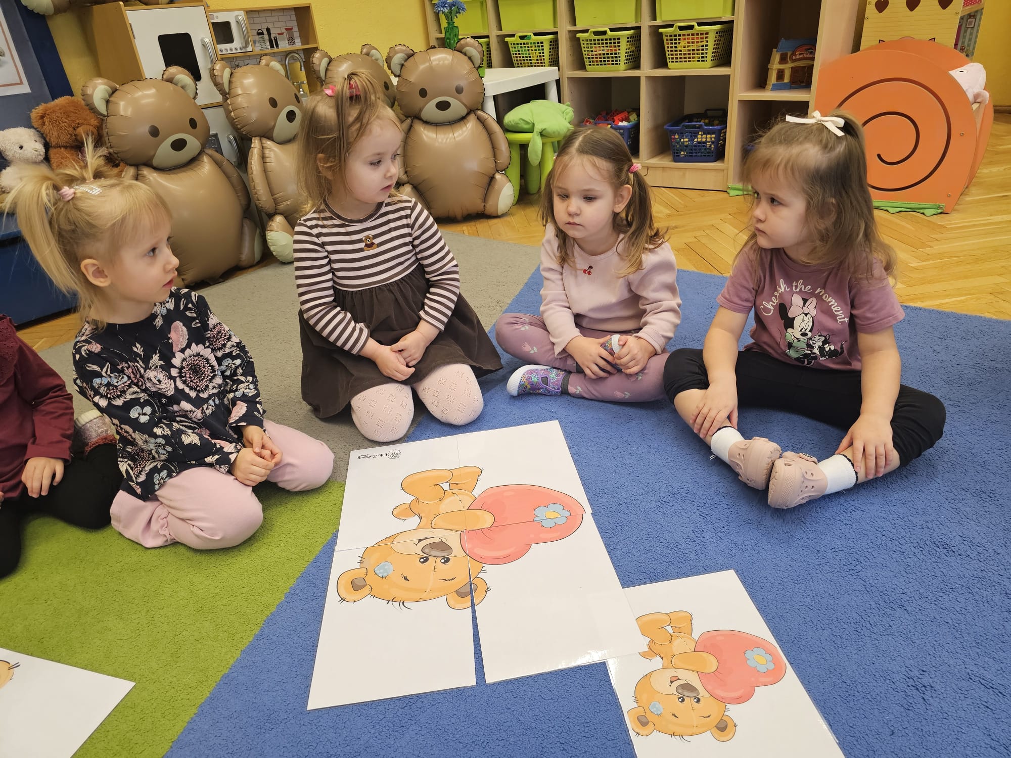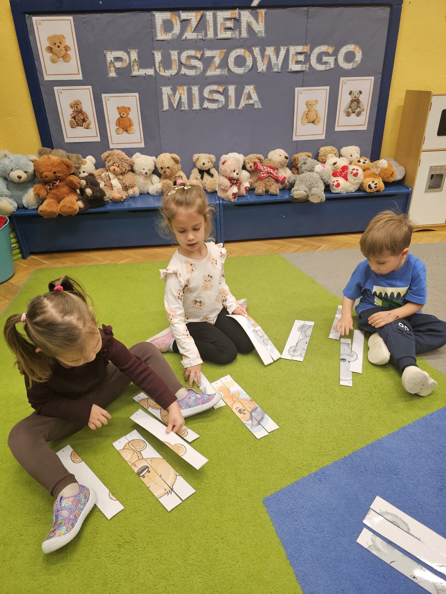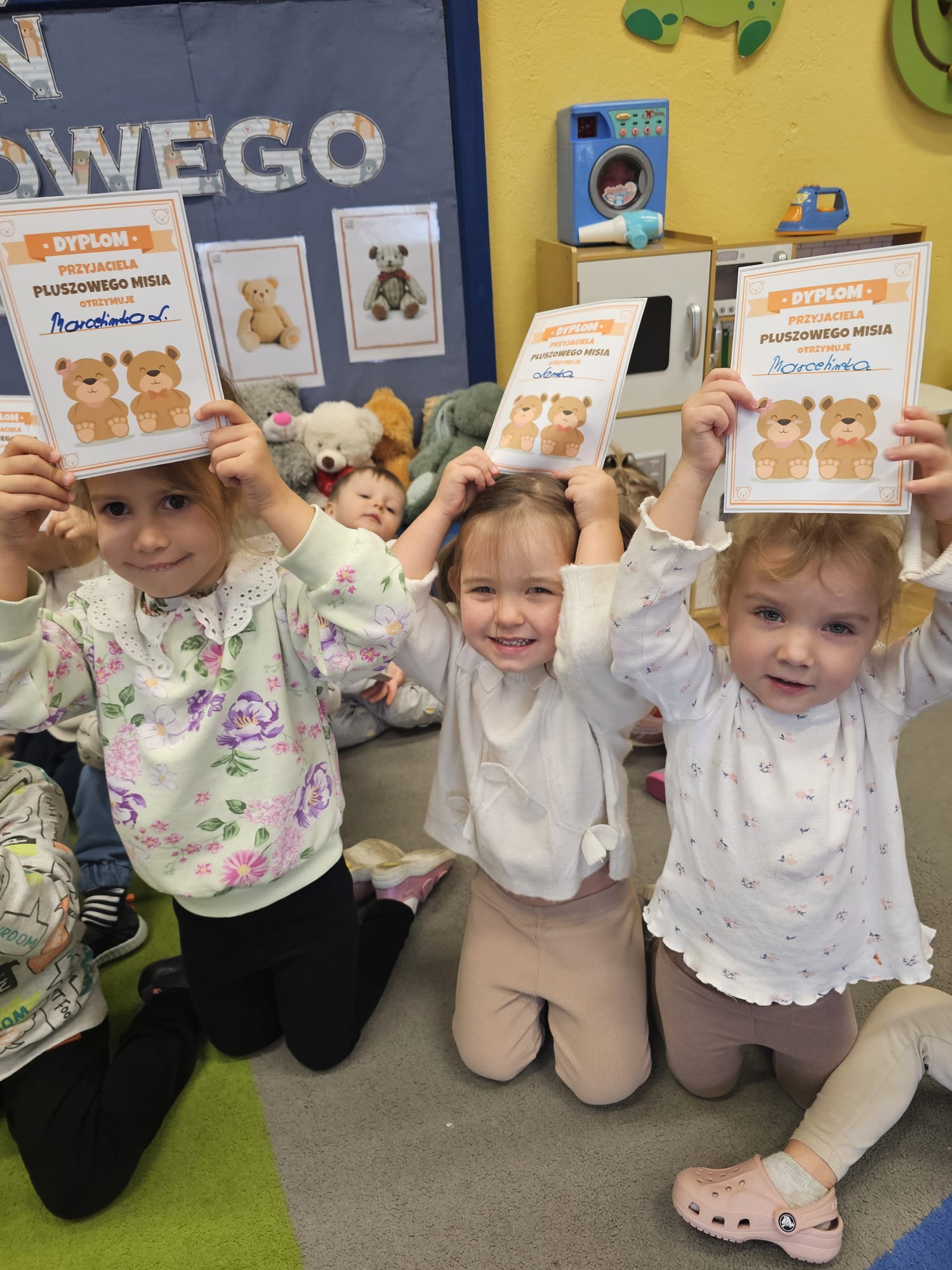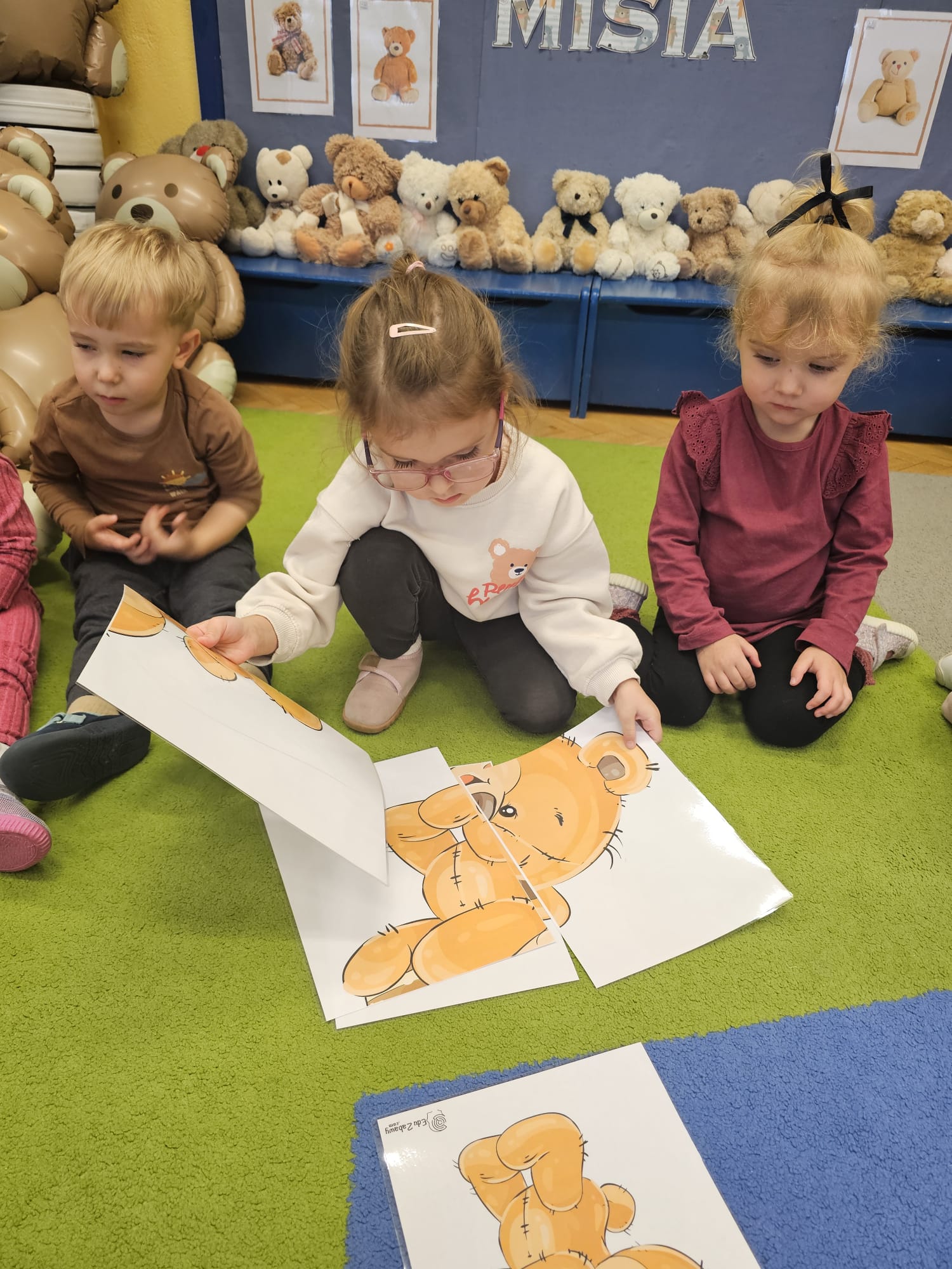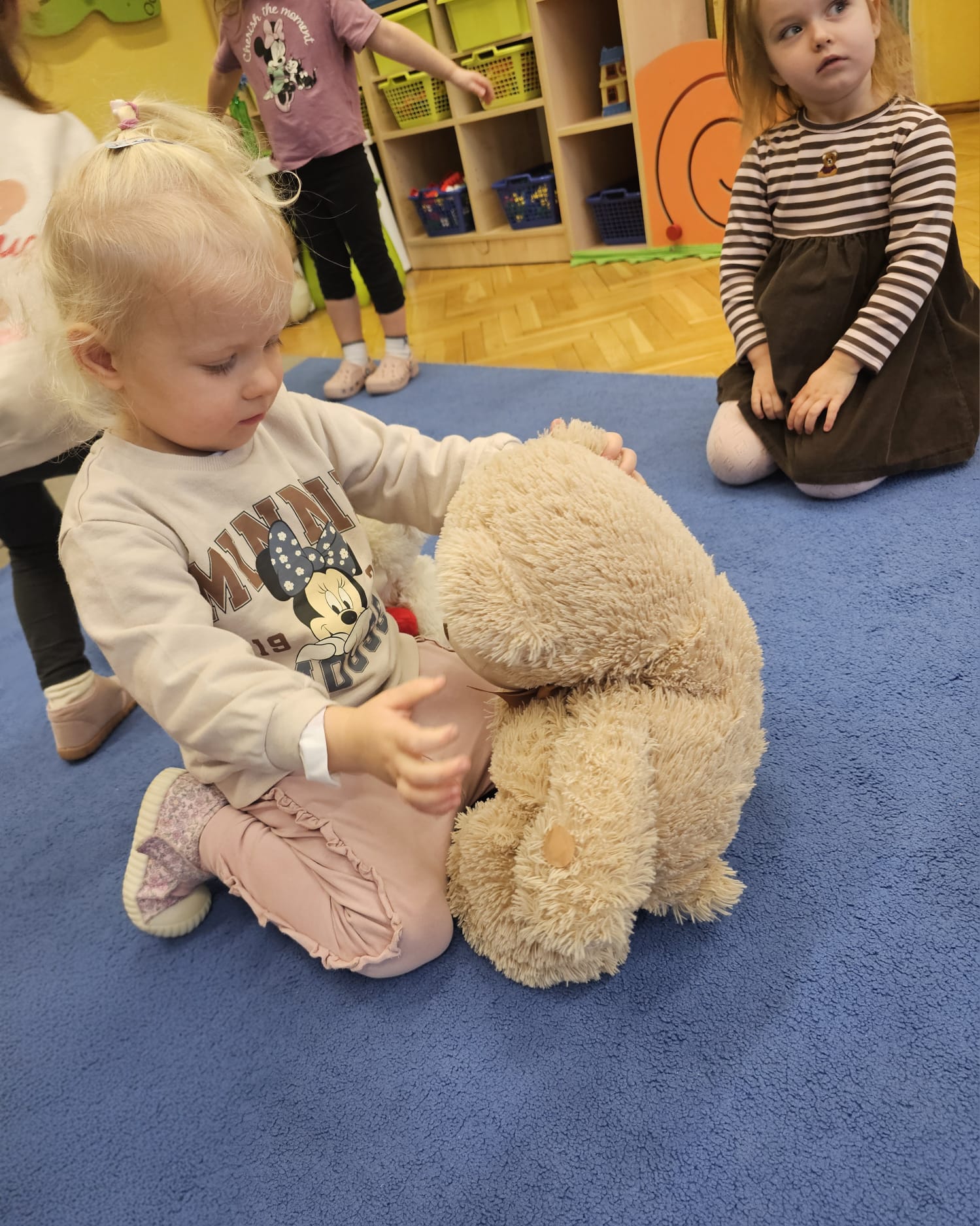 „Czy to jutro, czy to dziś – wszystkim jest potrzebny miś!”. Te słowa Heleny Behlerowej były myślą przewodnią Światowego Dnia Pluszowego Misia obchodzonego dzisiaj w naszej grupie. To bardzo ważny dzień dla każdego przedszkolaka. Miś Pluszowy, a szczególnie ten własny, wyjątkowy i ukochany, nie jest przecież zwykłą, pluszową zabawką. Jest po to, żeby było się do kogo tulić, kiedy pada deszcz i jest smutno. Ma duże uszy, żeby mieć coś do targania i kochania. Ma też bardzo miękkie łapki, za które można trzymać, kiedy się tylko chce. Taki miękki, puchaty, czy taki z łatką, to najmilsza zabawka, najlepszy przyjaciel i niezastąpiona przytulanka przy zasypianiu. Trudno byłoby wyobrazić sobie świat dziecka bez pluszowego misia, bo to przecież towarzysz beztroskiej zabawy oraz przyjaciel i powiernik największych sekretów i tajemnic. Pluszowy Miś ma po prostu magiczne moce. Wierzymy, że potrafi odstraszyć złe duchy, jest wiernym kompanem zabawy i zawsze czuwa nad swoim przyjacielem. Jak mawiała Dominika Zielińska autorka wiersza pt.: „W świecie misia”- „Kto przytuli w ciemną noc? Kto ma pocieszania moc? Kto sekretów mych nie zdradzi? Kto w potrzebie mi doradzi? Mój przyjaciel Miś maleńki, co przegania wszystkie lęki.” (…) Nic więc dziwnego, że po prostu musi obchodzić swoje święto. STO LAT MISIU! – dziś tobie śpiewamy i pod sam sufit huśtamy.