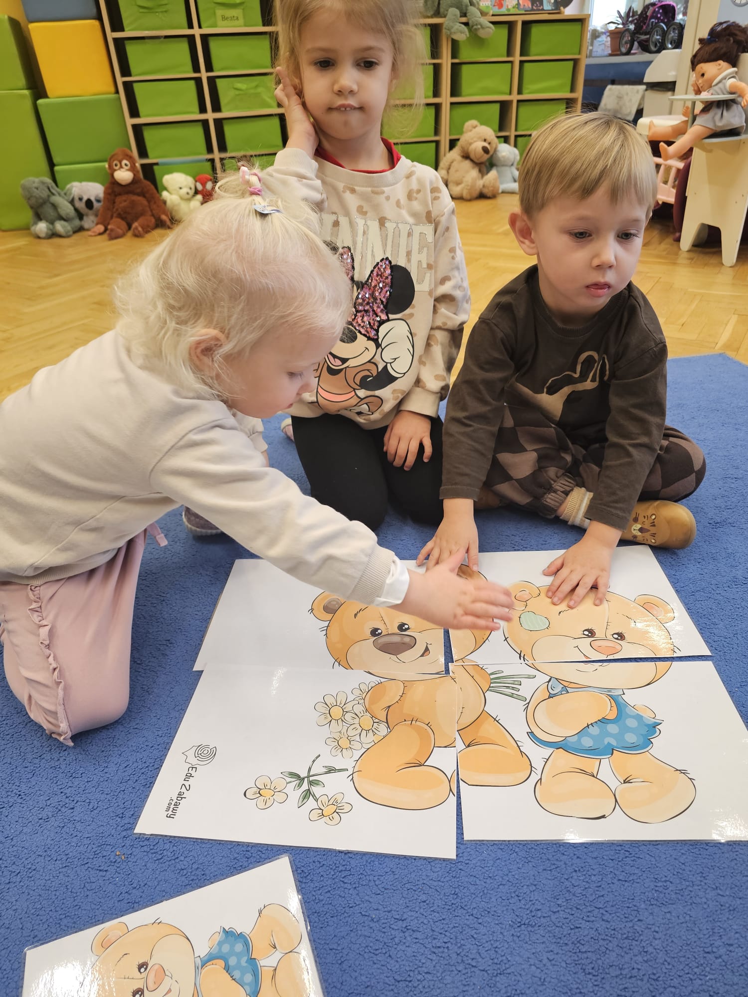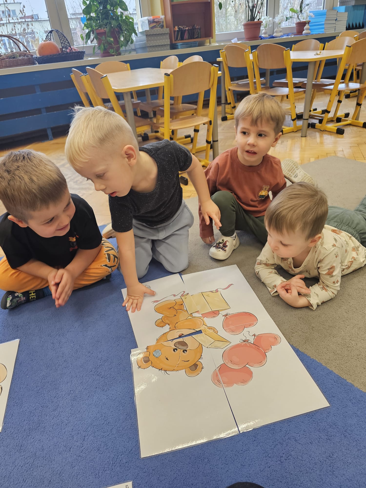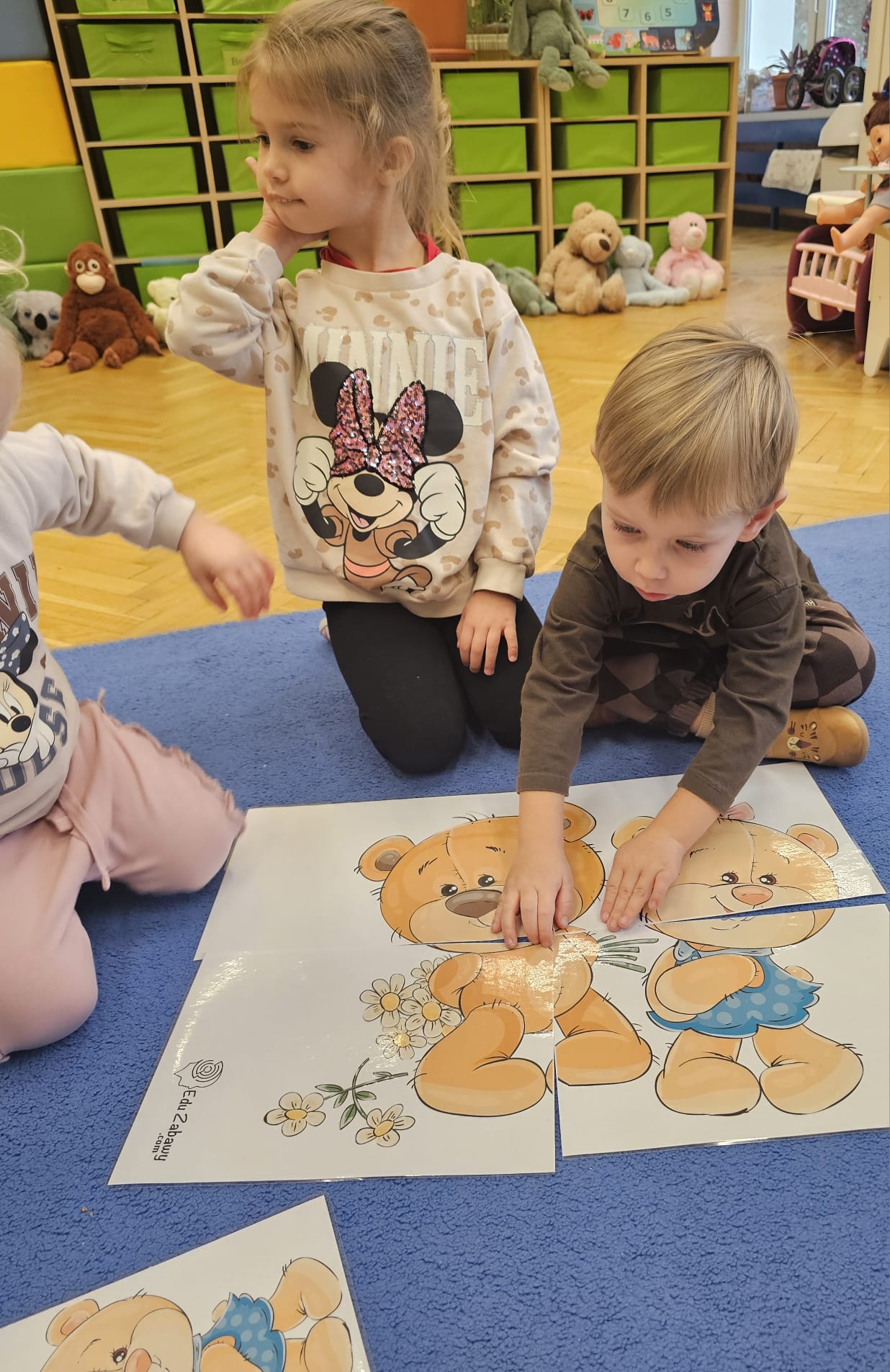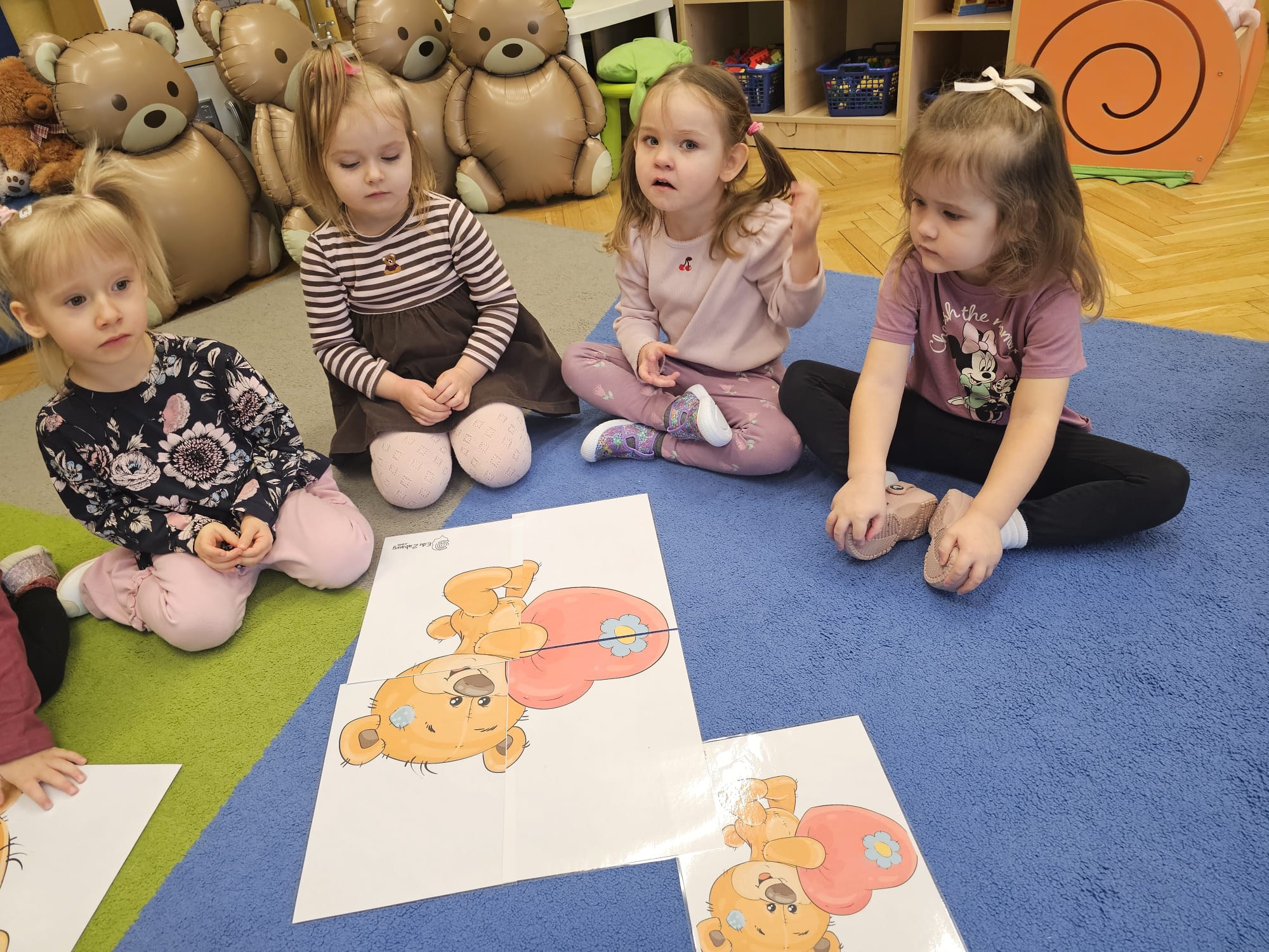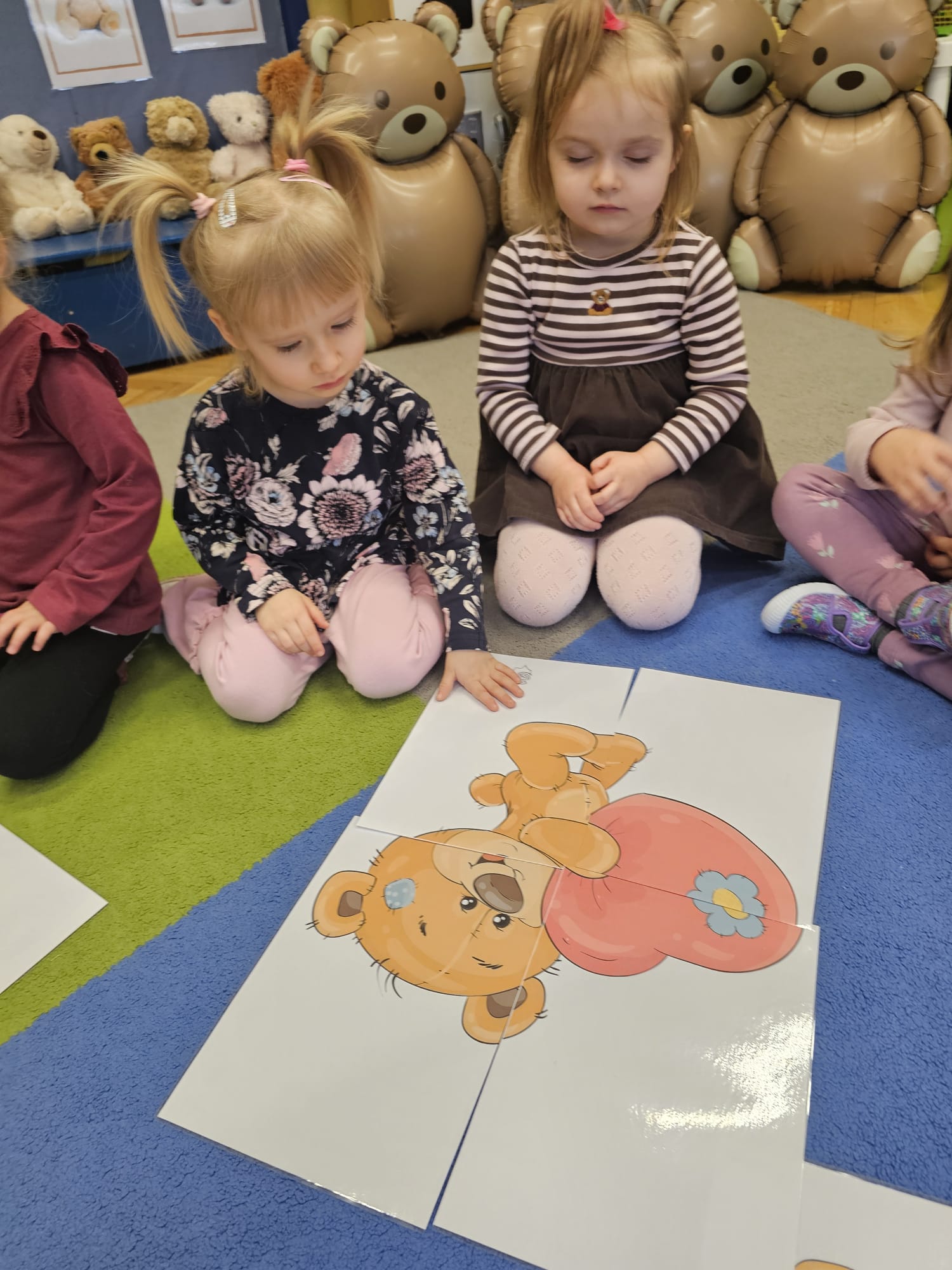 „Czy to jutro, czy to dziś – wszystkim jest potrzebny miś!”. Te słowa Heleny Behlerowej były myślą przewodnią Światowego Dnia Pluszowego Misia obchodzonego dzisiaj w naszej grupie. To bardzo ważny dzień dla każdego przedszkolaka. Miś Pluszowy, a szczególnie ten własny, wyjątkowy i ukochany, nie jest przecież zwykłą, pluszową zabawką. Jest po to, żeby było się do kogo tulić, kiedy pada deszcz i jest smutno. Ma duże uszy, żeby mieć coś do targania i kochania. Ma też bardzo miękkie łapki, za które można trzymać, kiedy się tylko chce. Taki miękki, puchaty, czy taki z łatką, to najmilsza zabawka, najlepszy przyjaciel i niezastąpiona przytulanka przy zasypianiu. Trudno byłoby wyobrazić sobie świat dziecka bez pluszowego misia, bo to przecież towarzysz beztroskiej zabawy oraz przyjaciel i powiernik największych sekretów i tajemnic. Pluszowy Miś ma po prostu magiczne moce. Wierzymy, że potrafi odstraszyć złe duchy, jest wiernym kompanem zabawy i zawsze czuwa nad swoim przyjacielem. Jak mawiała Dominika Zielińska autorka wiersza pt.: „W świecie misia”- „Kto przytuli w ciemną noc? Kto ma pocieszania moc? Kto sekretów mych nie zdradzi? Kto w potrzebie mi doradzi? Mój przyjaciel Miś maleńki, co przegania wszystkie lęki.” (…) Nic więc dziwnego, że po prostu musi obchodzić swoje święto. STO LAT MISIU! – dziś tobie śpiewamy i pod sam sufit huśtamy.