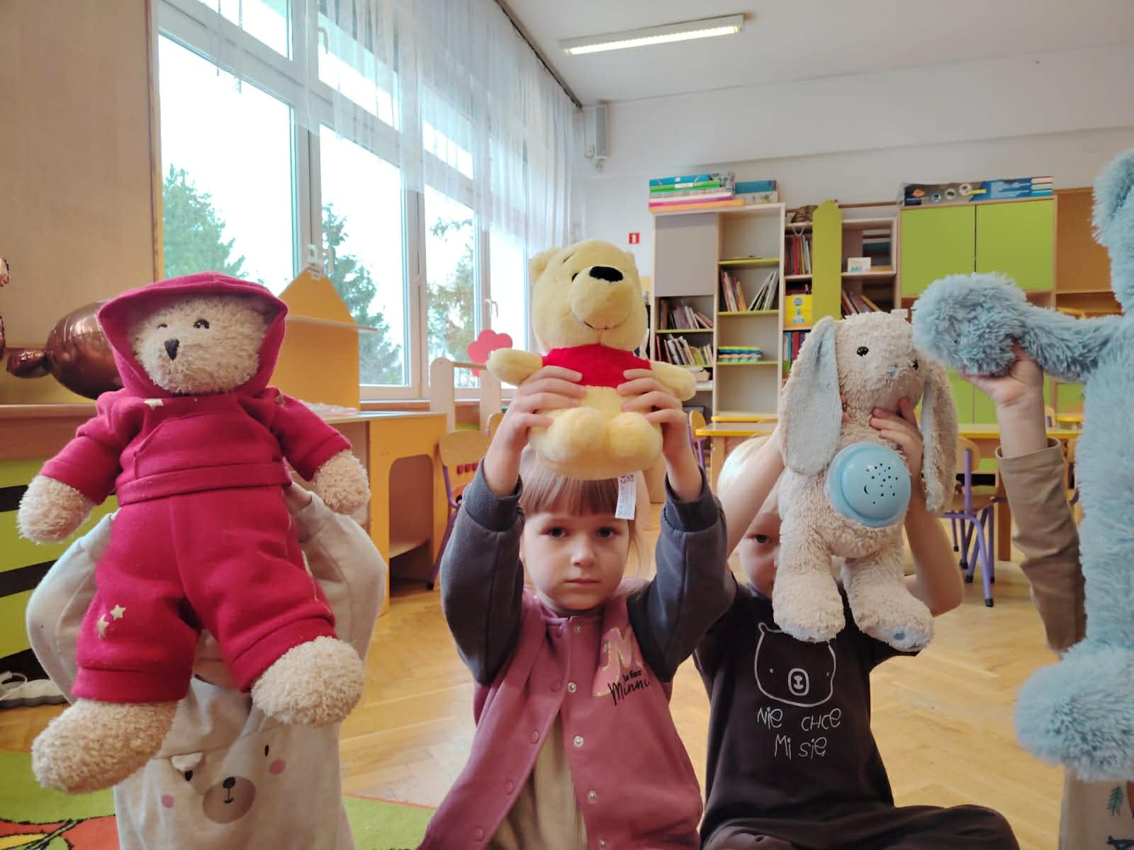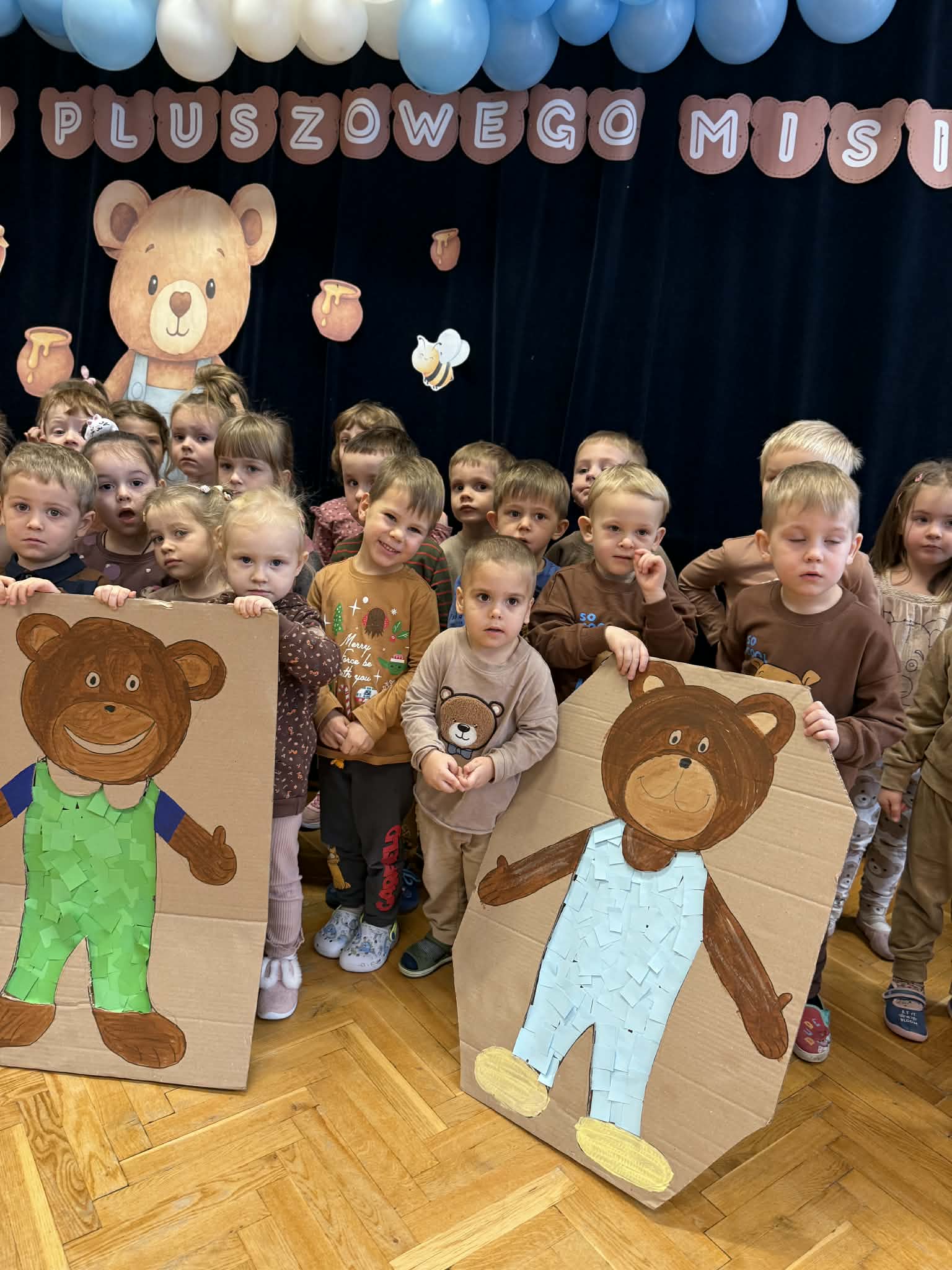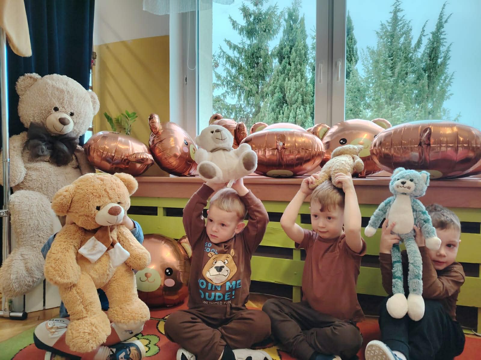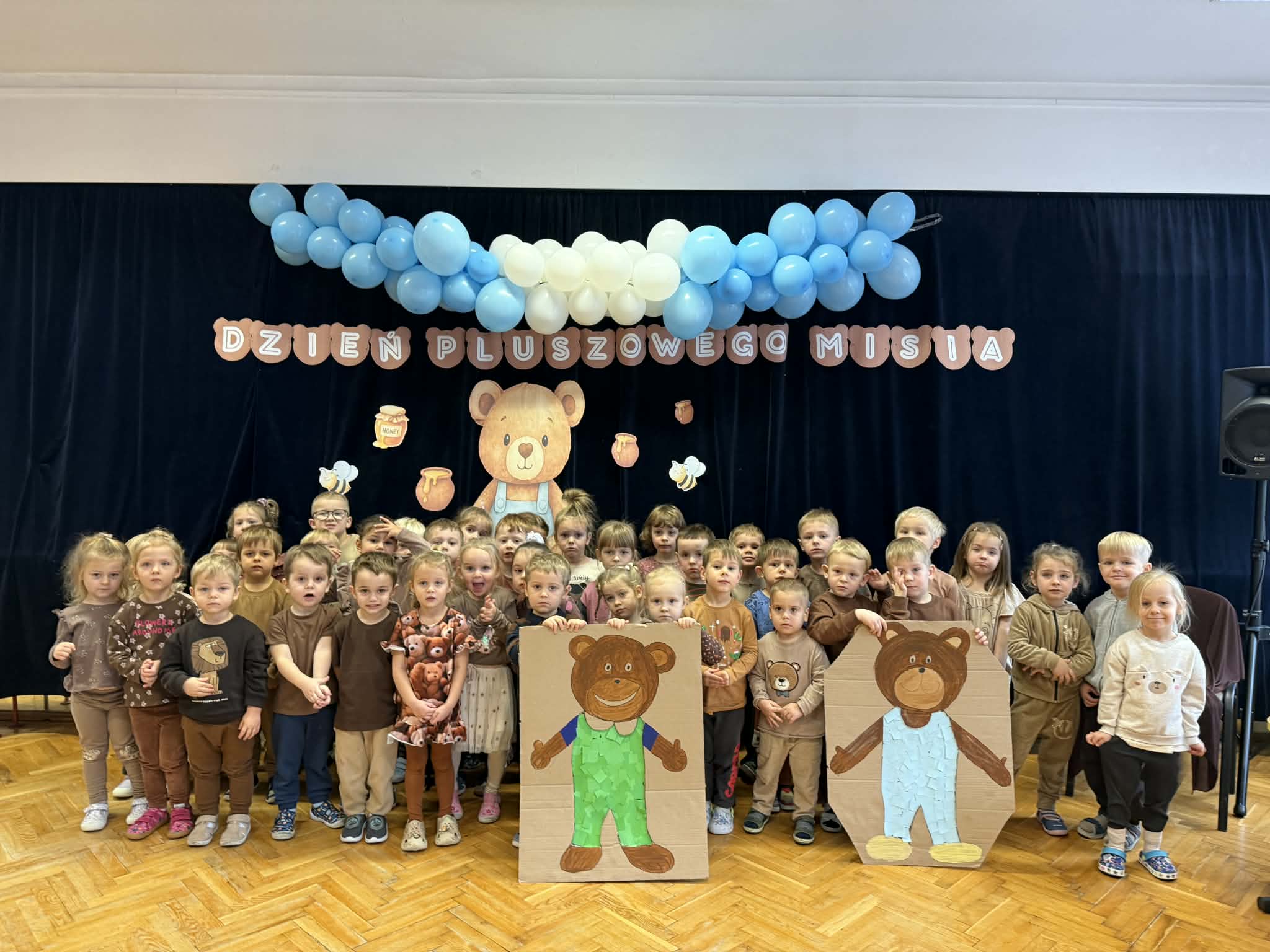 23 listopada dzieci z grup II i VII obchodziły w przedszkolu Święto Pluszowego Misia. Tego dnia przedszkolaki przyniosły swoje ukochane maskotki, które towarzyszyły im przez całe wydarzenie. Spotkanie rozpoczęło się niezwykle – odwiedził nas ogromny pluszowy Miś, zachęcając dzieci do wspólnej zabawy. Wśród przyniesionych maskotek można było podziwiać misie różnej wielkości i w najrozmaitszych kolorach, a każdy z nich był jedyny w swoim rodzaju. Podczas tego radosnego dnia na dzieci czekała cała masa atrakcji. Wspólne tańce i zabawy z misiami, poznawanie historii tego wyjątkowego święta oraz słuchanie znanych „misiowych” piosenek dostarczyło wszystkim wiele radości. Finałem spotkania była wspólna praca plastyczna. Dzień Misia upłynął w atmosferze radości i świetnej zabawy. Dzieci były zachwycone, że mogły tak dużo czasu spędzić ze swoimi pluszakami i zaprezentować je kolegom oraz koleżankom. W trakcie licznych zabaw przy misiowych przebojach wspólnie uznały, że pluszowy miś to najlepszy przyjaciel każdego dziecka