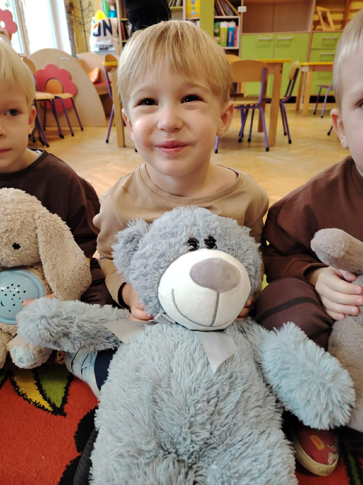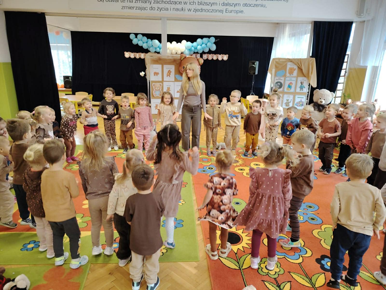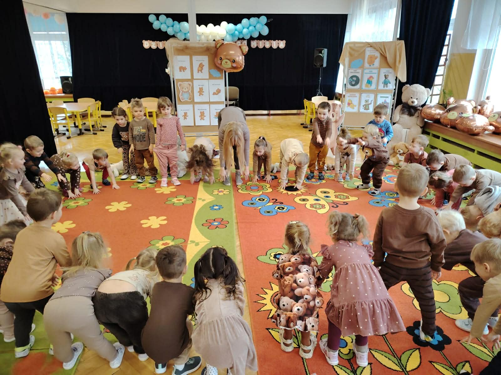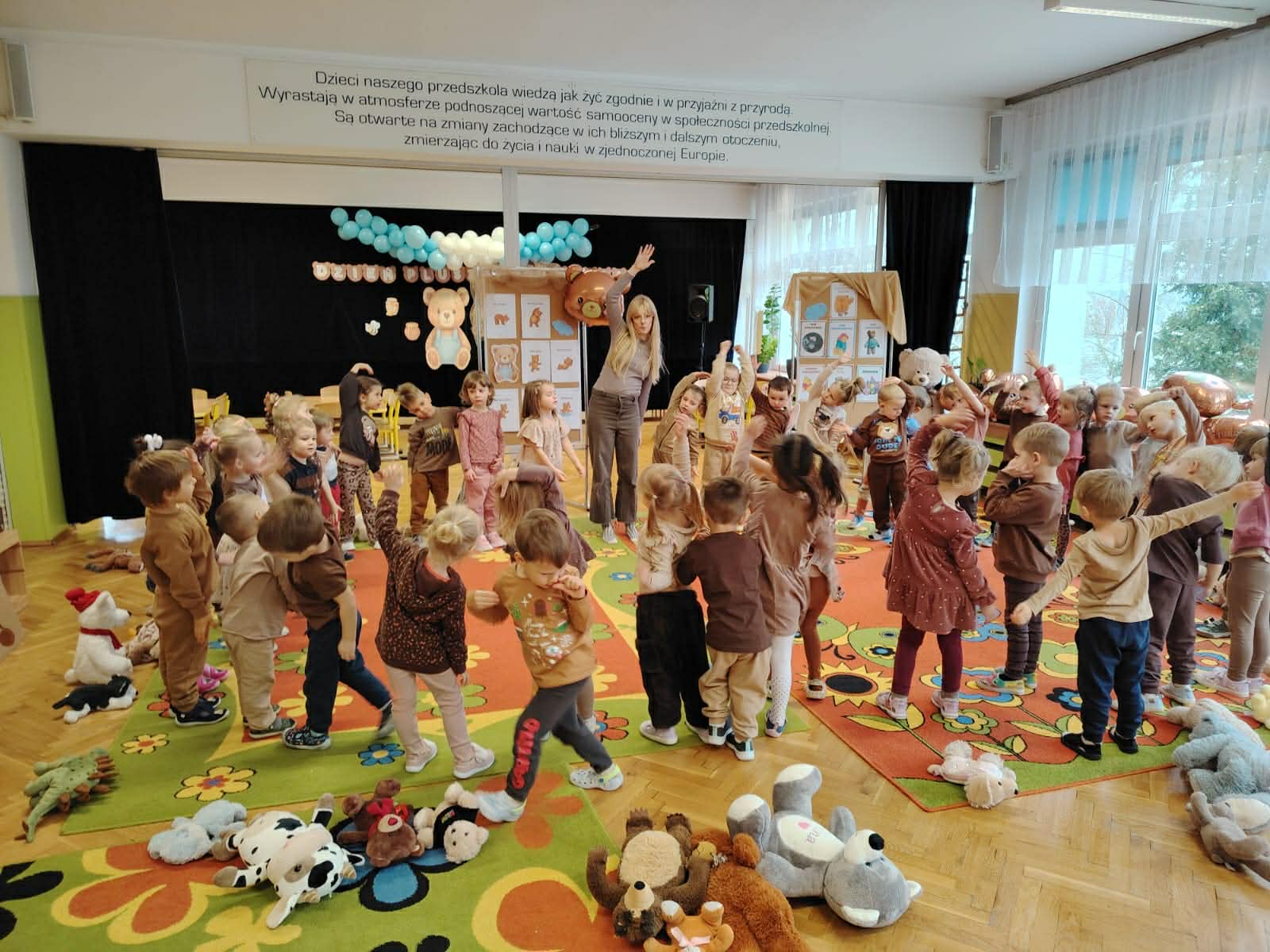 23 listopada dzieci z grup II i VII obchodziły w przedszkolu Święto Pluszowego Misia. Tego dnia przedszkolaki przyniosły swoje ukochane maskotki, które towarzyszyły im przez całe wydarzenie. Spotkanie rozpoczęło się niezwykle – odwiedził nas ogromny pluszowy Miś, zachęcając dzieci do wspólnej zabawy. Wśród przyniesionych maskotek można było podziwiać misie różnej wielkości i w najrozmaitszych kolorach, a każdy z nich był jedyny w swoim rodzaju. Podczas tego radosnego dnia na dzieci czekała cała masa atrakcji. Wspólne tańce i zabawy z misiami, poznawanie historii tego wyjątkowego święta oraz słuchanie znanych „misiowych” piosenek dostarczyło wszystkim wiele radości. Finałem spotkania była wspólna praca plastyczna. Dzień Misia upłynął w atmosferze radości i świetnej zabawy. Dzieci były zachwycone, że mogły tak dużo czasu spędzić ze swoimi pluszakami i zaprezentować je kolegom oraz koleżankom. W trakcie licznych zabaw przy misiowych przebojach wspólnie uznały, że pluszowy miś to najlepszy przyjaciel każdego dziecka