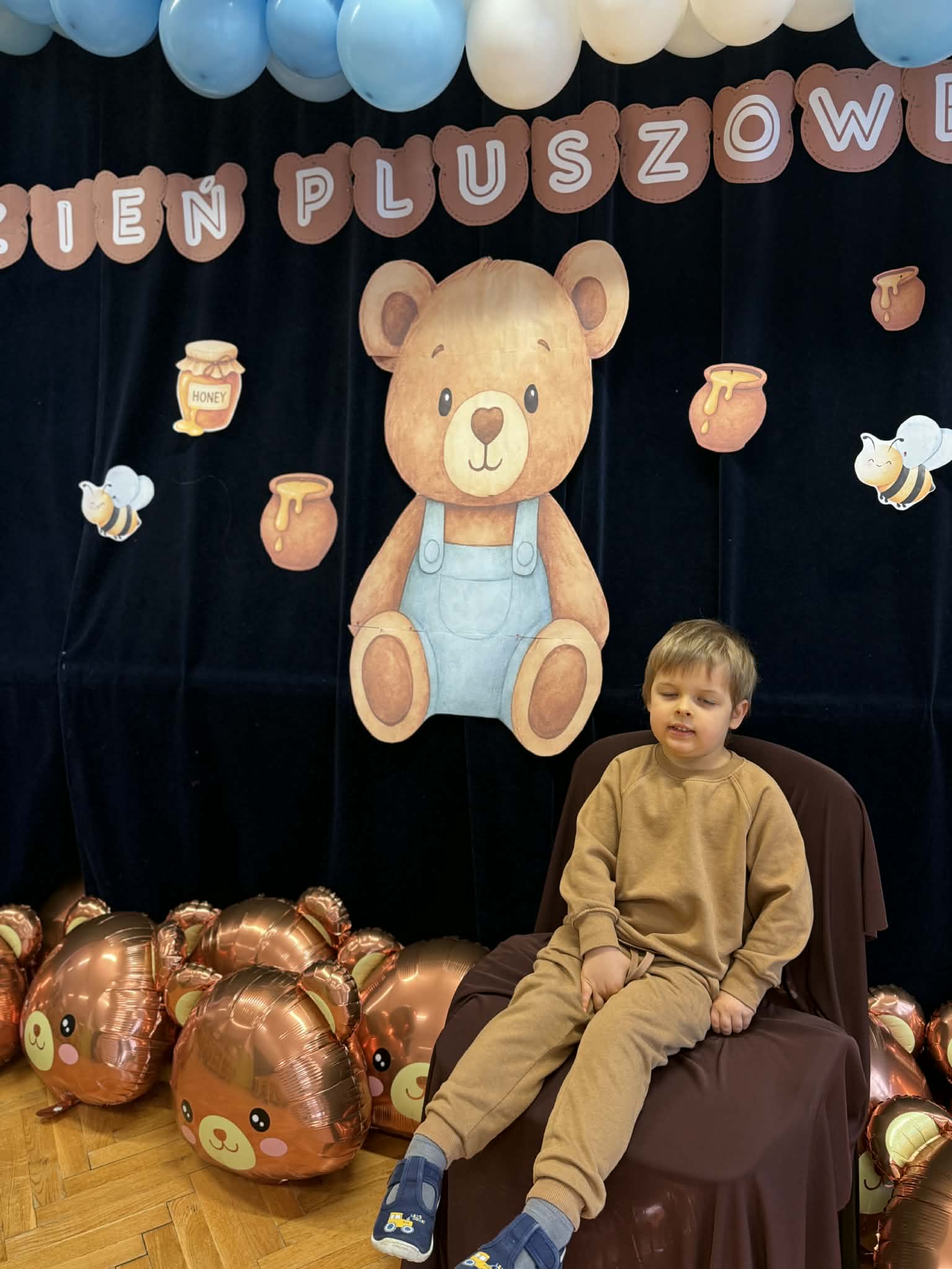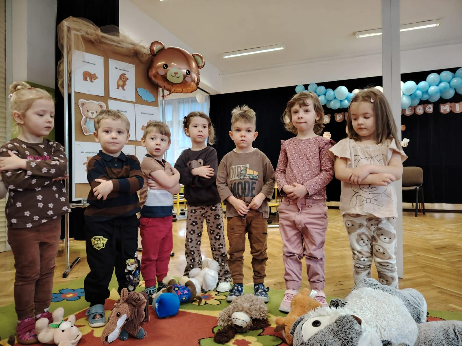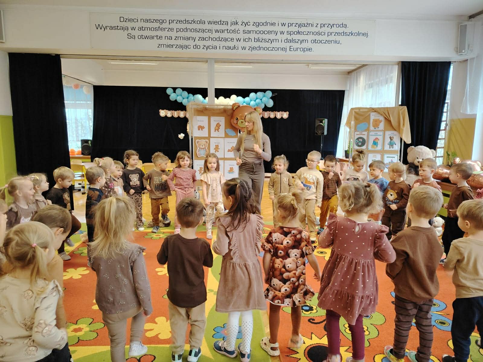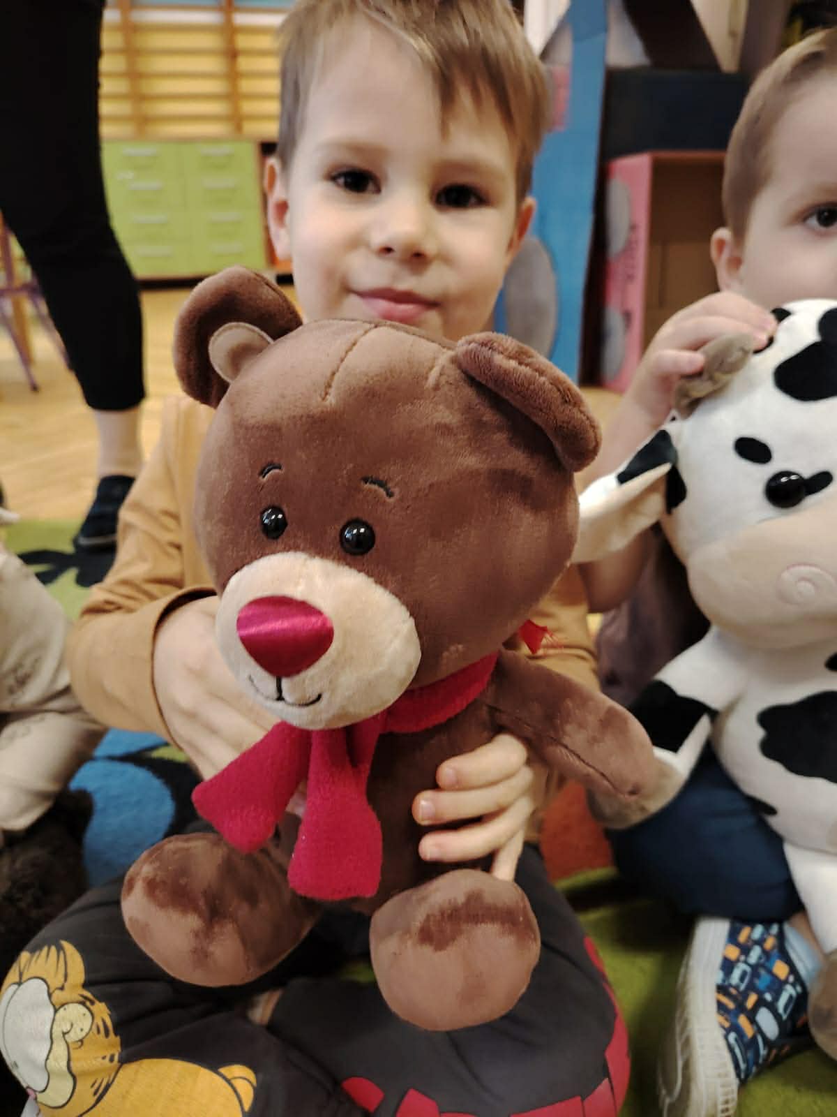 23 listopada dzieci z grup II i VII obchodziły w przedszkolu Święto Pluszowego Misia. Tego dnia przedszkolaki przyniosły swoje ukochane maskotki, które towarzyszyły im przez całe wydarzenie. Spotkanie rozpoczęło się niezwykle – odwiedził nas ogromny pluszowy Miś, zachęcając dzieci do wspólnej zabawy. Wśród przyniesionych maskotek można było podziwiać misie różnej wielkości i w najrozmaitszych kolorach, a każdy z nich był jedyny w swoim rodzaju. Podczas tego radosnego dnia na dzieci czekała cała masa atrakcji. Wspólne tańce i zabawy z misiami, poznawanie historii tego wyjątkowego święta oraz słuchanie znanych „misiowych” piosenek dostarczyło wszystkim wiele radości. Finałem spotkania była wspólna praca plastyczna. Dzień Misia upłynął w atmosferze radości i świetnej zabawy. Dzieci były zachwycone, że mogły tak dużo czasu spędzić ze swoimi pluszakami i zaprezentować je kolegom oraz koleżankom. W trakcie licznych zabaw przy misiowych przebojach wspólnie uznały, że pluszowy miś to najlepszy przyjaciel każdego dziecka