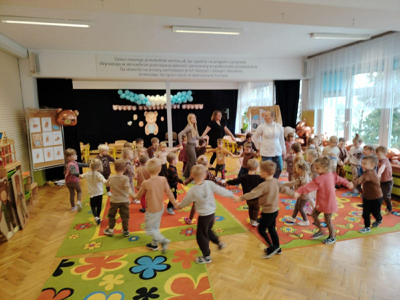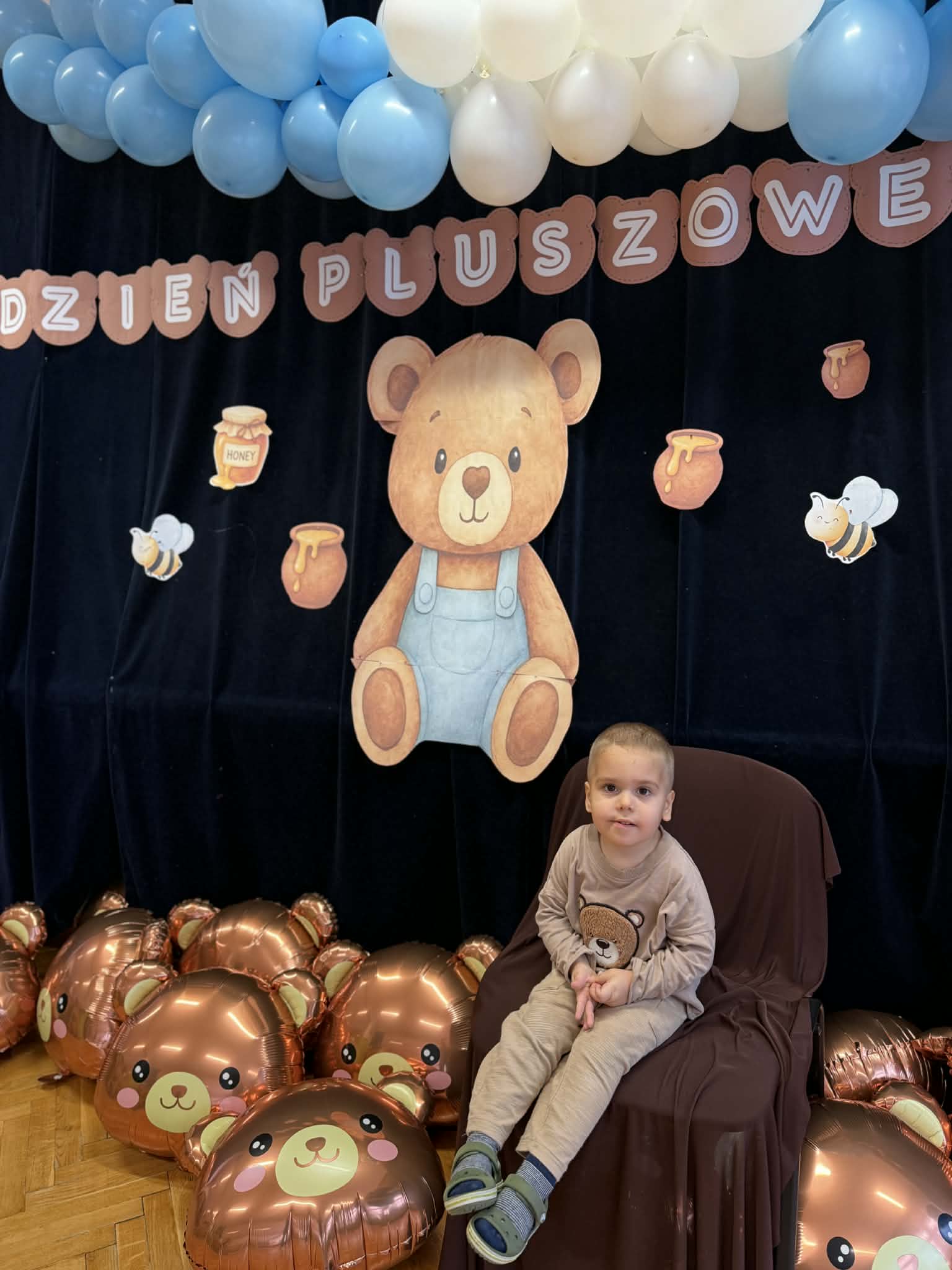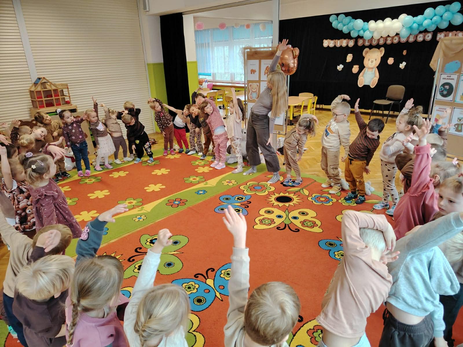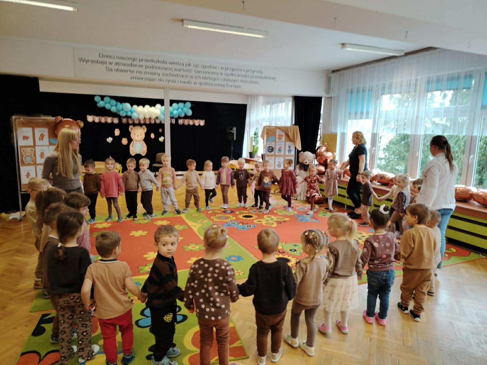 23 listopada dzieci z grup II i VII obchodziły w przedszkolu Święto Pluszowego Misia. Tego dnia przedszkolaki przyniosły swoje ukochane maskotki, które towarzyszyły im przez całe wydarzenie. Spotkanie rozpoczęło się niezwykle – odwiedził nas ogromny pluszowy Miś, zachęcając dzieci do wspólnej zabawy. Wśród przyniesionych maskotek można było podziwiać misie różnej wielkości i w najrozmaitszych kolorach, a każdy z nich był jedyny w swoim rodzaju. Podczas tego radosnego dnia na dzieci czekała cała masa atrakcji. Wspólne tańce i zabawy z misiami, poznawanie historii tego wyjątkowego święta oraz słuchanie znanych „misiowych” piosenek dostarczyło wszystkim wiele radości. Finałem spotkania była wspólna praca plastyczna. Dzień Misia upłynął w atmosferze radości i świetnej zabawy. Dzieci były zachwycone, że mogły tak dużo czasu spędzić ze swoimi pluszakami i zaprezentować je kolegom oraz koleżankom. W trakcie licznych zabaw przy misiowych przebojach wspólnie uznały, że pluszowy miś to najlepszy przyjaciel każdego dziecka