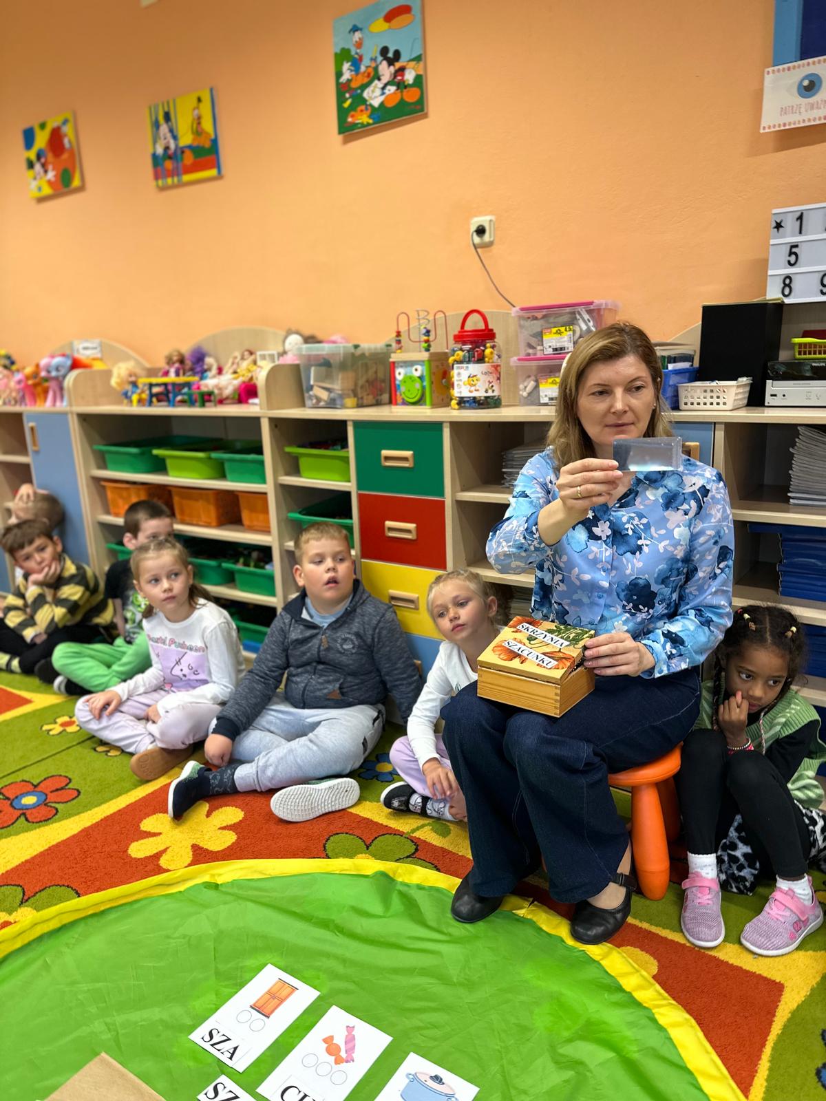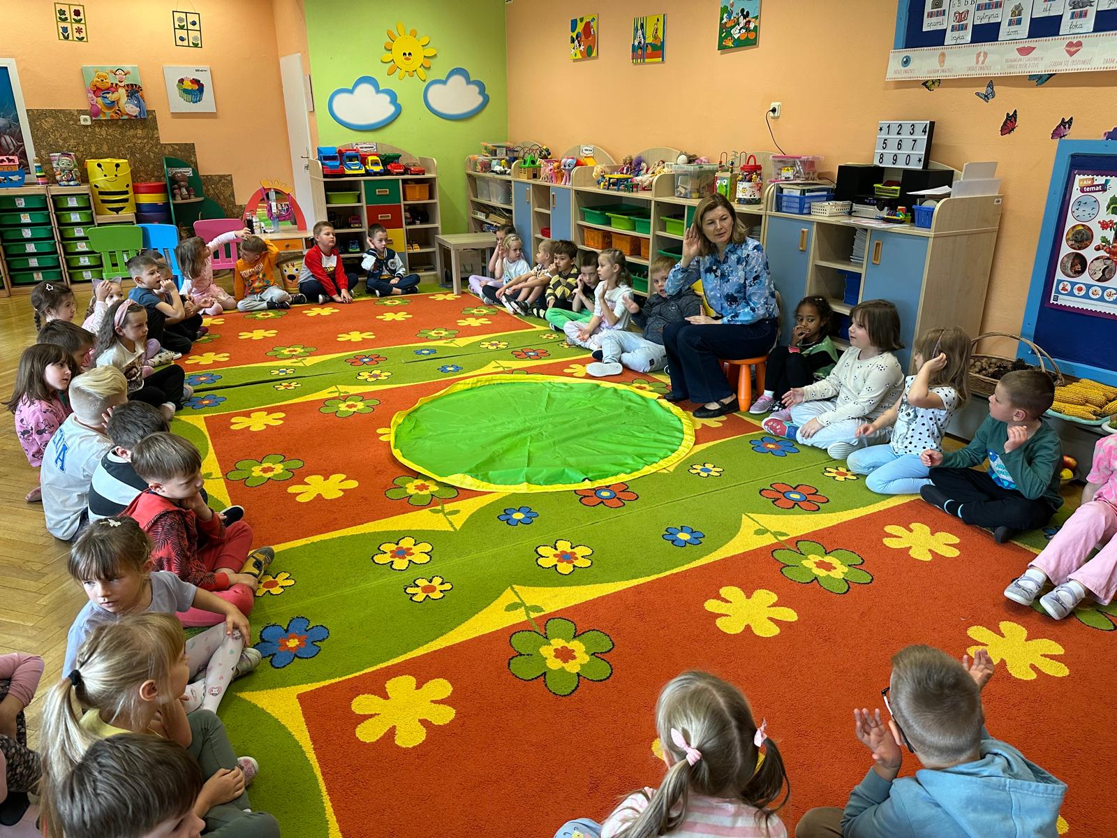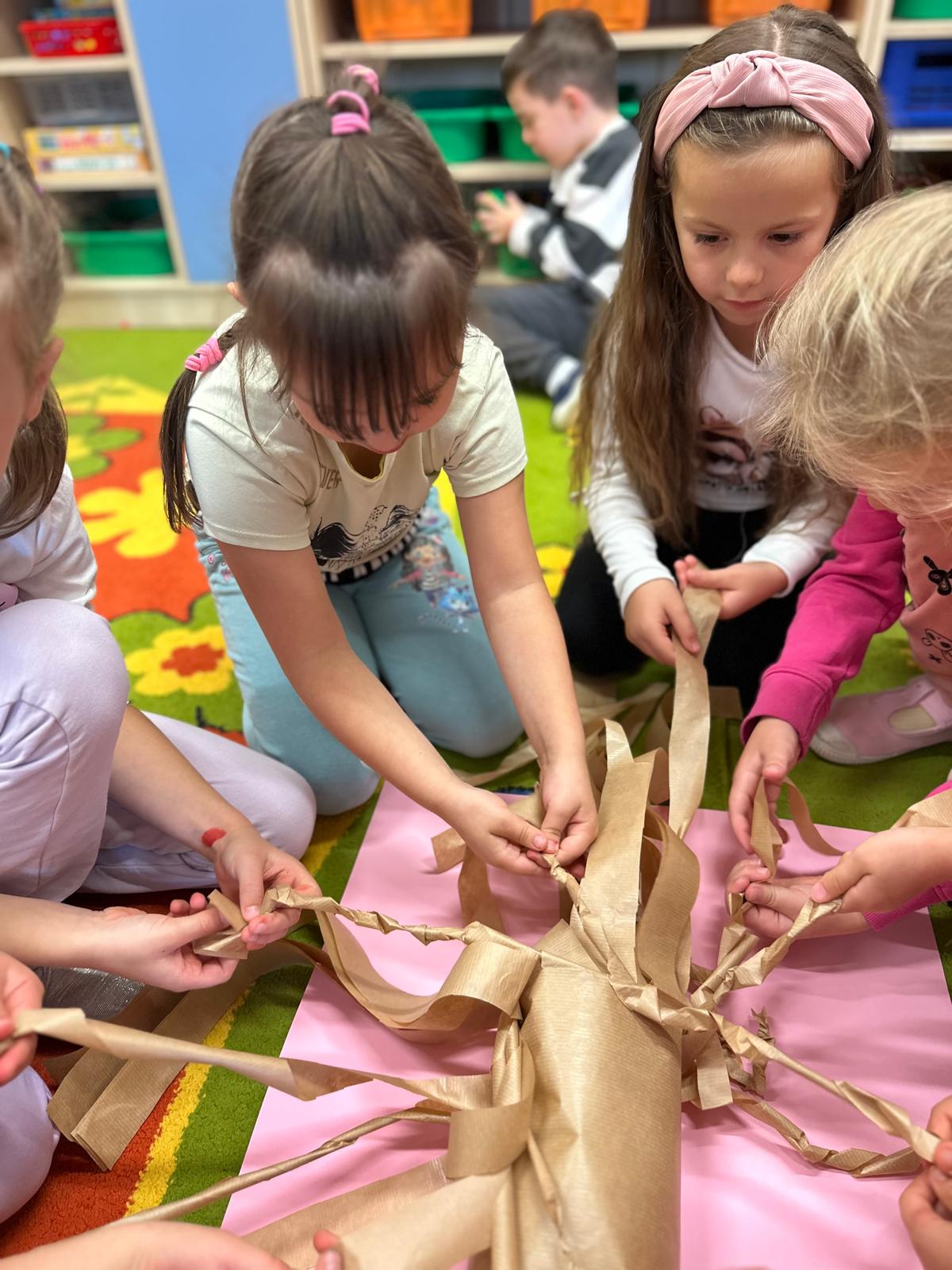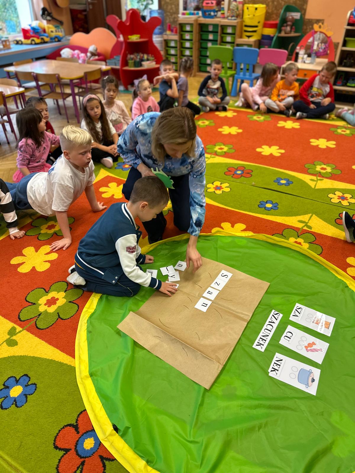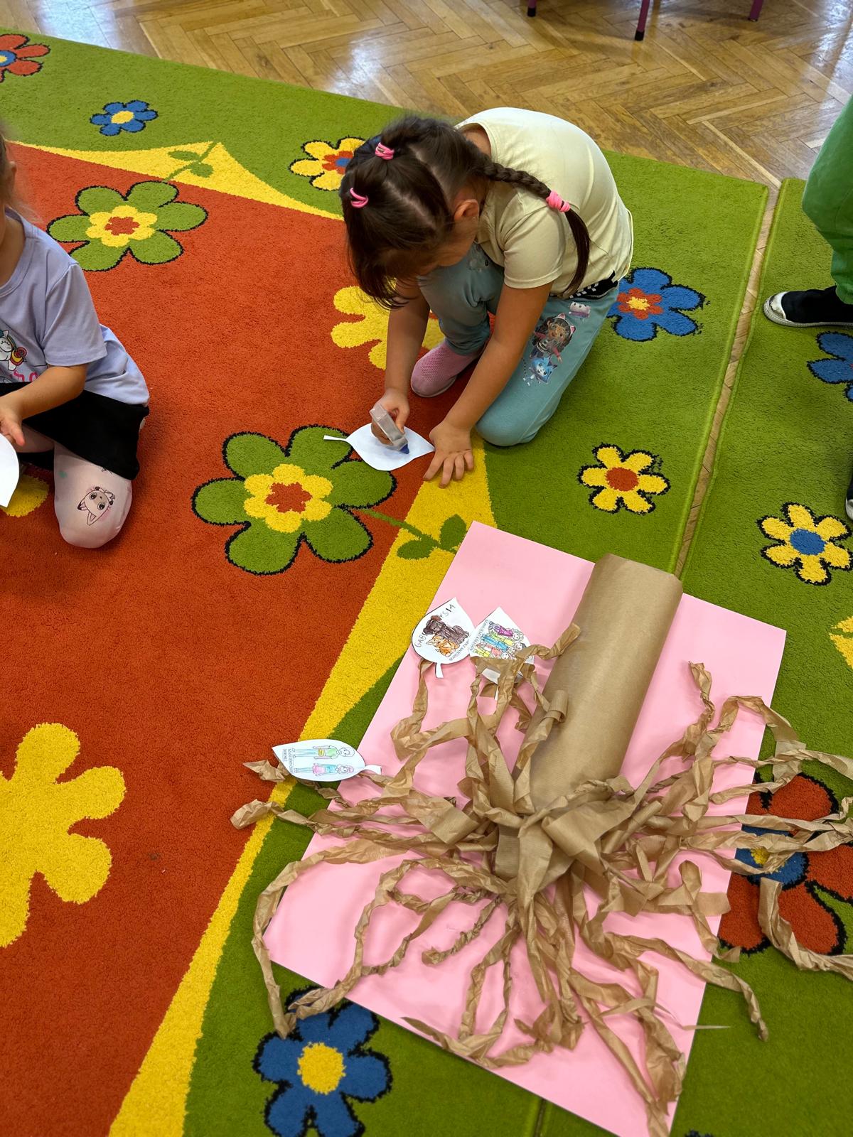Przedszkolaki z grupy V i III uczestniczyły w zajęciach edukacyjno – profilaktycznych o tematyce „Szanujmy siebie i innych”. Dzieci z wielkim zainteresowaniem wysłuchały opowiadania z „Elementarza ważnych słów. Szacunek” H. Mortimer i C. Trapanese. Poprzez różnorodne działania dowiedziały się dlaczego powinniśmy szanować innych ludzi: rówieśników, osoby starsze, osoby niepełnosprawne, zwierzęta oraz samych siebie. Na zakończenie dzieci wykonały plakat „Drzewo szacunku”, gdzie w sposób graficzny zobrazowały na liściach różne postawy i zachowania świadczące o szacunku do ludzi i otoczenia. To był bardzo dobry dzień i ważna lekcja, podczas której wszyscy doszliśmy do jednego wniosku „Szanujmy się !”.