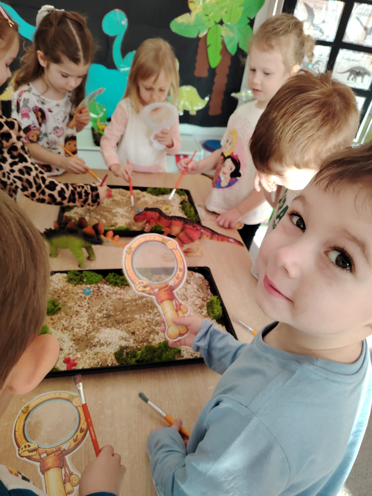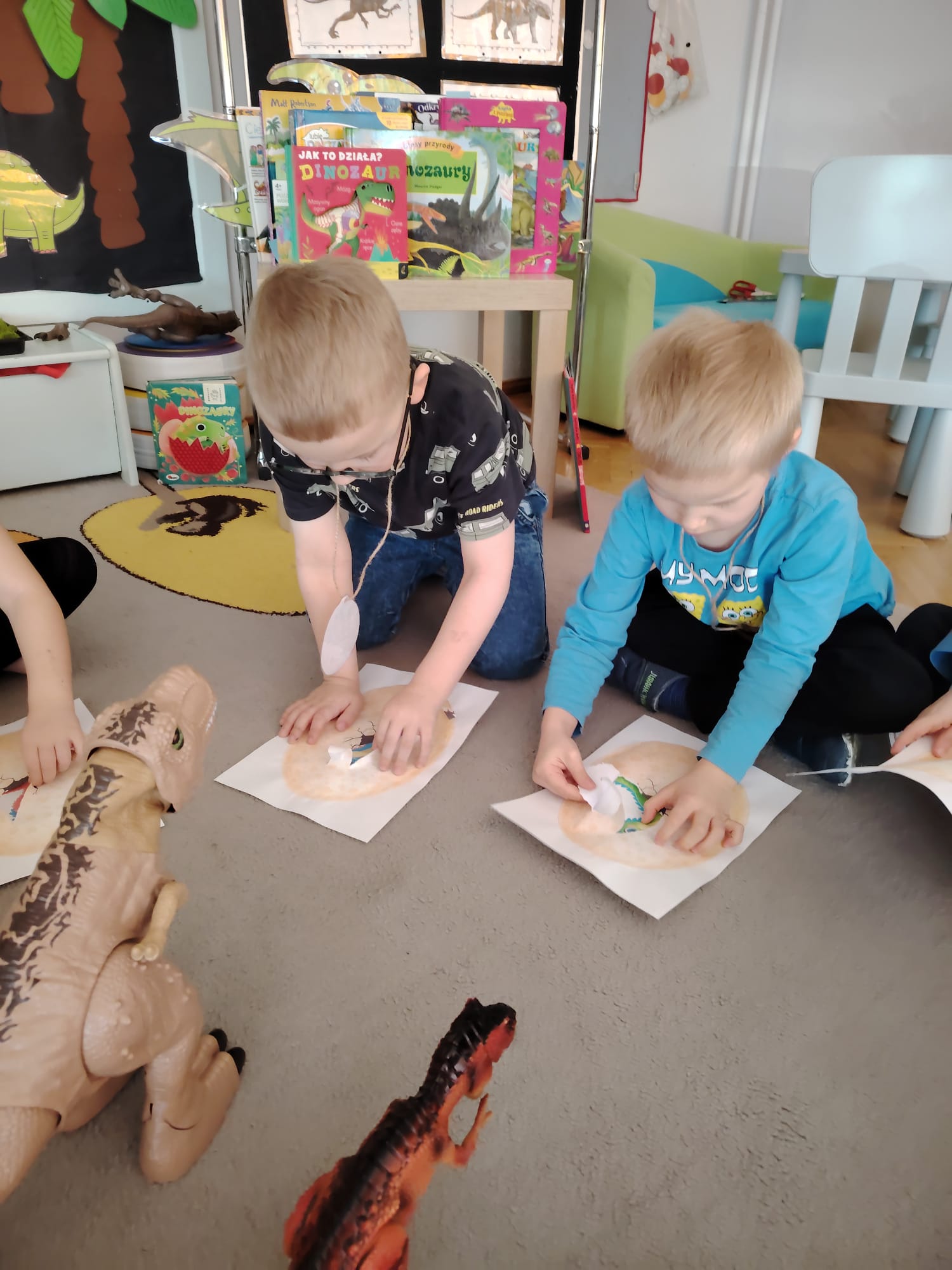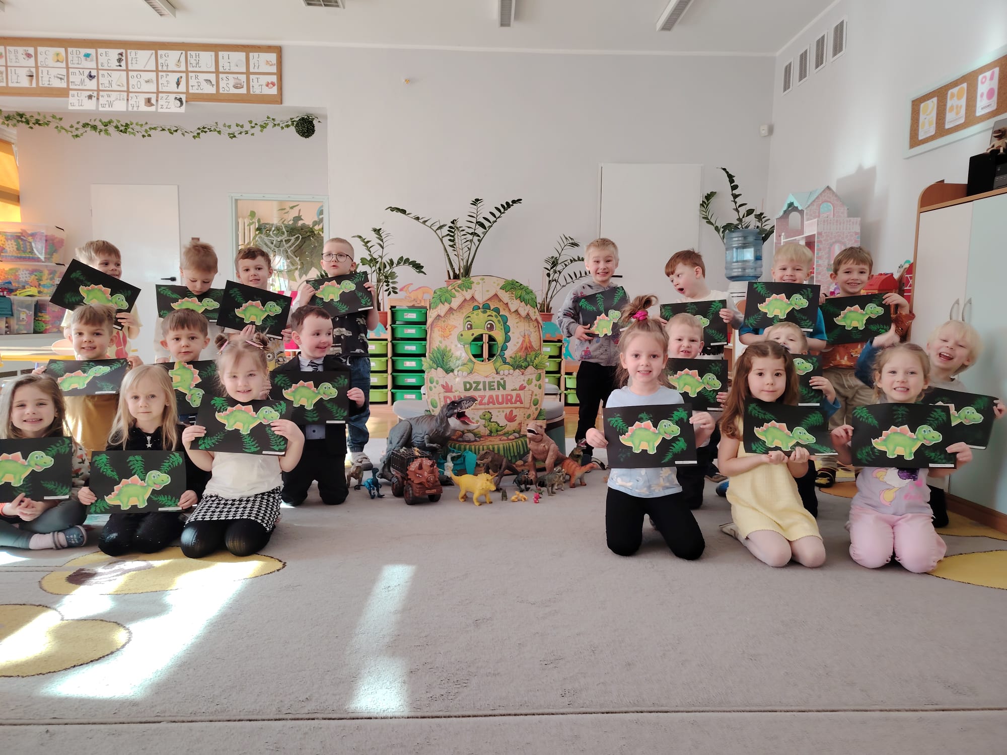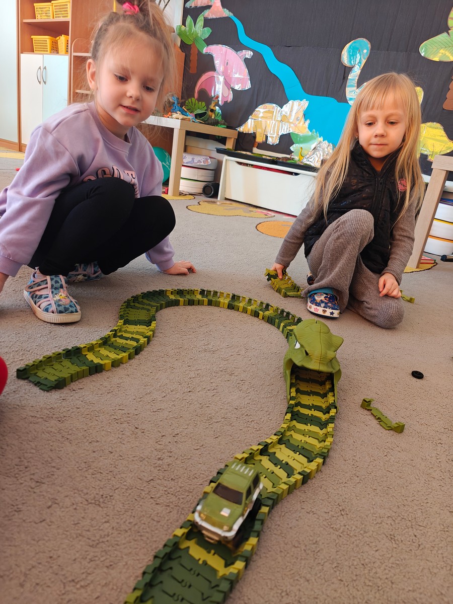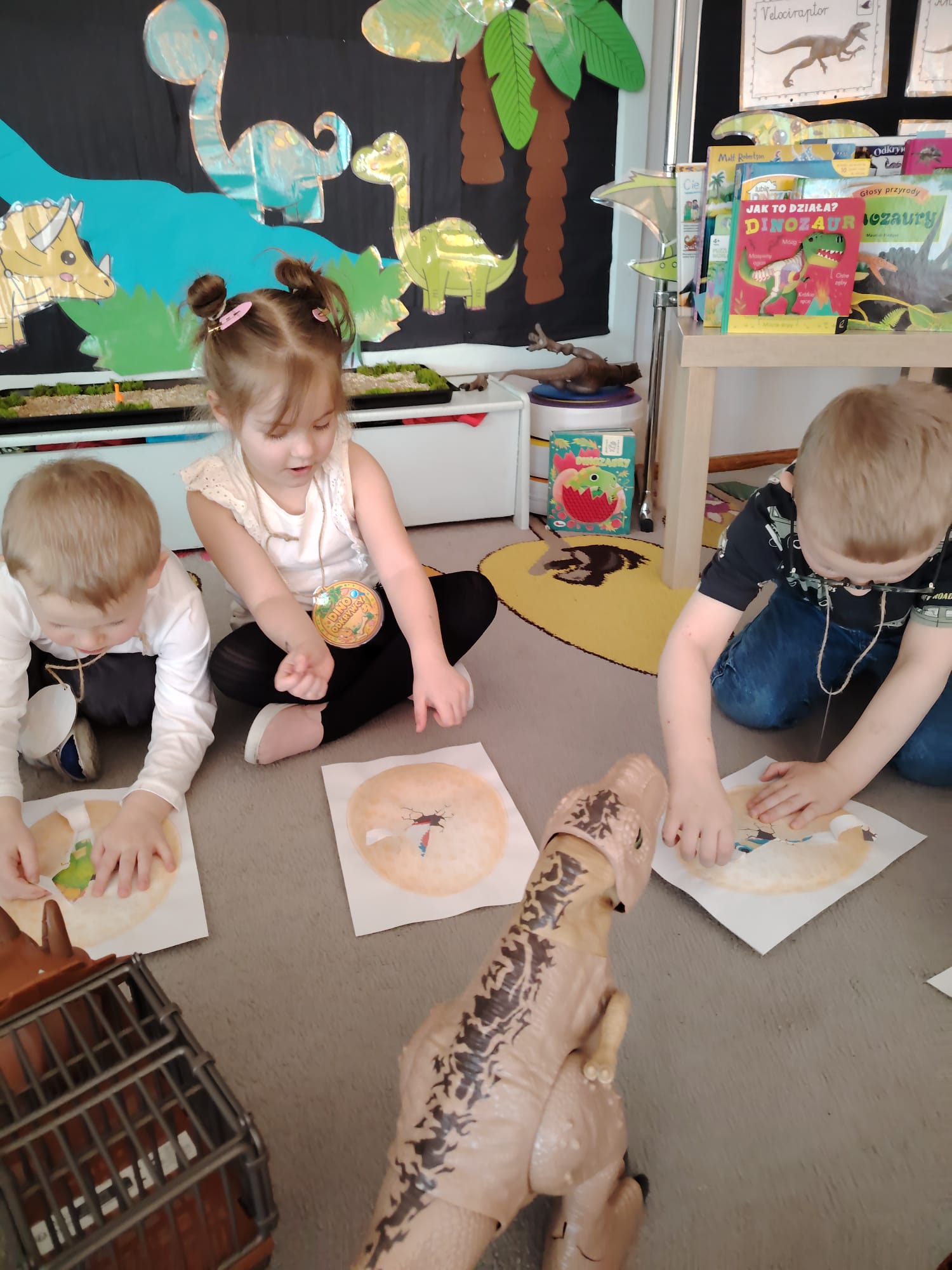 W tym tygodniu w grupie II zrealizowany został projekt edukacyjny pt. „Tajemnice prehistorycznego świata dinozaurów”, którego głównym celem było: rozbudzanie ciekawości poznawczej dzieci; poznawanie świata prehistorycznych zwierząt – dinozaurów; rozwijanie wyobraźni, kreatywności oraz aktywności twórczej dzieci; wspieranie wszechstronnego rozwoju poprzez zabawę, doświadczenia i obserwację.