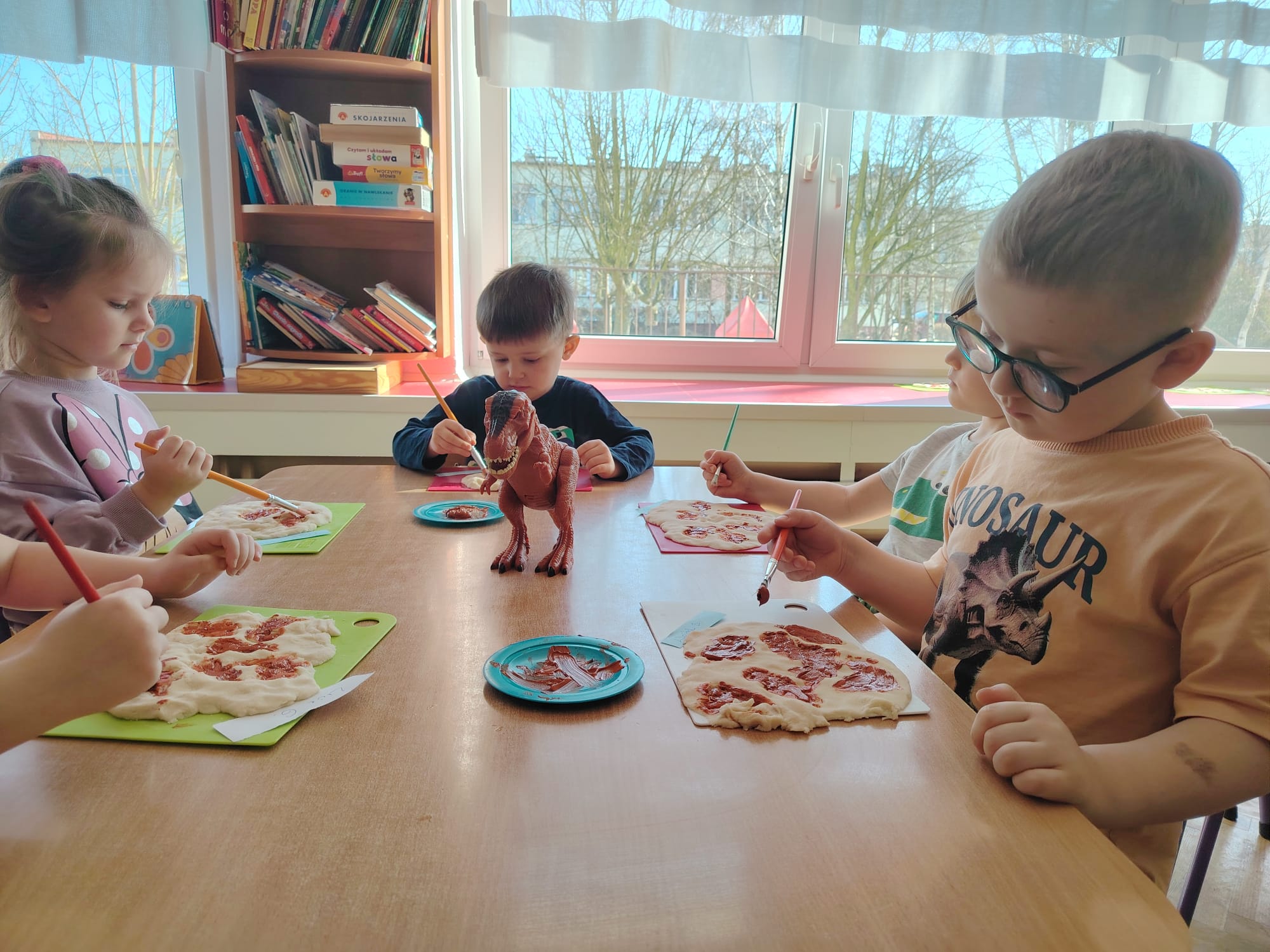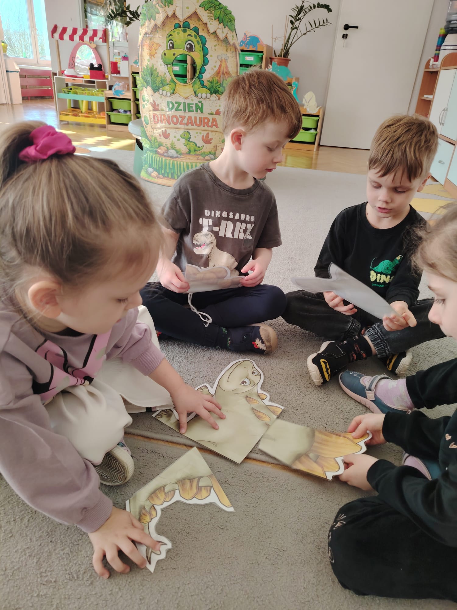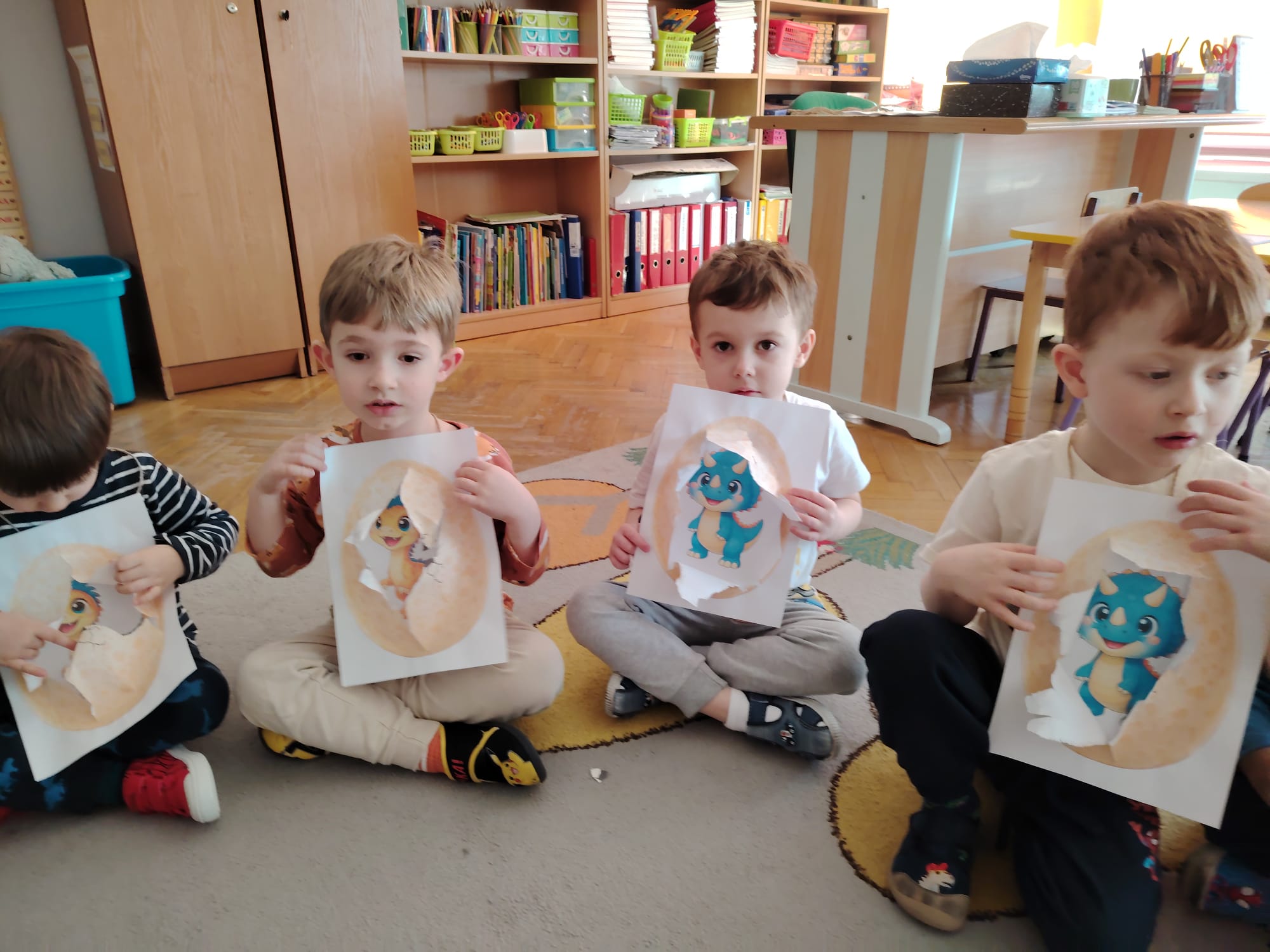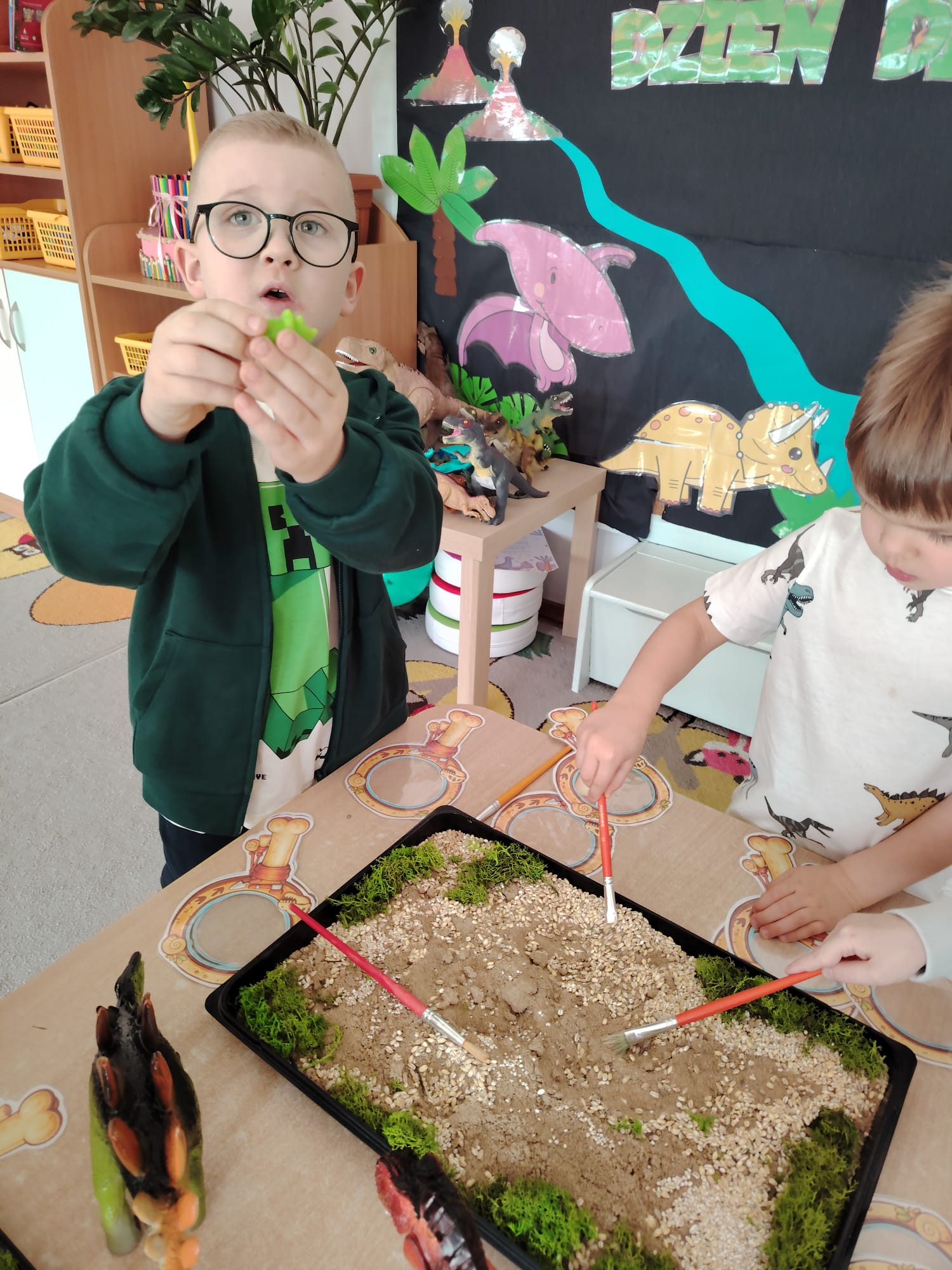 W tym tygodniu w grupie II zrealizowany został projekt edukacyjny pt. „Tajemnice prehistorycznego świata dinozaurów”, którego głównym celem było: rozbudzanie ciekawości poznawczej dzieci; poznawanie świata prehistorycznych zwierząt – dinozaurów; rozwijanie wyobraźni, kreatywności oraz aktywności twórczej dzieci; wspieranie wszechstronnego rozwoju poprzez zabawę, doświadczenia i obserwację.