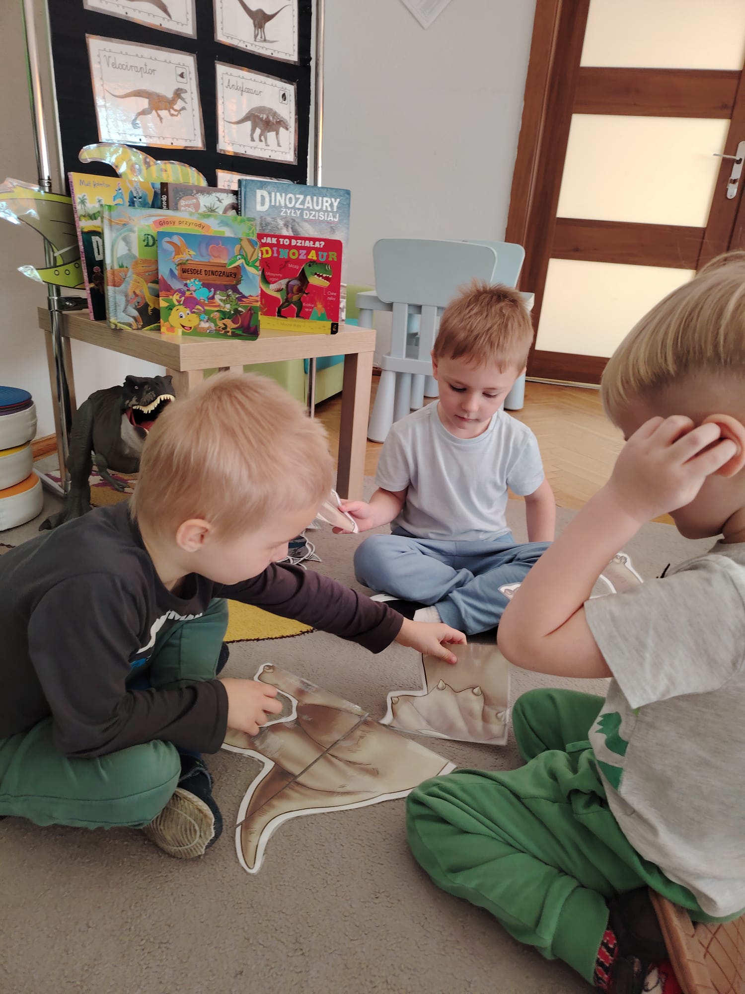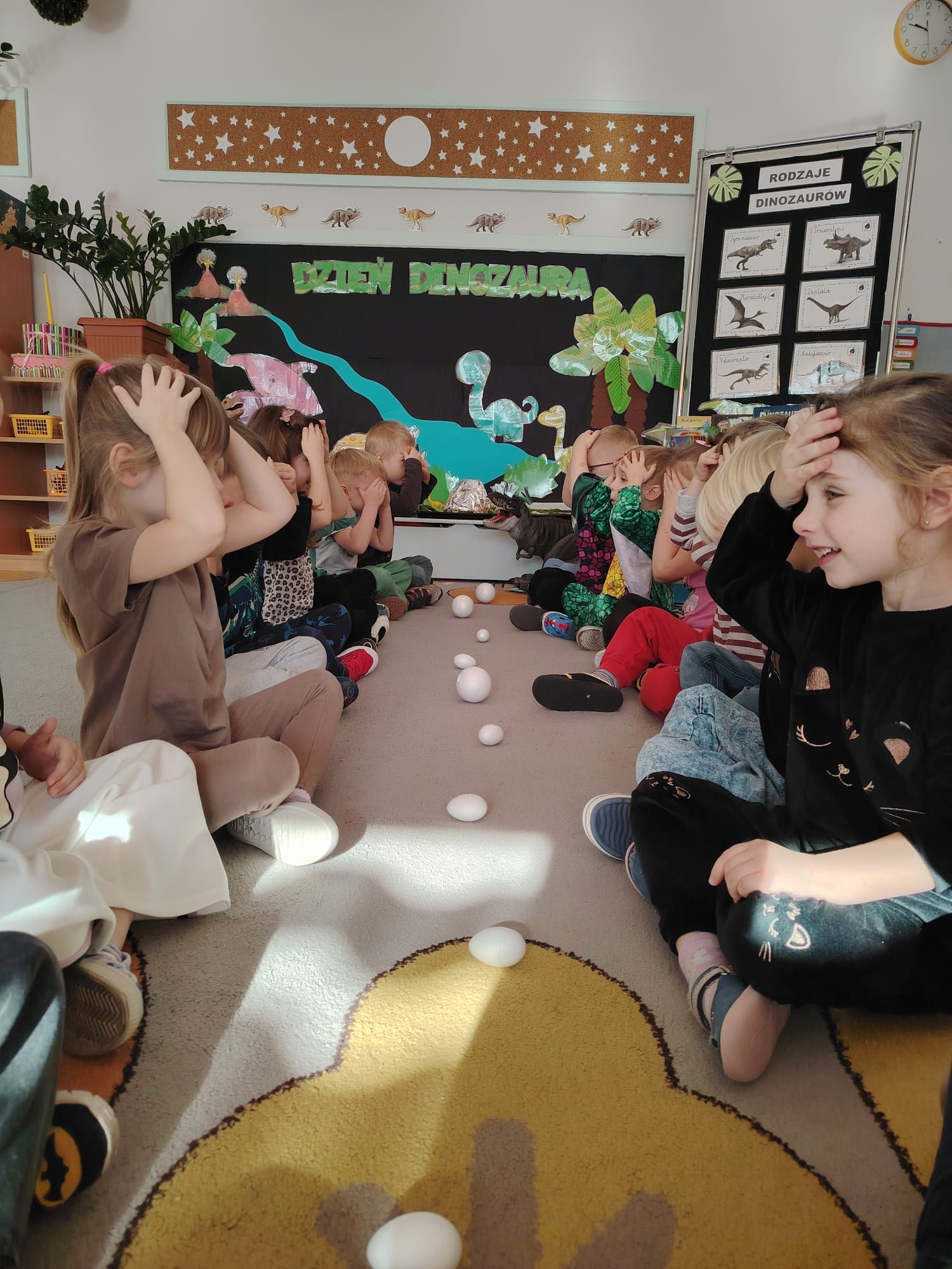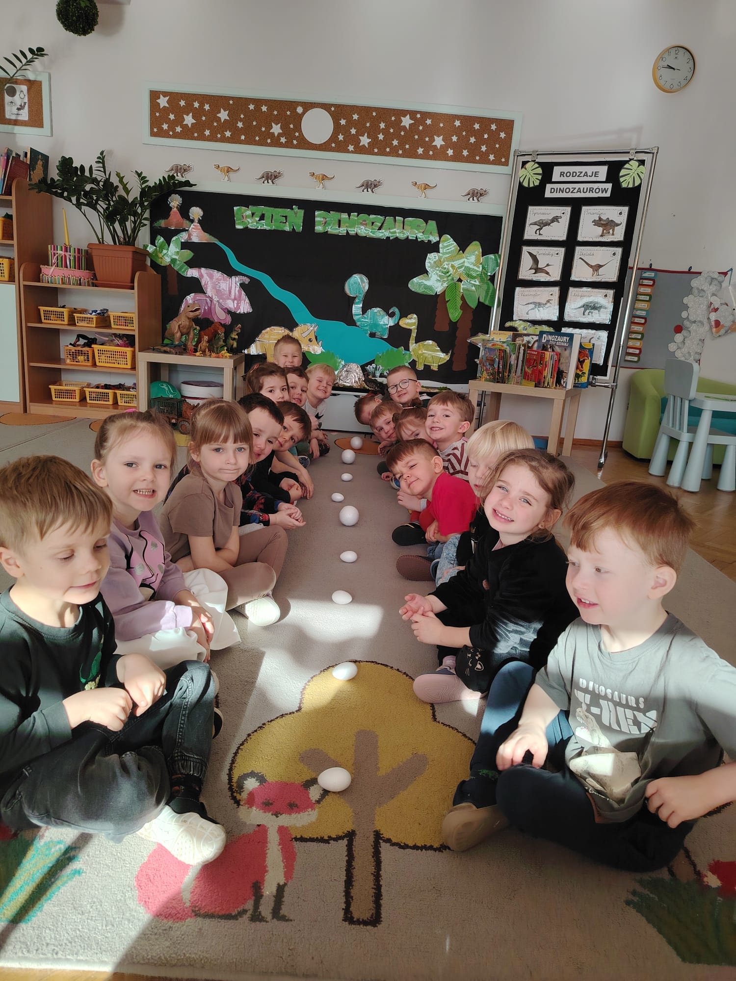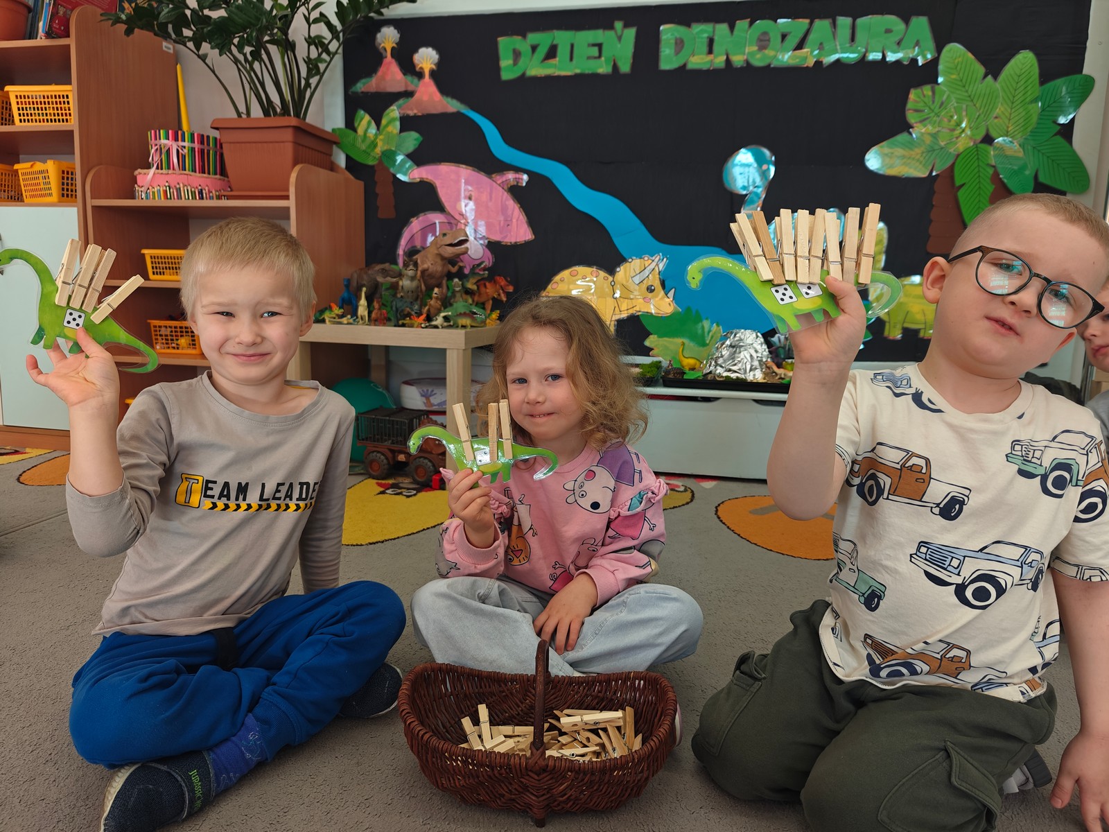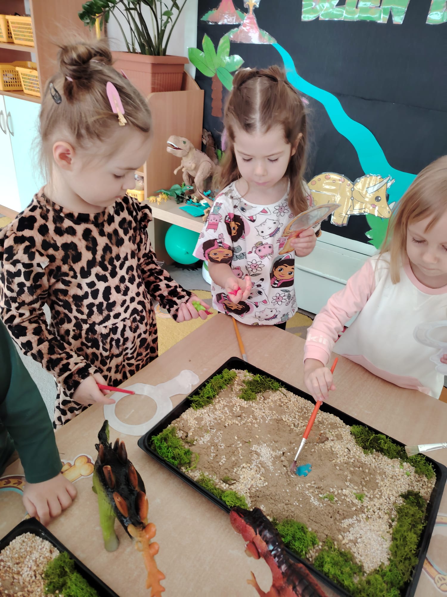 W tym tygodniu w grupie II zrealizowany został projekt edukacyjny pt. „Tajemnice prehistorycznego świata dinozaurów”, którego głównym celem było: rozbudzanie ciekawości poznawczej dzieci; poznawanie świata prehistorycznych zwierząt – dinozaurów; rozwijanie wyobraźni, kreatywności oraz aktywności twórczej dzieci; wspieranie wszechstronnego rozwoju poprzez zabawę, doświadczenia i obserwację.