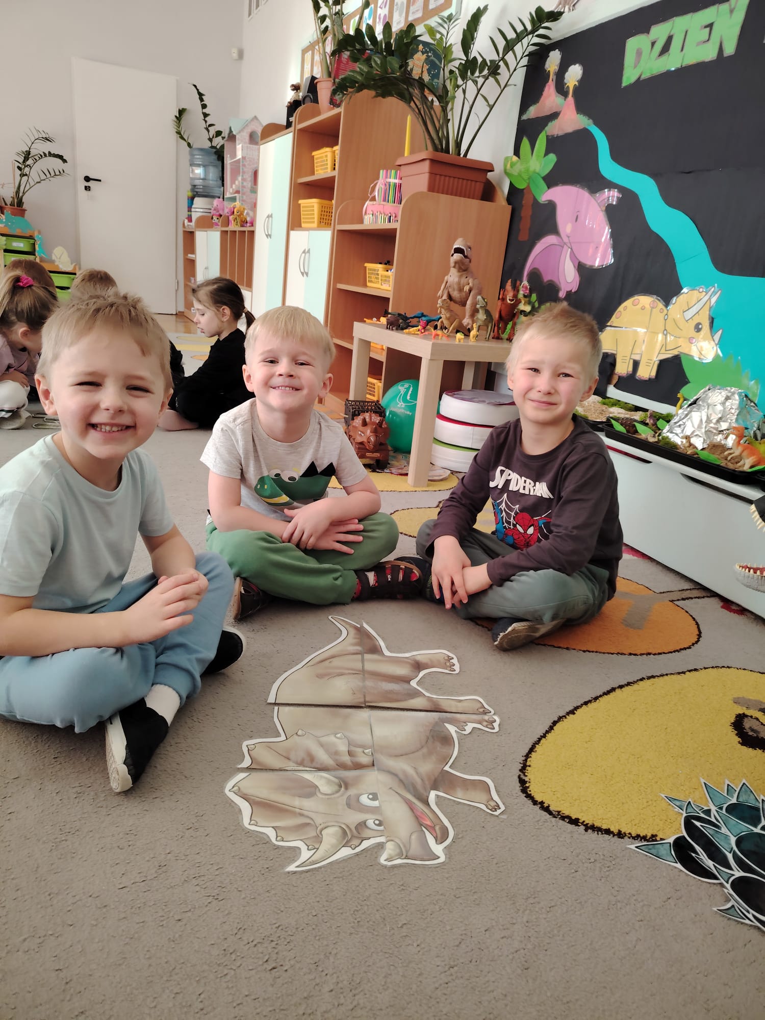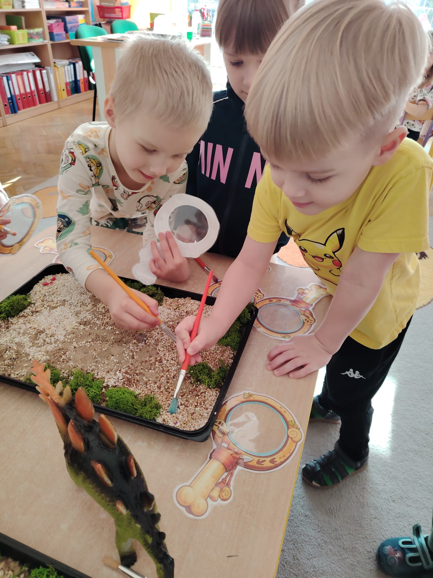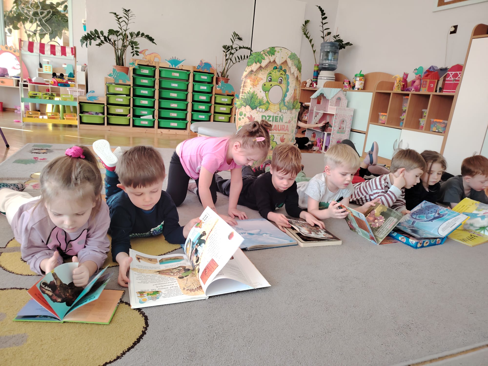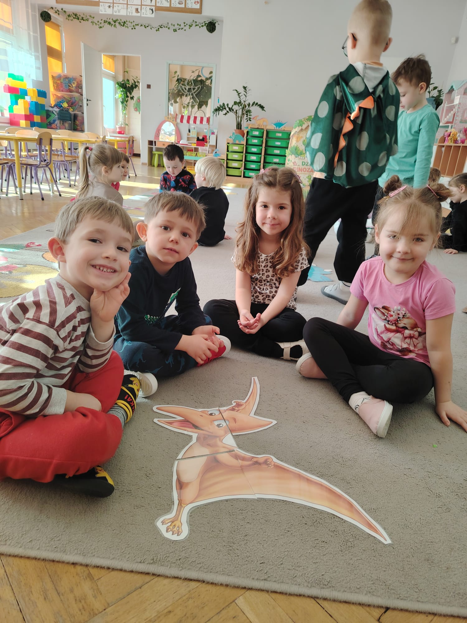 W tym tygodniu w grupie II zrealizowany został projekt edukacyjny pt. „Tajemnice prehistorycznego świata dinozaurów”, którego głównym celem było: rozbudzanie ciekawości poznawczej dzieci; poznawanie świata prehistorycznych zwierząt – dinozaurów; rozwijanie wyobraźni, kreatywności oraz aktywności twórczej dzieci; wspieranie wszechstronnego rozwoju poprzez zabawę, doświadczenia i obserwację.