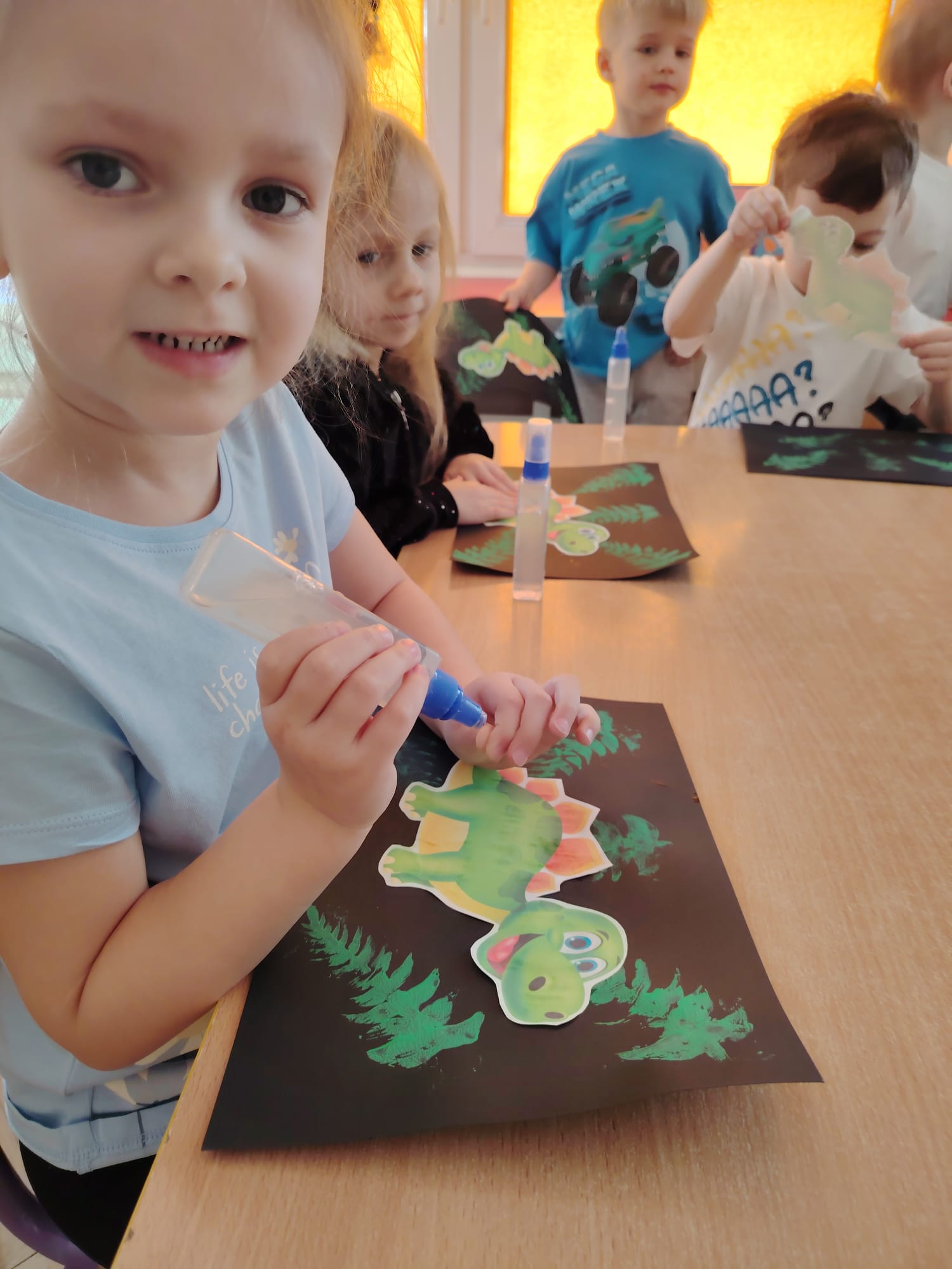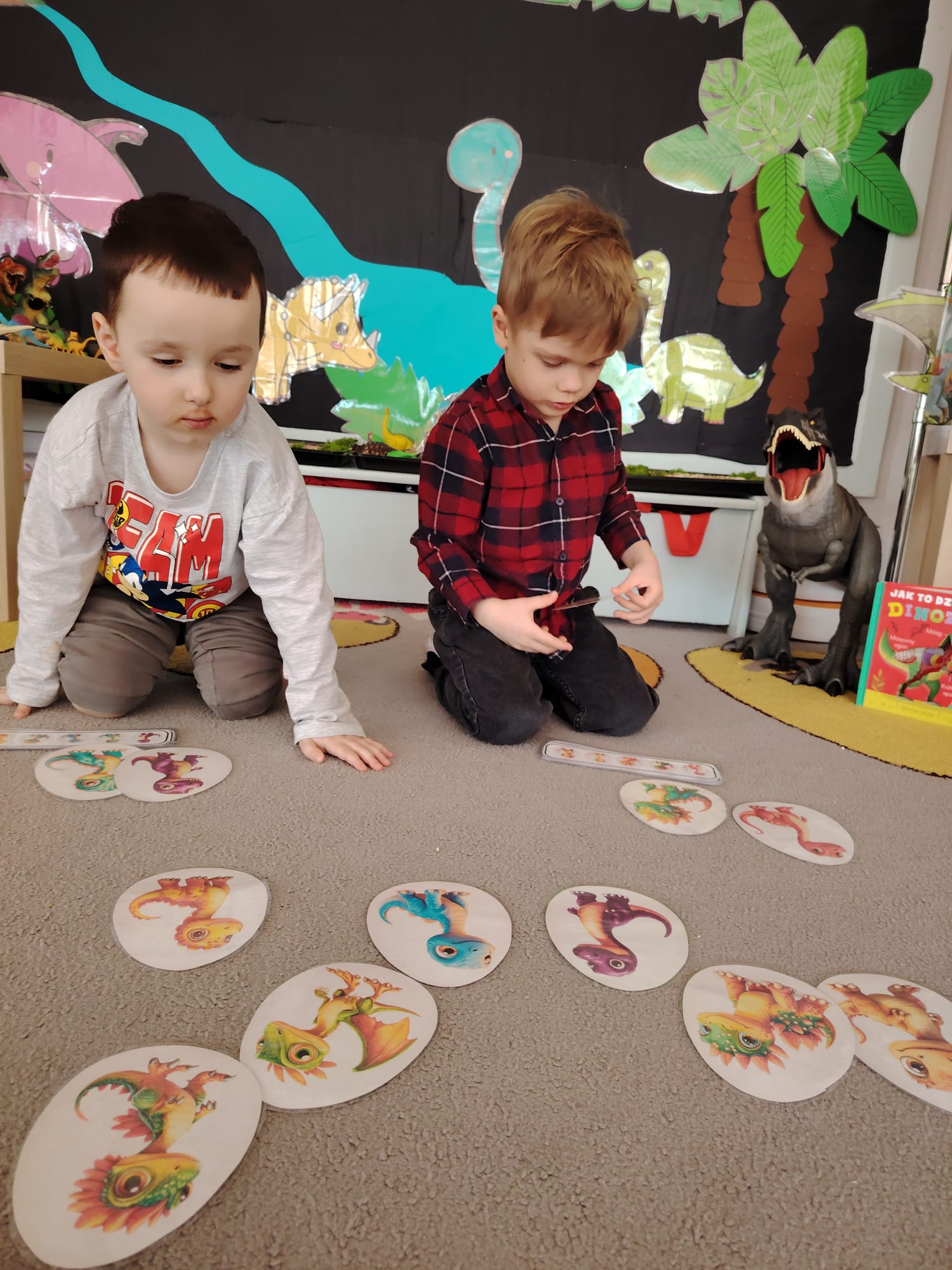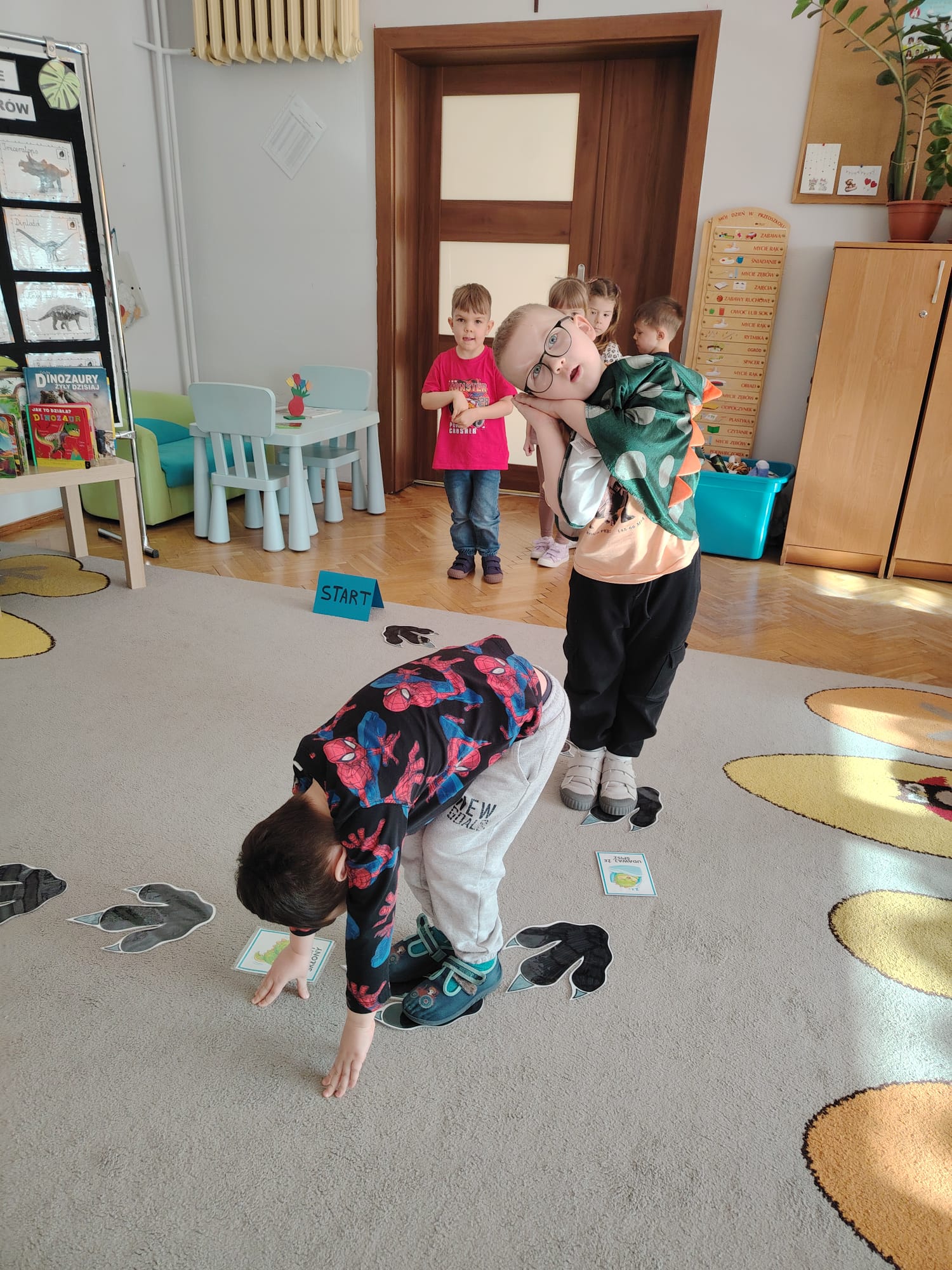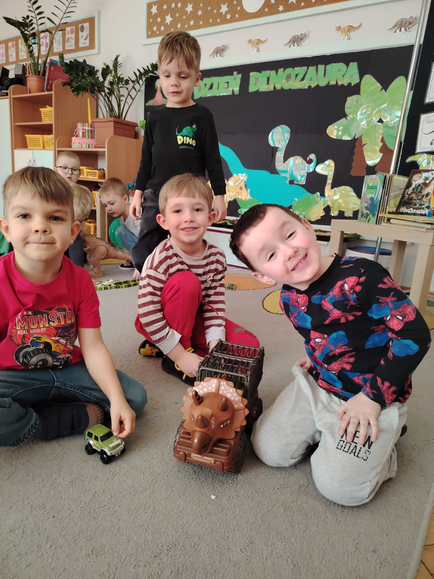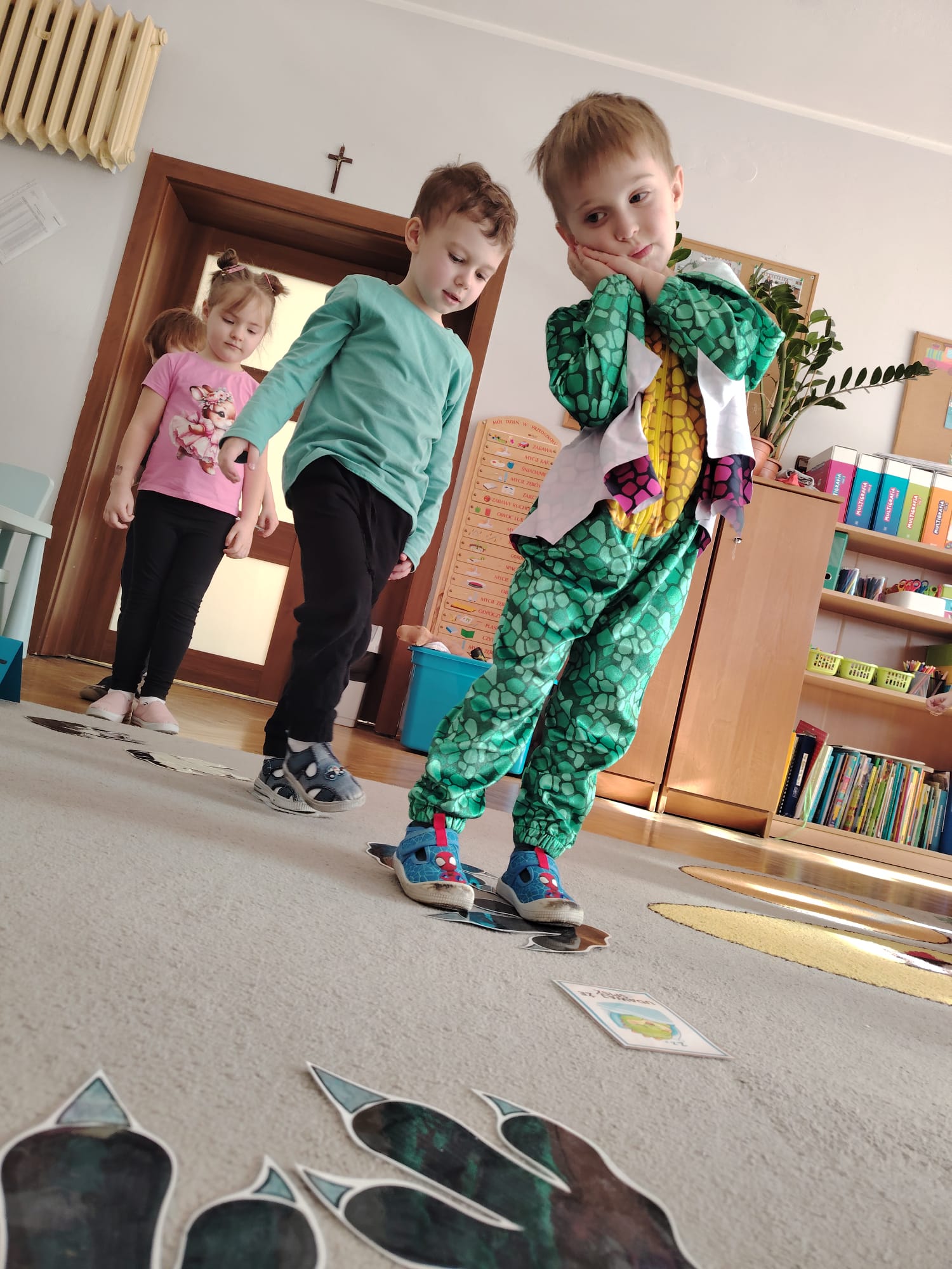 W tym tygodniu w grupie II zrealizowany został projekt edukacyjny pt. „Tajemnice prehistorycznego świata dinozaurów”, którego głównym celem było: rozbudzanie ciekawości poznawczej dzieci; poznawanie świata prehistorycznych zwierząt – dinozaurów; rozwijanie wyobraźni, kreatywności oraz aktywności twórczej dzieci; wspieranie wszechstronnego rozwoju poprzez zabawę, doświadczenia i obserwację.
