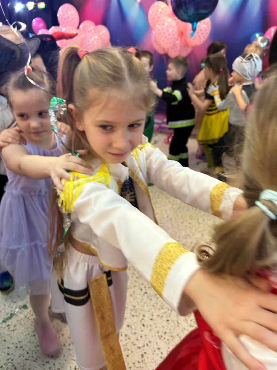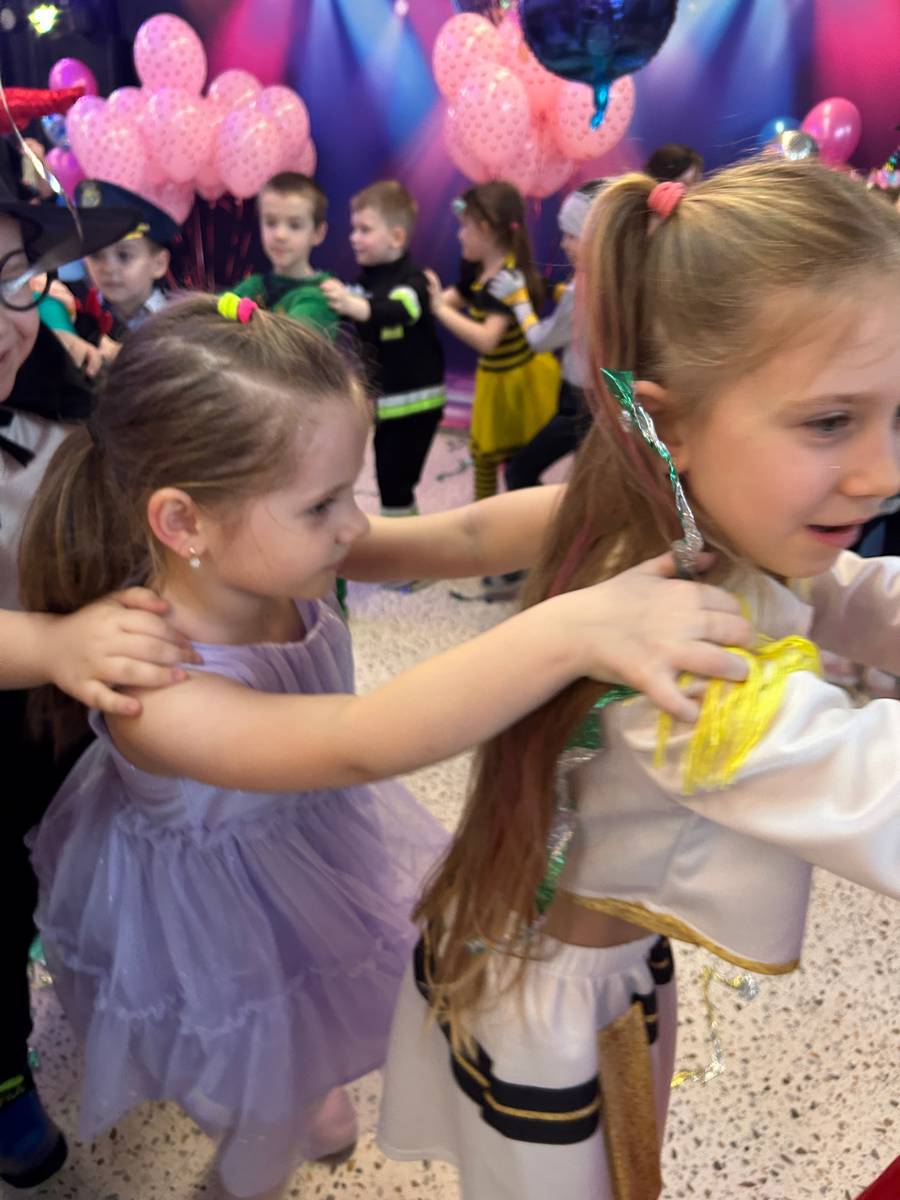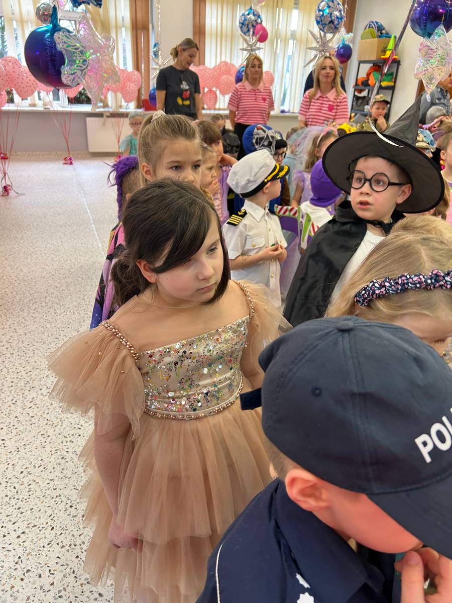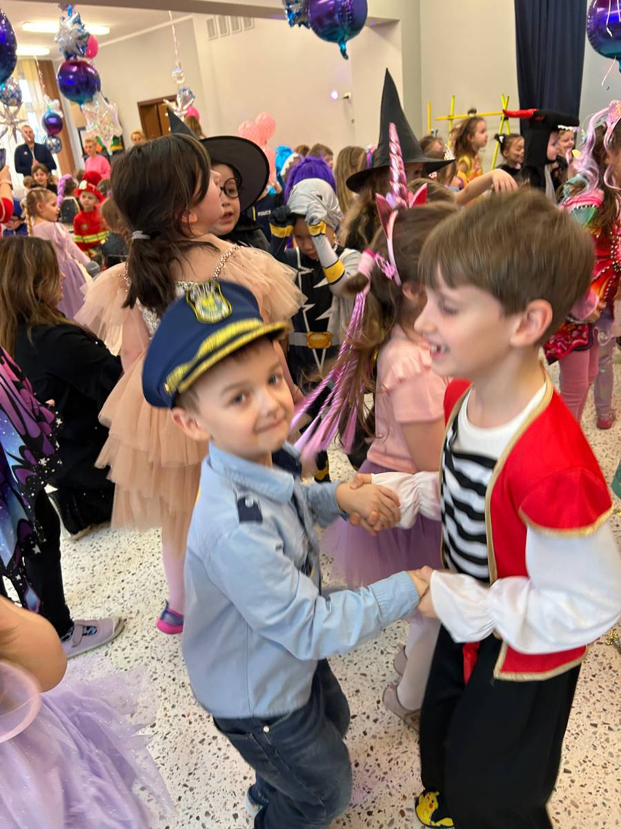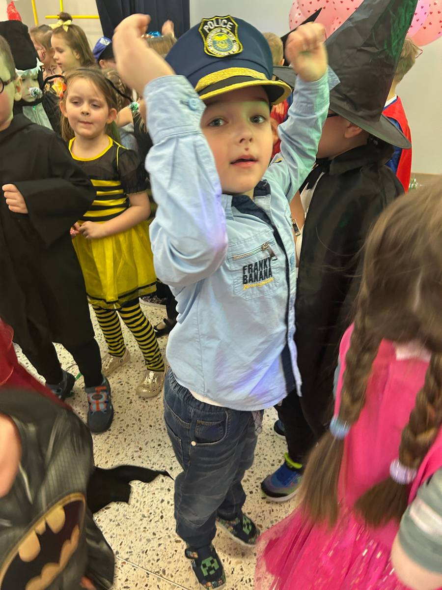 Za nami kolejny wspaniały bal Karnawałowy pełen muzyki, tańca i dziecięcej radości. Nasza sala zamieniła się w roztańczoną krainę wyobraźni. Na parkiecie pojawiło się wiele różnorodnych postaci: wróżki, policjanci, księżniczki, a nawet Józef Piłsudski. Wielobarwne stroje, uśmiechy i dużo energii towarzyszyło dzieciom już od pierwszych dźwięków muzyki aż do ostatniego tańca. Dzieci z ogromnym zaangażowaniem brały udział w zabawach tanecznych, konkursach. Nie zabrakło niezwykłych rekwizytów. Wyjątkową atrakcją okazały się być bańki mydlane, które unosiły się nad parkietem. Był to czas integracji grup, zabawy i dziecięcej radości. Z niecierpliwością będziemy czekali na kolejny bal!