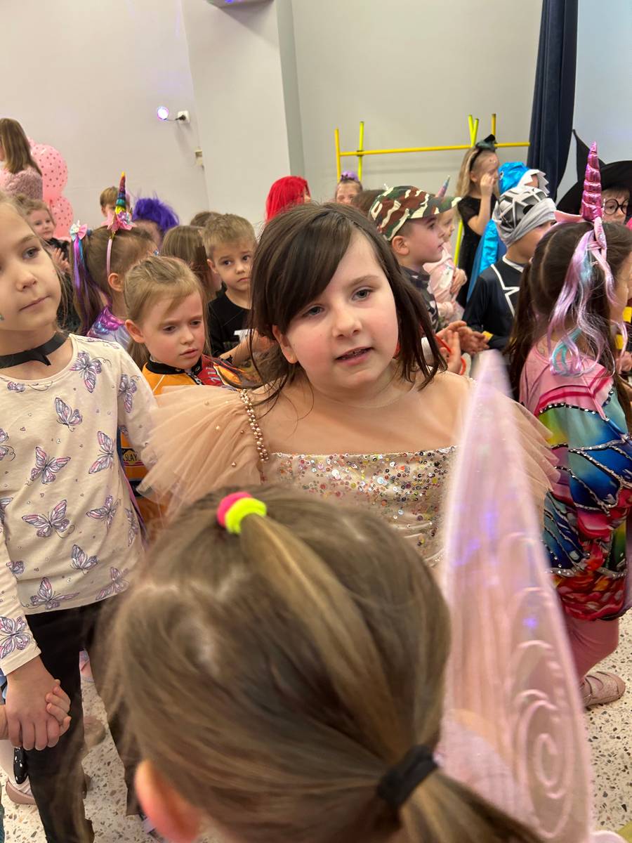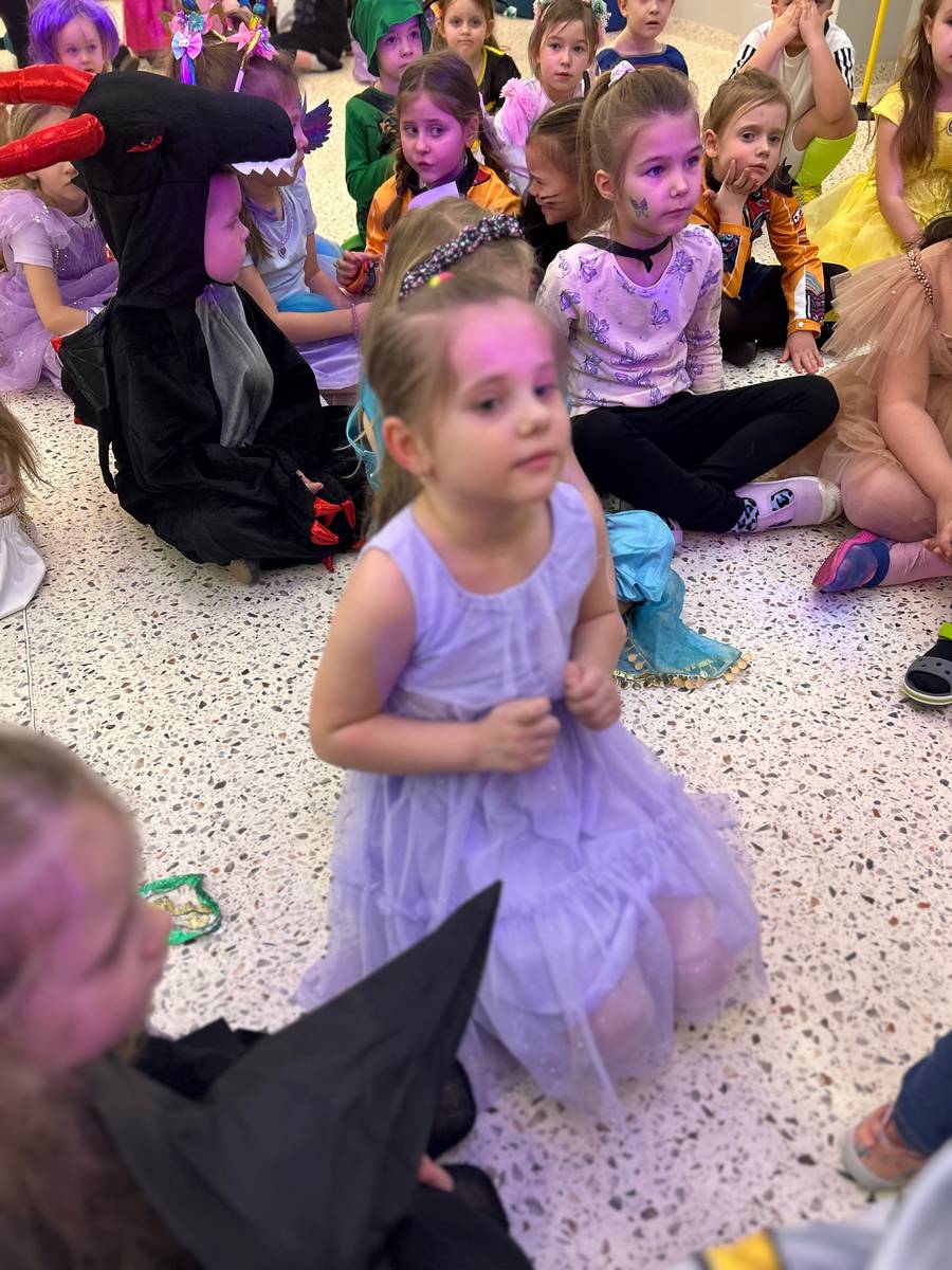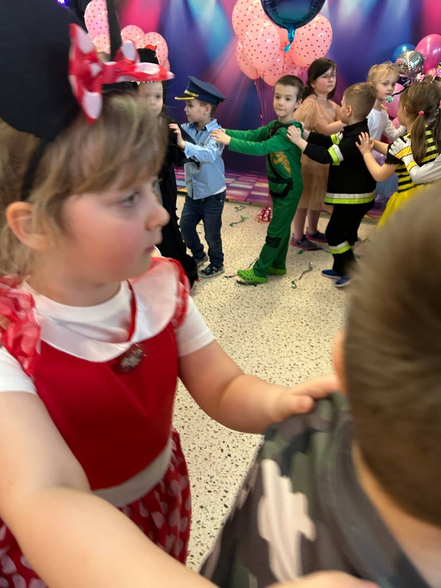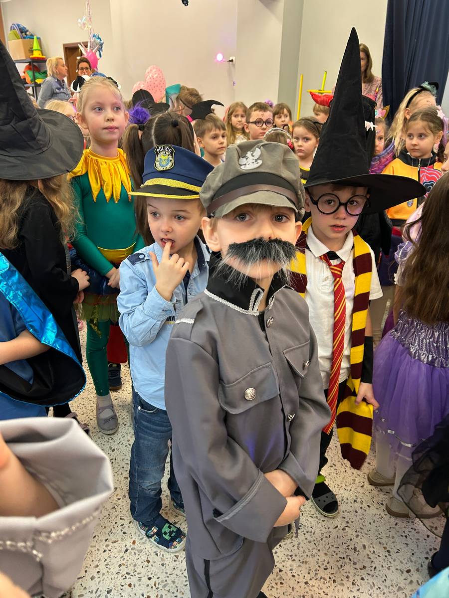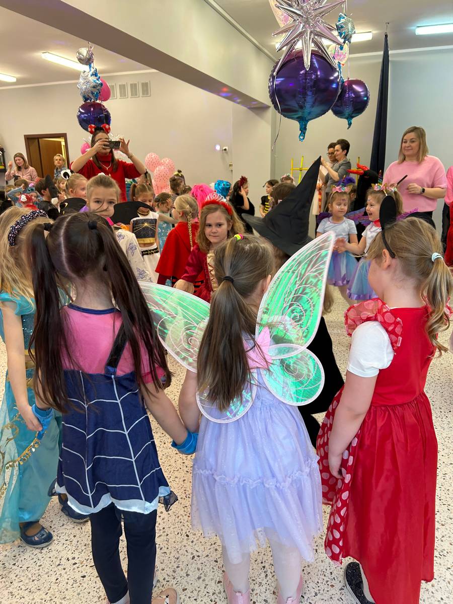 Za nami kolejny wspaniały bal Karnawałowy pełen muzyki, tańca i dziecięcej radości. Nasza sala zamieniła się w roztańczoną krainę wyobraźni. Na parkiecie pojawiło się wiele różnorodnych postaci: wróżki, policjanci, księżniczki, a nawet Józef Piłsudski. Wielobarwne stroje, uśmiechy i dużo energii towarzyszyło dzieciom już od pierwszych dźwięków muzyki aż do ostatniego tańca. Dzieci z ogromnym zaangażowaniem brały udział w zabawach tanecznych, konkursach. Nie zabrakło niezwykłych rekwizytów. Wyjątkową atrakcją okazały się być bańki mydlane, które unosiły się nad parkietem. Był to czas integracji grup, zabawy i dziecięcej radości. Z niecierpliwością będziemy czekali na kolejny bal!