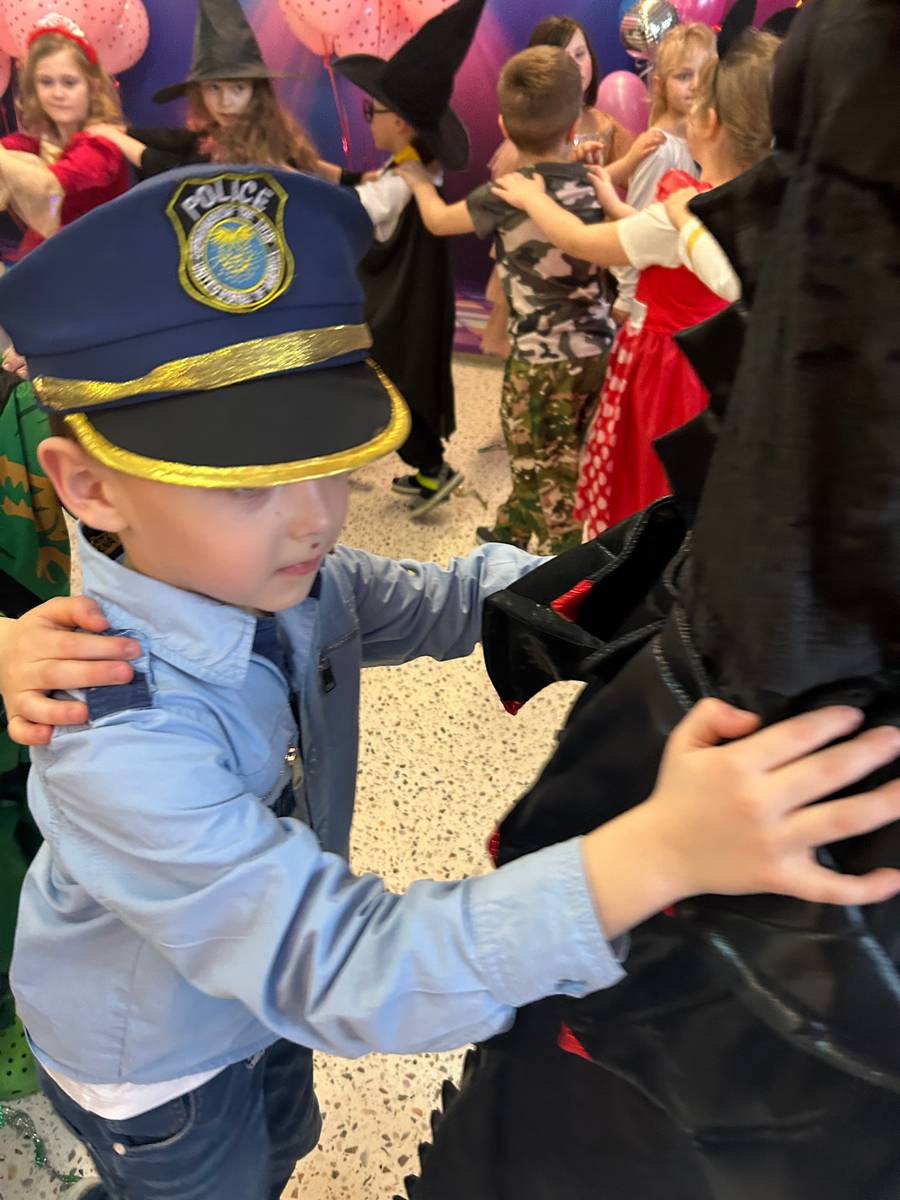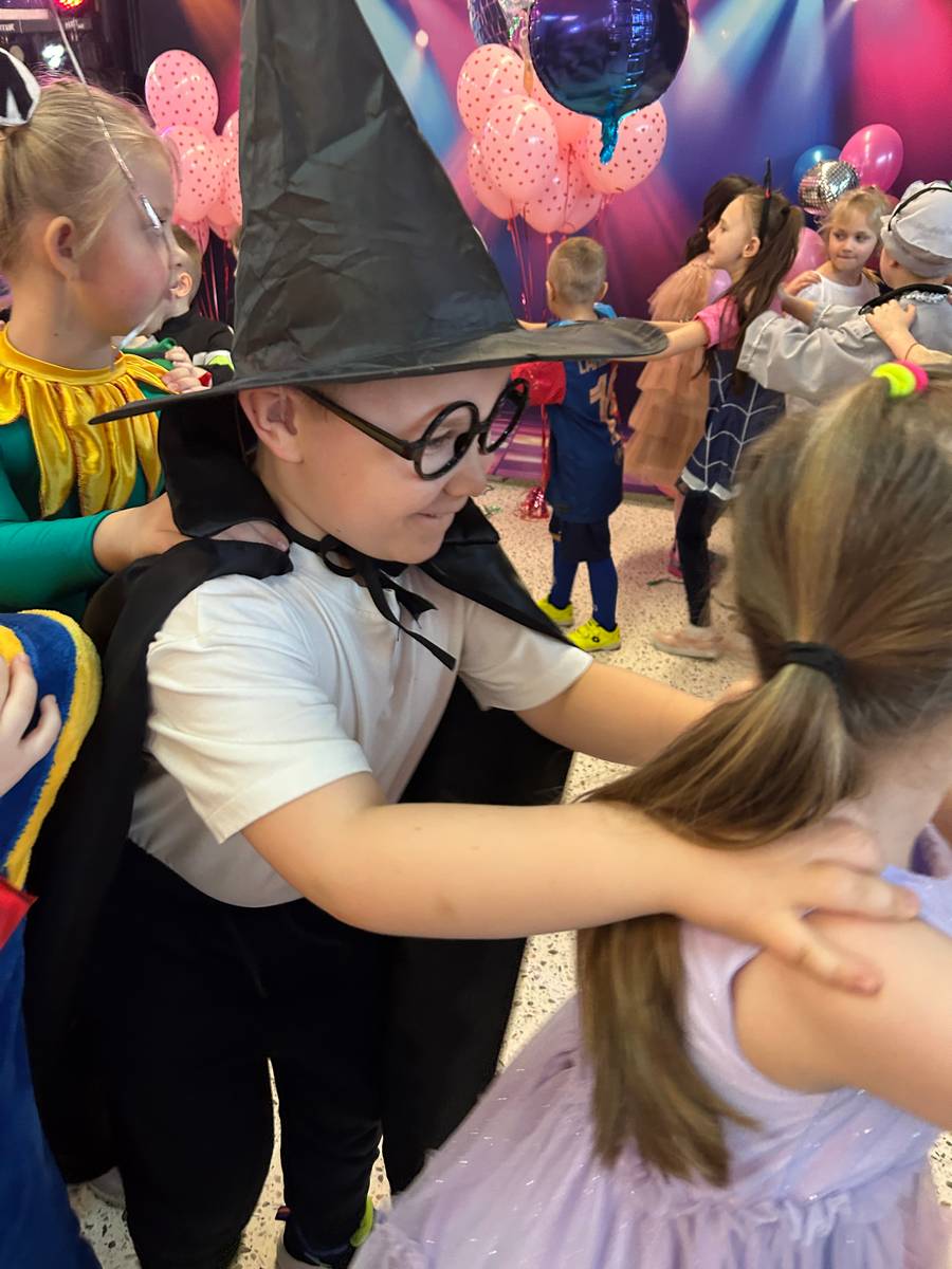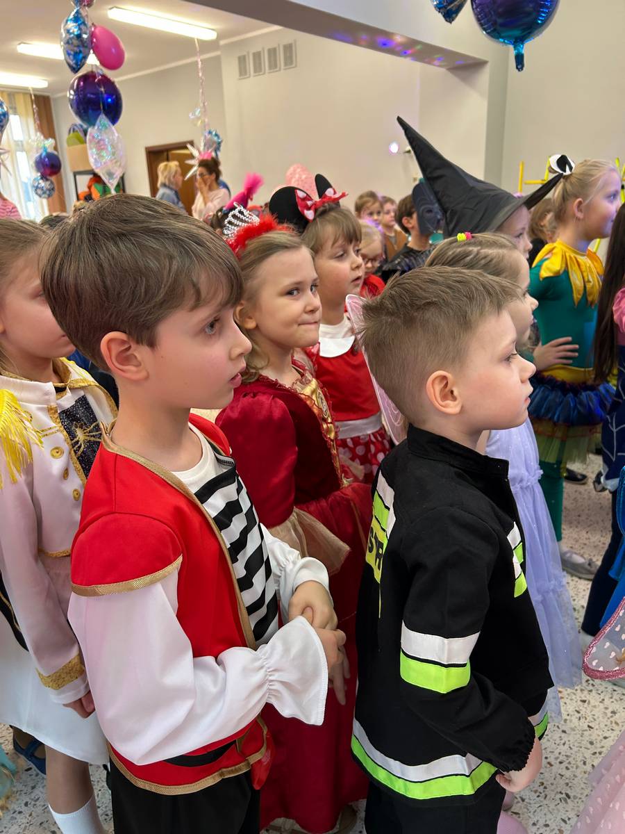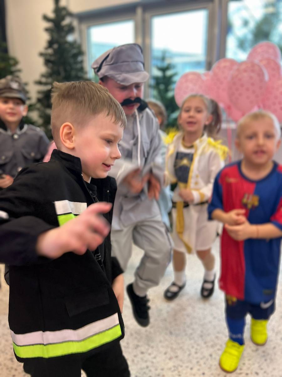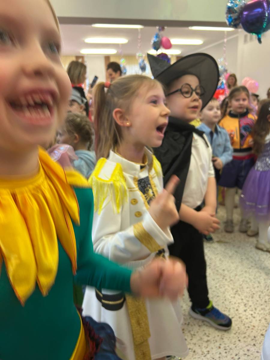 Za nami kolejny wspaniały bal Karnawałowy pełen muzyki, tańca i dziecięcej radości. Nasza sala zamieniła się w roztańczoną krainę wyobraźni. Na parkiecie pojawiło się wiele różnorodnych postaci: wróżki, policjanci, księżniczki, a nawet Józef Piłsudski. Wielobarwne stroje, uśmiechy i dużo energii towarzyszyło dzieciom już od pierwszych dźwięków muzyki aż do ostatniego tańca. Dzieci z ogromnym zaangażowaniem brały udział w zabawach tanecznych, konkursach. Nie zabrakło niezwykłych rekwizytów. Wyjątkową atrakcją okazały się być bańki mydlane, które unosiły się nad parkietem. Był to czas integracji grup, zabawy i dziecięcej radości. Z niecierpliwością będziemy czekali na kolejny bal!