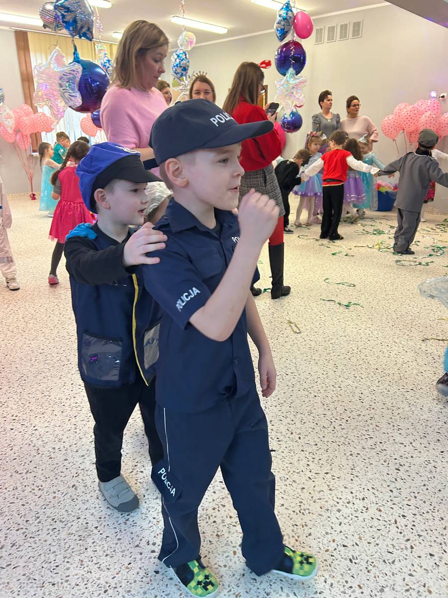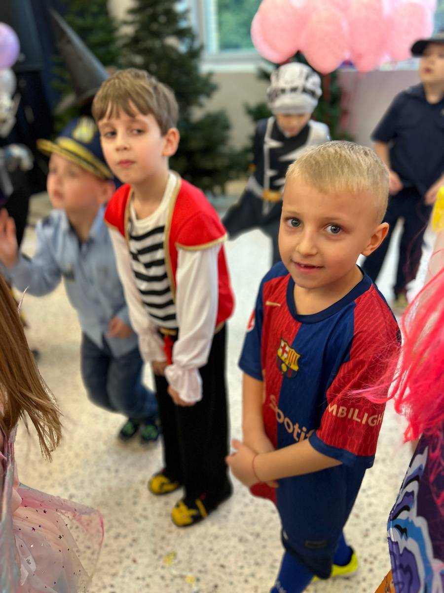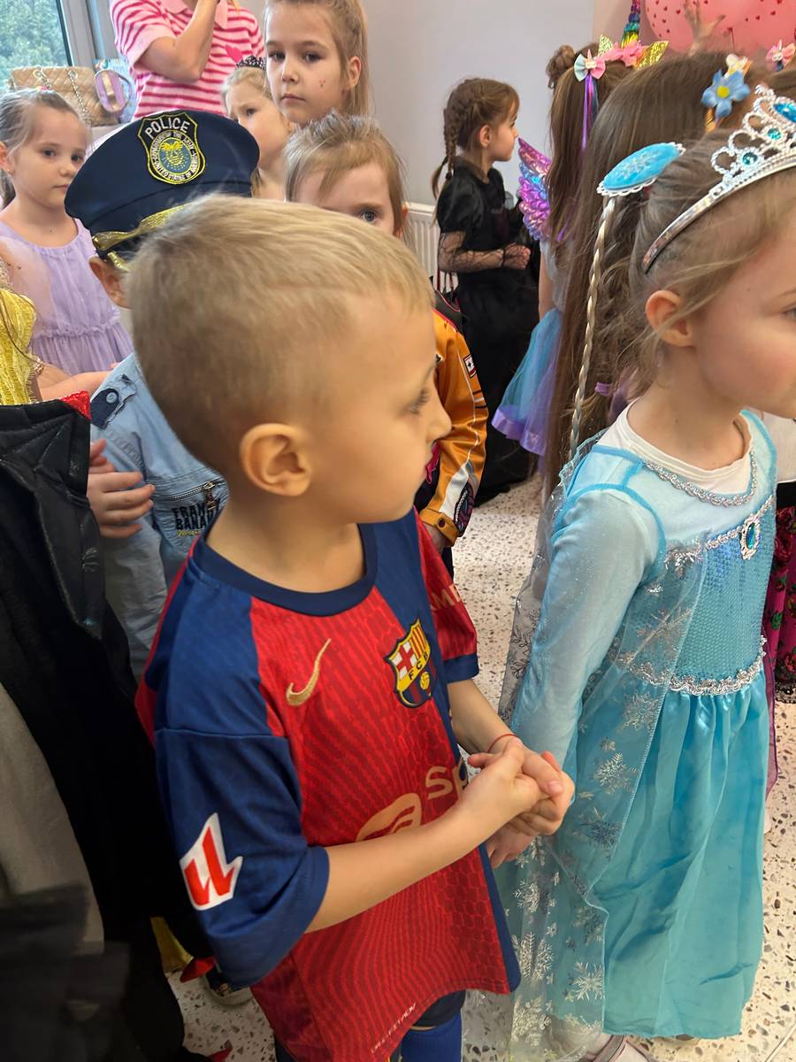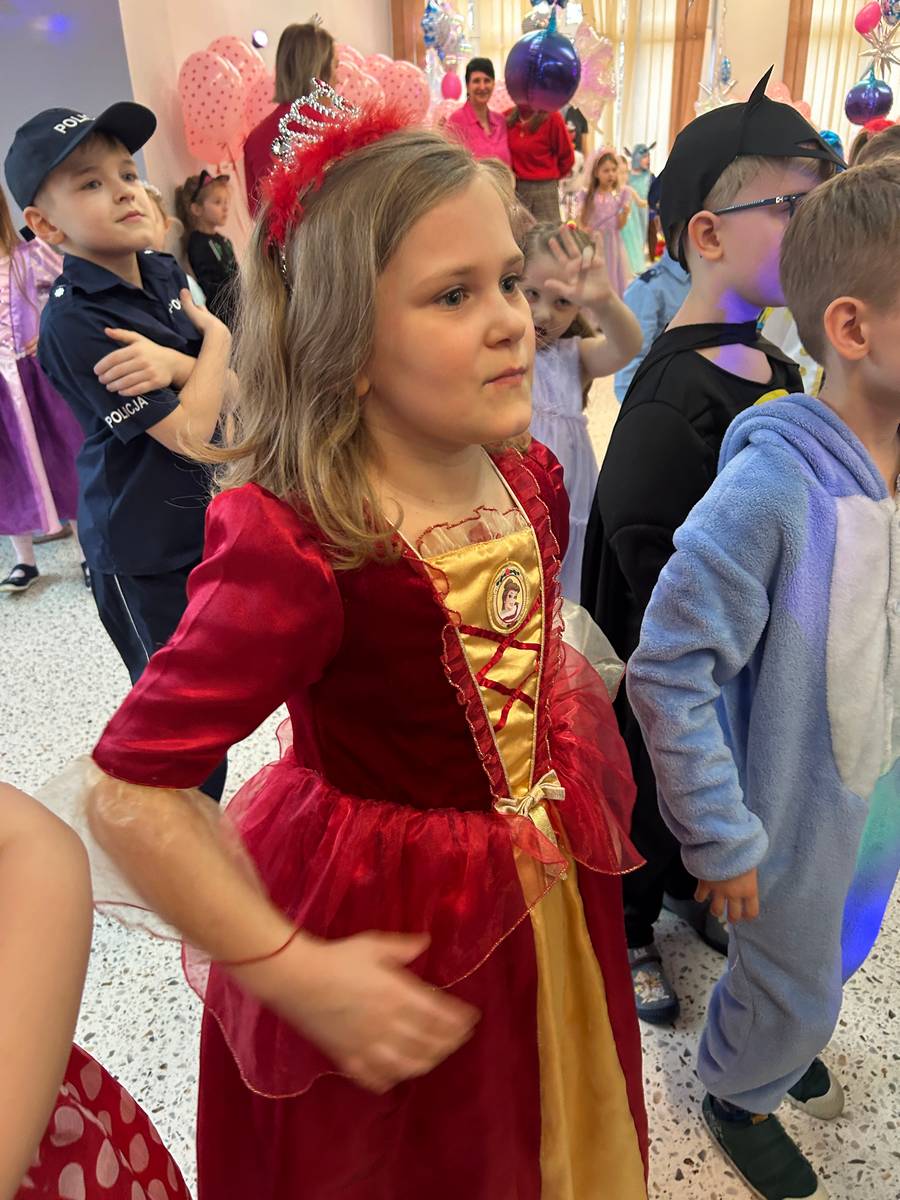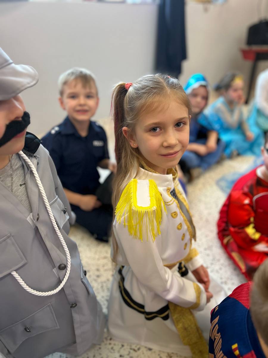Za nami kolejny wspaniały bal Karnawałowy pełen muzyki, tańca i dziecięcej radości. Nasza sala zamieniła się w roztańczoną krainę wyobraźni. Na parkiecie pojawiło się wiele różnorodnych postaci: wróżki, policjanci, księżniczki, a nawet Józef Piłsudski. Wielobarwne stroje, uśmiechy i dużo energii towarzyszyło dzieciom już od pierwszych dźwięków muzyki aż do ostatniego tańca. Dzieci z ogromnym zaangażowaniem brały udział w zabawach tanecznych, konkursach. Nie zabrakło niezwykłych rekwizytów. Wyjątkową atrakcją okazały się być bańki mydlane, które unosiły się nad parkietem. Był to czas integracji grup, zabawy i dziecięcej radości. Z niecierpliwością będziemy czekali na kolejny bal!
