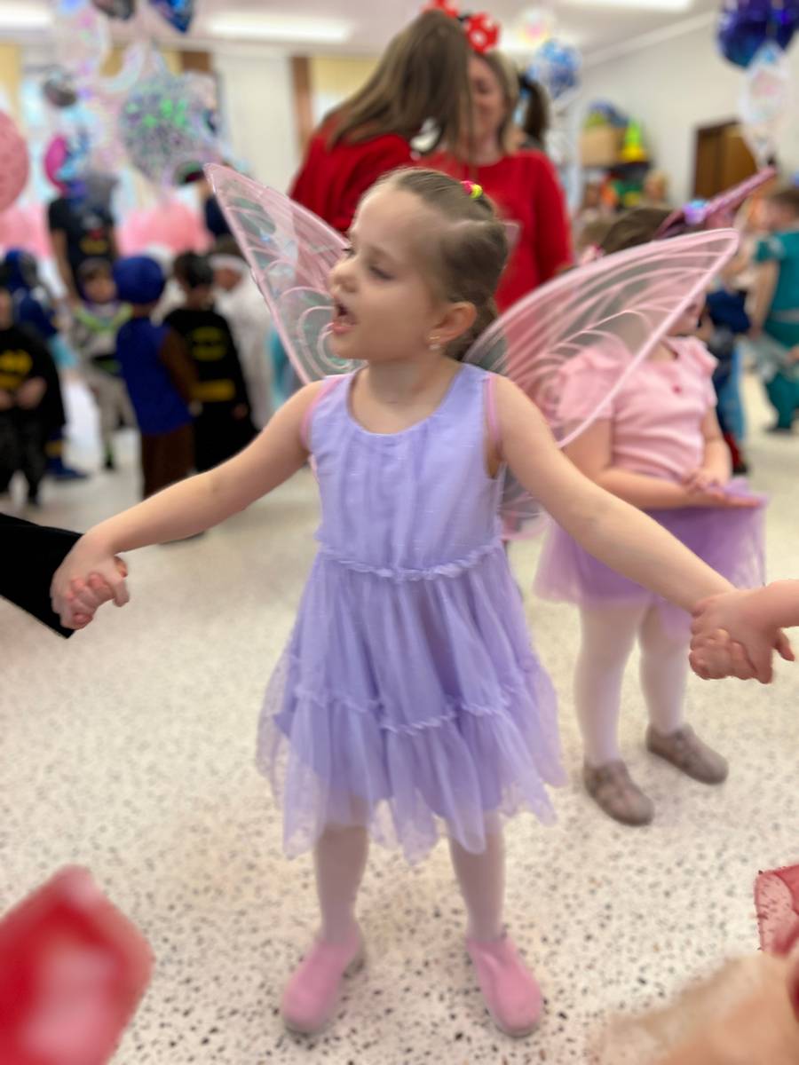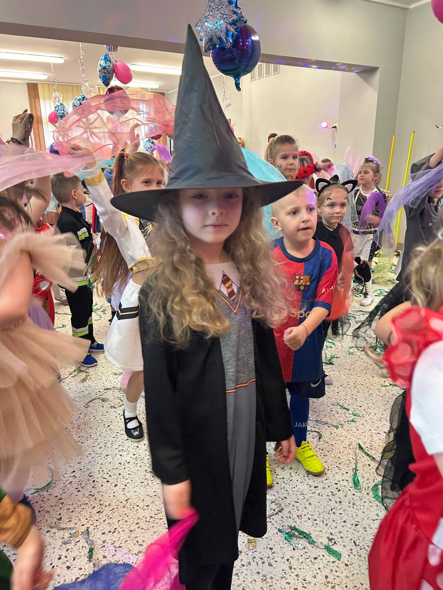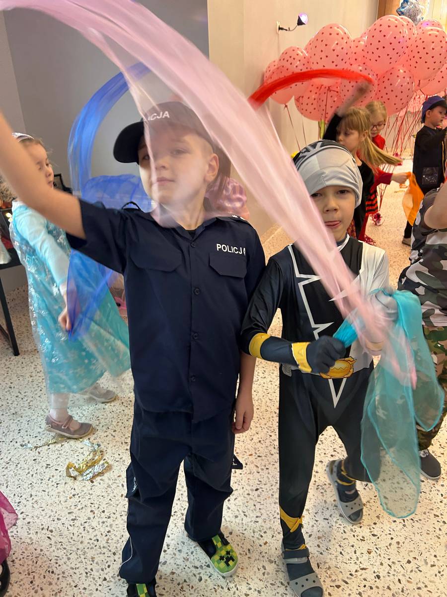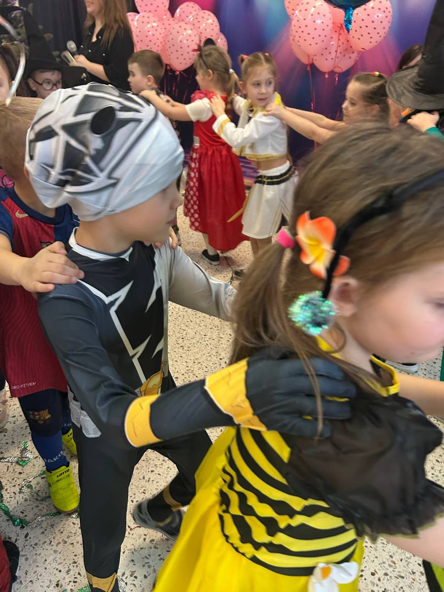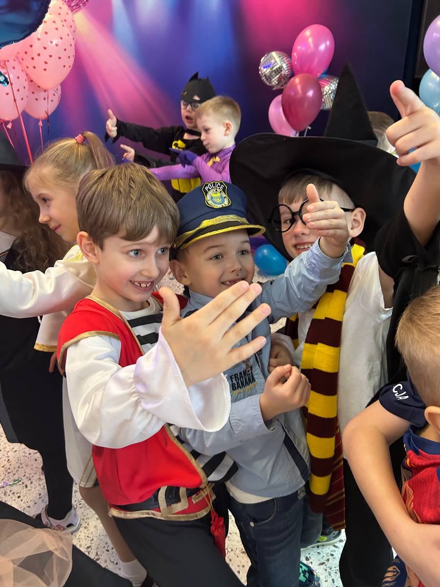 Za nami kolejny wspaniały bal Karnawałowy pełen muzyki, tańca i dziecięcej radości. Nasza sala zamieniła się w roztańczoną krainę wyobraźni. Na parkiecie pojawiło się wiele różnorodnych postaci: wróżki, policjanci, księżniczki, a nawet Józef Piłsudski. Wielobarwne stroje, uśmiechy i dużo energii towarzyszyło dzieciom już od pierwszych dźwięków muzyki aż do ostatniego tańca. Dzieci z ogromnym zaangażowaniem brały udział w zabawach tanecznych, konkursach. Nie zabrakło niezwykłych rekwizytów. Wyjątkową atrakcją okazały się być bańki mydlane, które unosiły się nad parkietem. Był to czas integracji grup, zabawy i dziecięcej radości. Z niecierpliwością będziemy czekali na kolejny bal!
