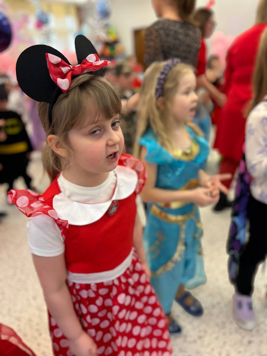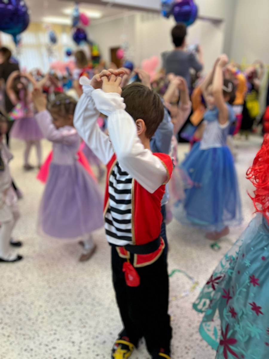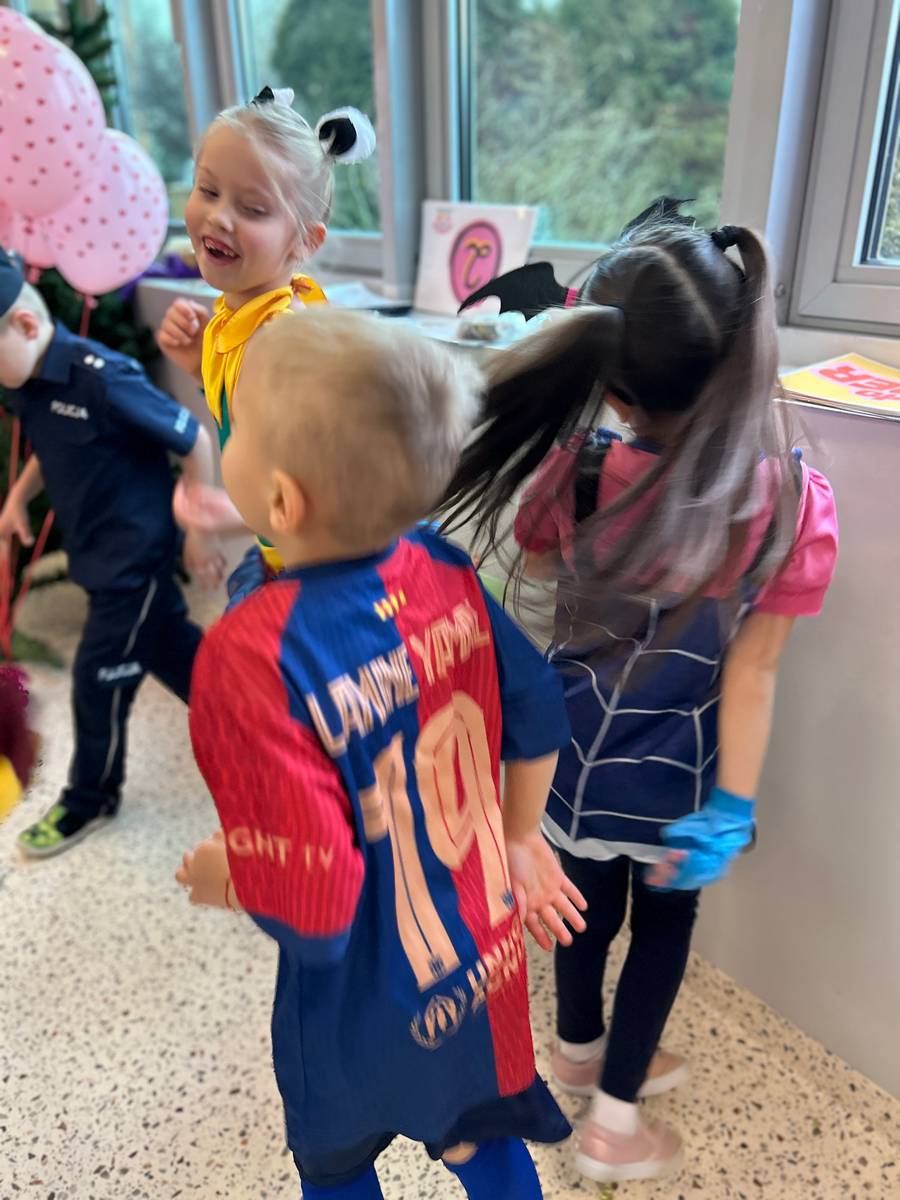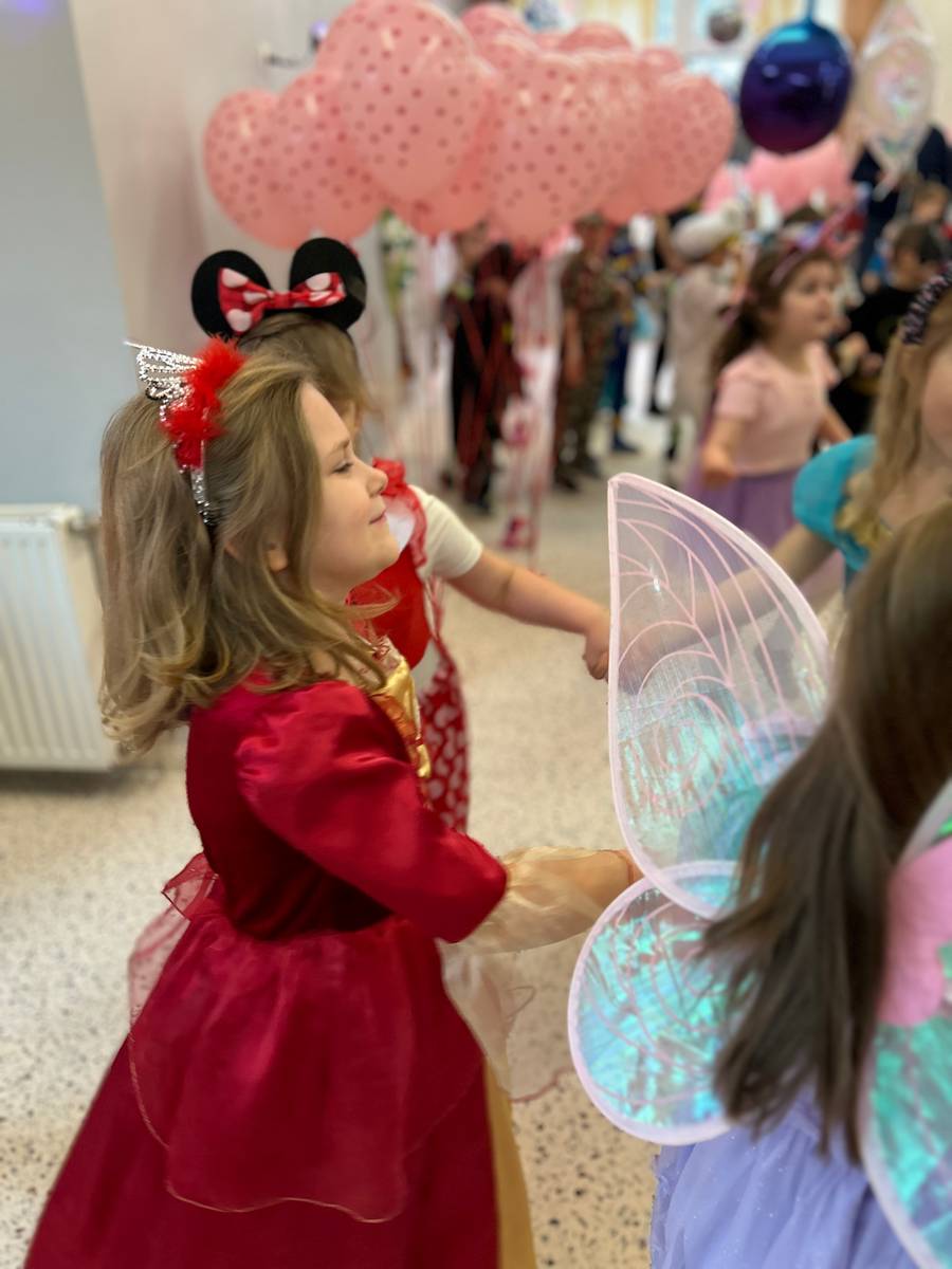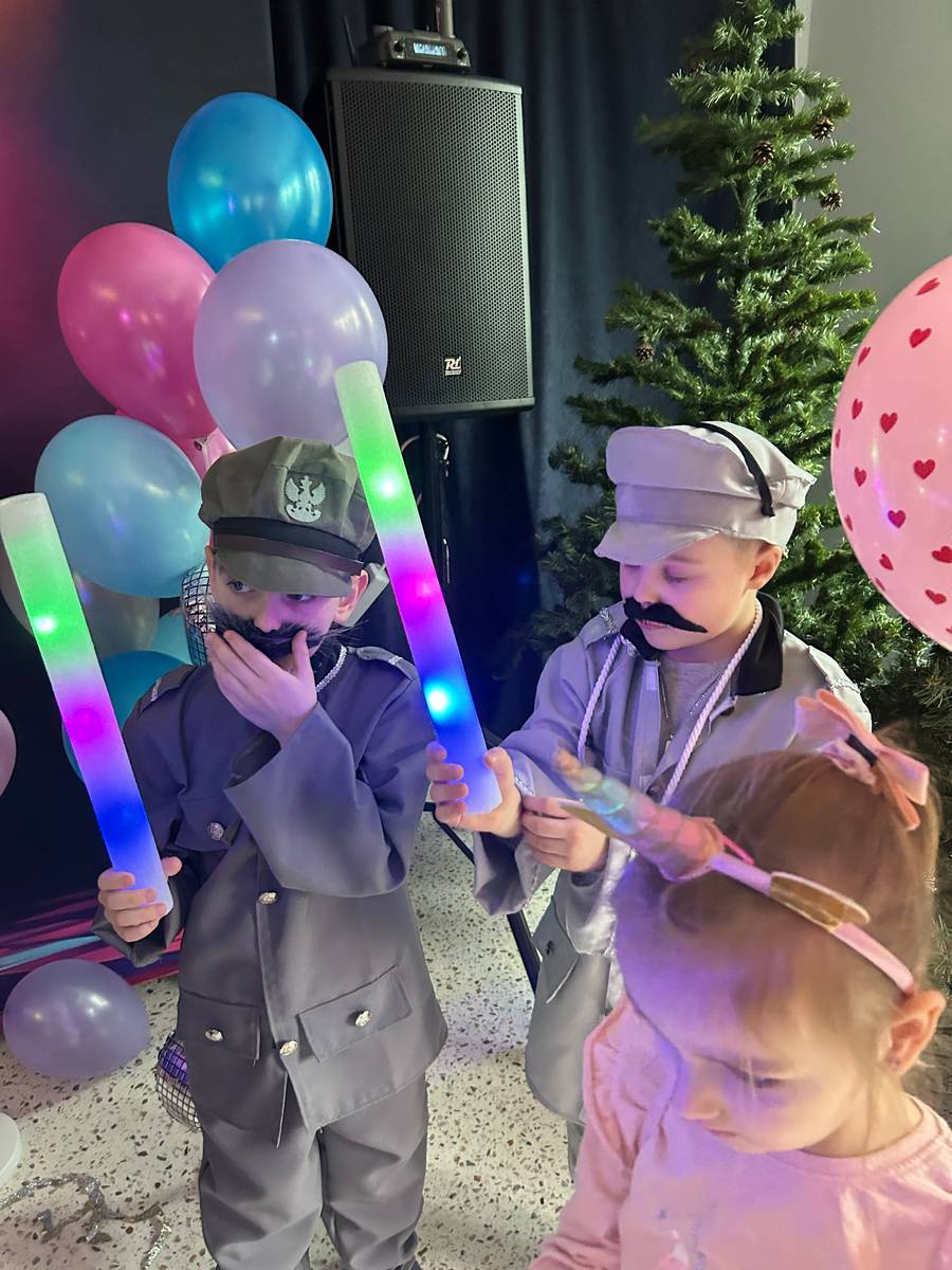 Za nami kolejny wspaniały bal Karnawałowy pełen muzyki, tańca i dziecięcej radości. Nasza sala zamieniła się w roztańczoną krainę wyobraźni. Na parkiecie pojawiło się wiele różnorodnych postaci: wróżki, policjanci, księżniczki, a nawet Józef Piłsudski. Wielobarwne stroje, uśmiechy i dużo energii towarzyszyło dzieciom już od pierwszych dźwięków muzyki aż do ostatniego tańca. Dzieci z ogromnym zaangażowaniem brały udział w zabawach tanecznych, konkursach. Nie zabrakło niezwykłych rekwizytów. Wyjątkową atrakcją okazały się być bańki mydlane, które unosiły się nad parkietem. Był to czas integracji grup, zabawy i dziecięcej radości. Z niecierpliwością będziemy czekali na kolejny bal!