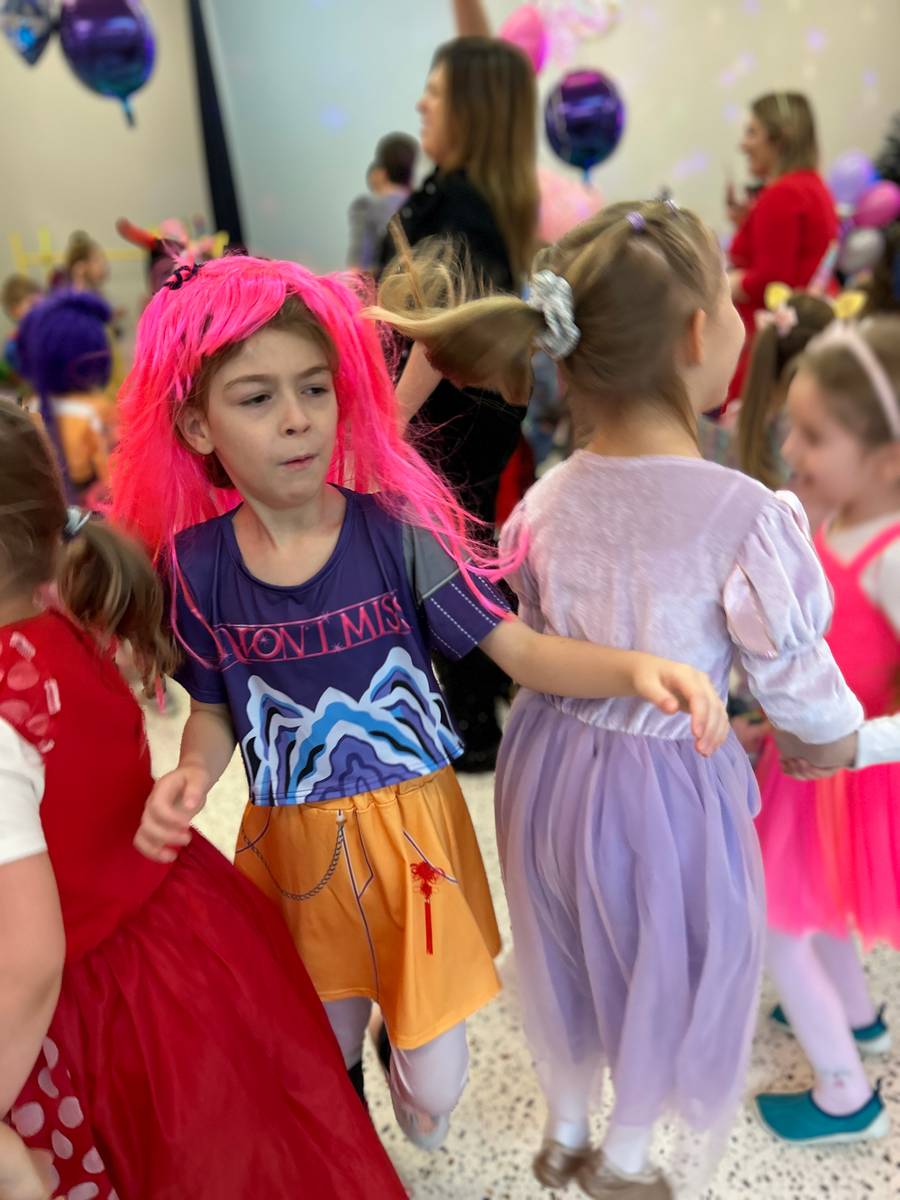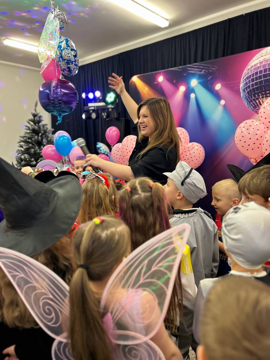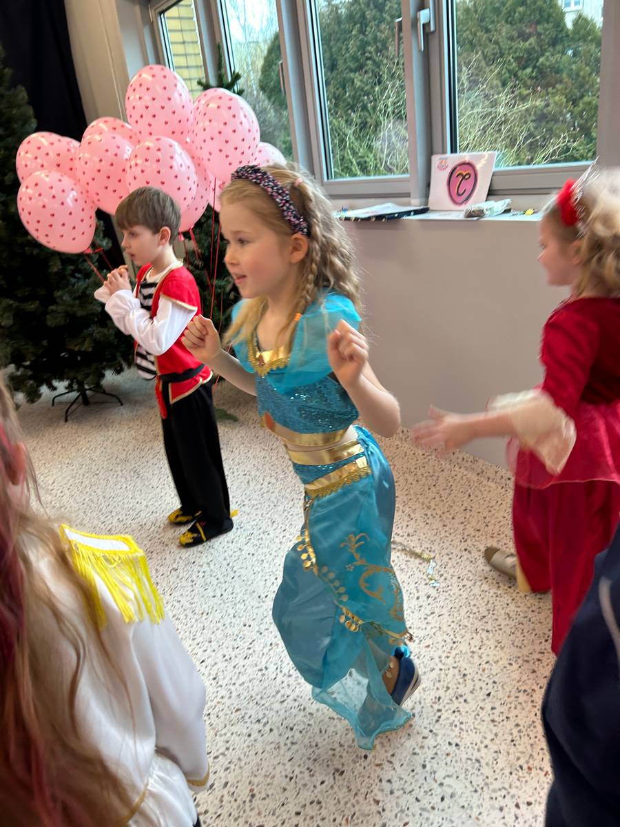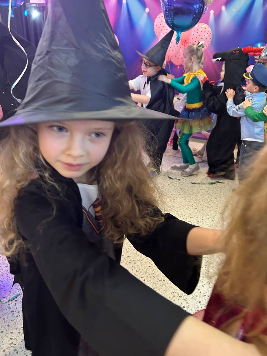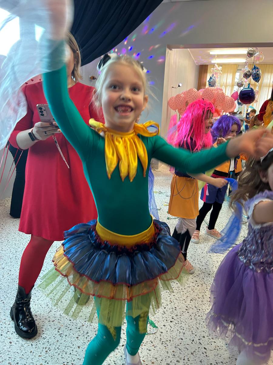 Za nami kolejny wspaniały bal Karnawałowy pełen muzyki, tańca i dziecięcej radości. Nasza sala zamieniła się w roztańczoną krainę wyobraźni. Na parkiecie pojawiło się wiele różnorodnych postaci: wróżki, policjanci, księżniczki, a nawet Józef Piłsudski. Wielobarwne stroje, uśmiechy i dużo energii towarzyszyło dzieciom już od pierwszych dźwięków muzyki aż do ostatniego tańca. Dzieci z ogromnym zaangażowaniem brały udział w zabawach tanecznych, konkursach. Nie zabrakło niezwykłych rekwizytów. Wyjątkową atrakcją okazały się być bańki mydlane, które unosiły się nad parkietem. Był to czas integracji grup, zabawy i dziecięcej radości. Z niecierpliwością będziemy czekali na kolejny bal!