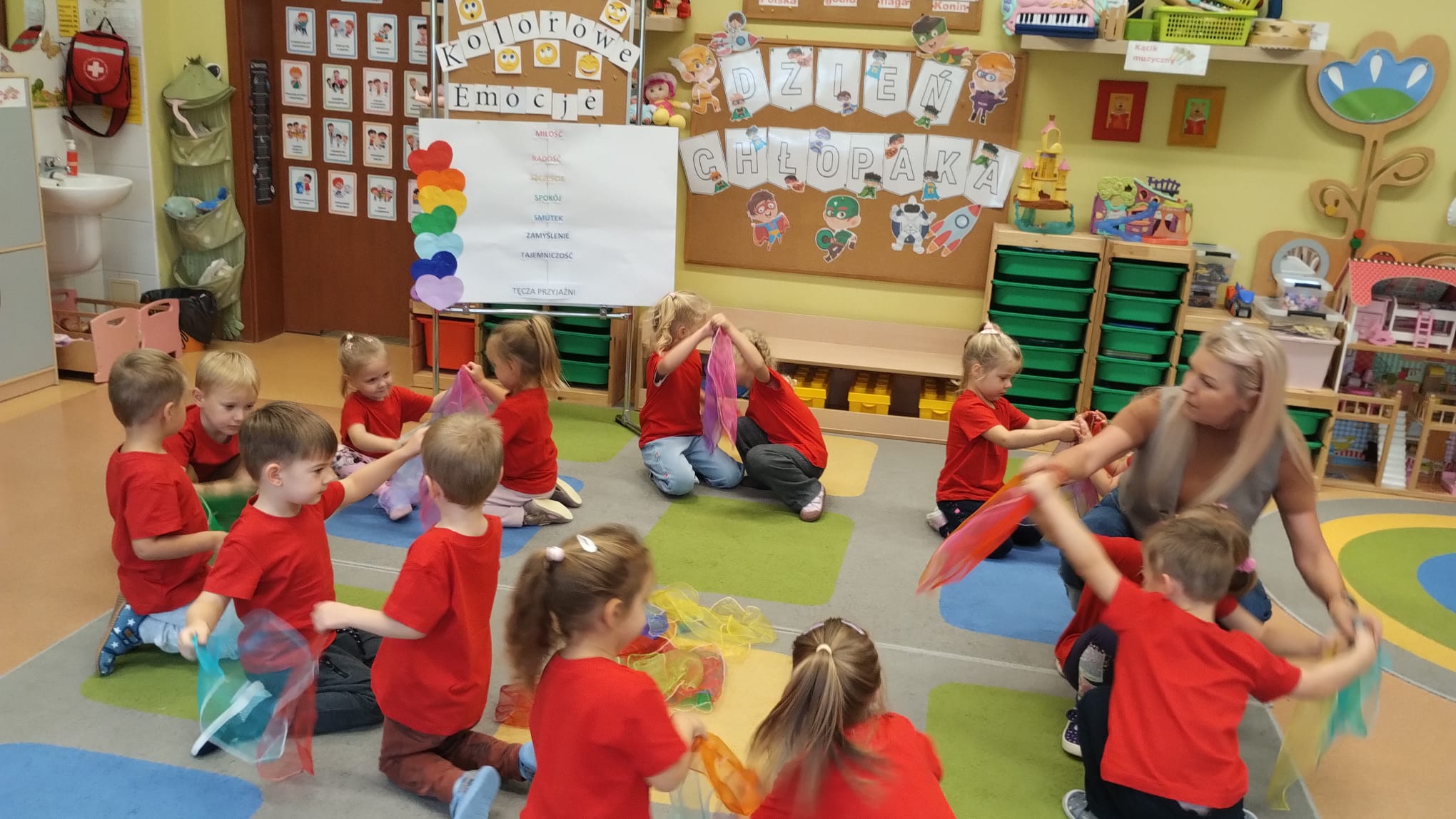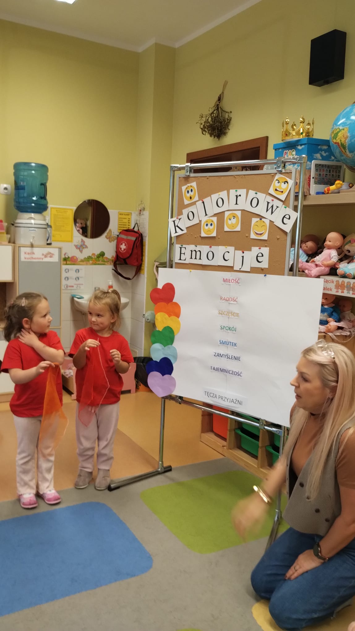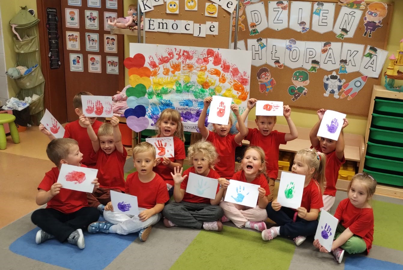 „Przyjaźń to magia, którą tworzymy razem!” Poprzez realizację innowacji „Kolorowe Emocje”, dzieci mają okazję lepiej poznać siebie nawzajem, nauczyć się wyrażania emocji i dbania o relacje z innymi – wszystko w atmosferze pełnej ciepła, zabawy i kolorów. To był dzień pełen pozytywnych wrażeń, serdeczności i prawdziwej przyjaźni, który na długo zostanie w naszej pamięci!