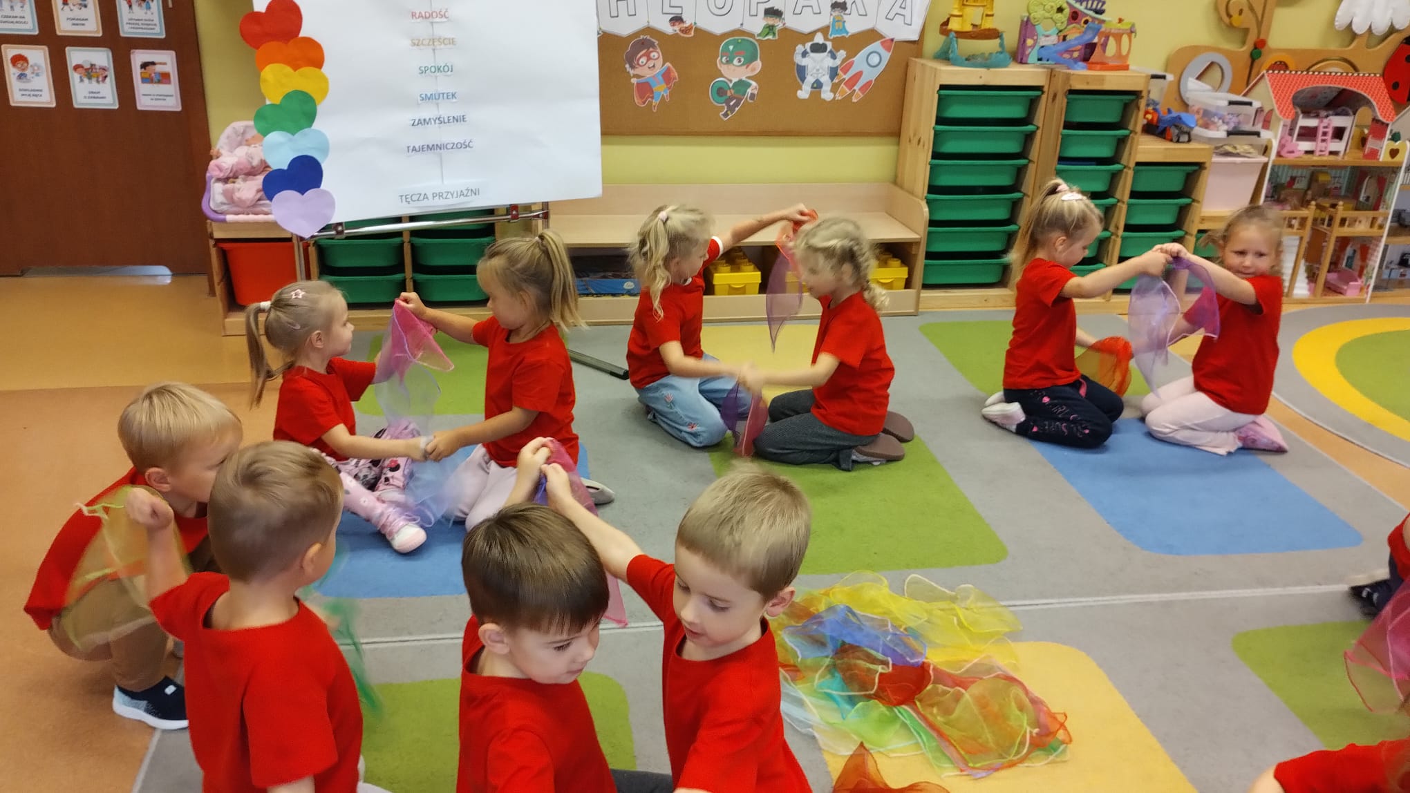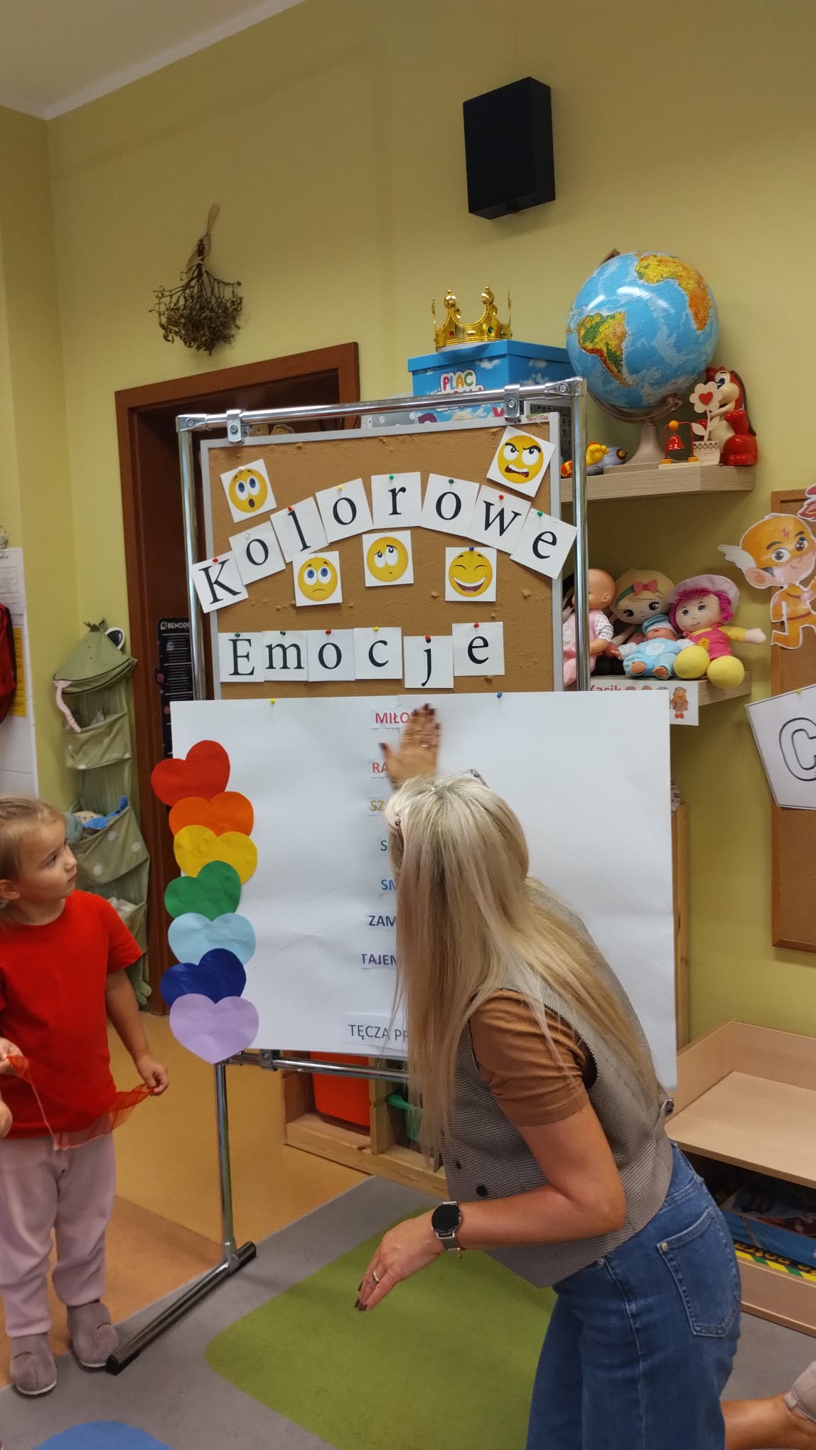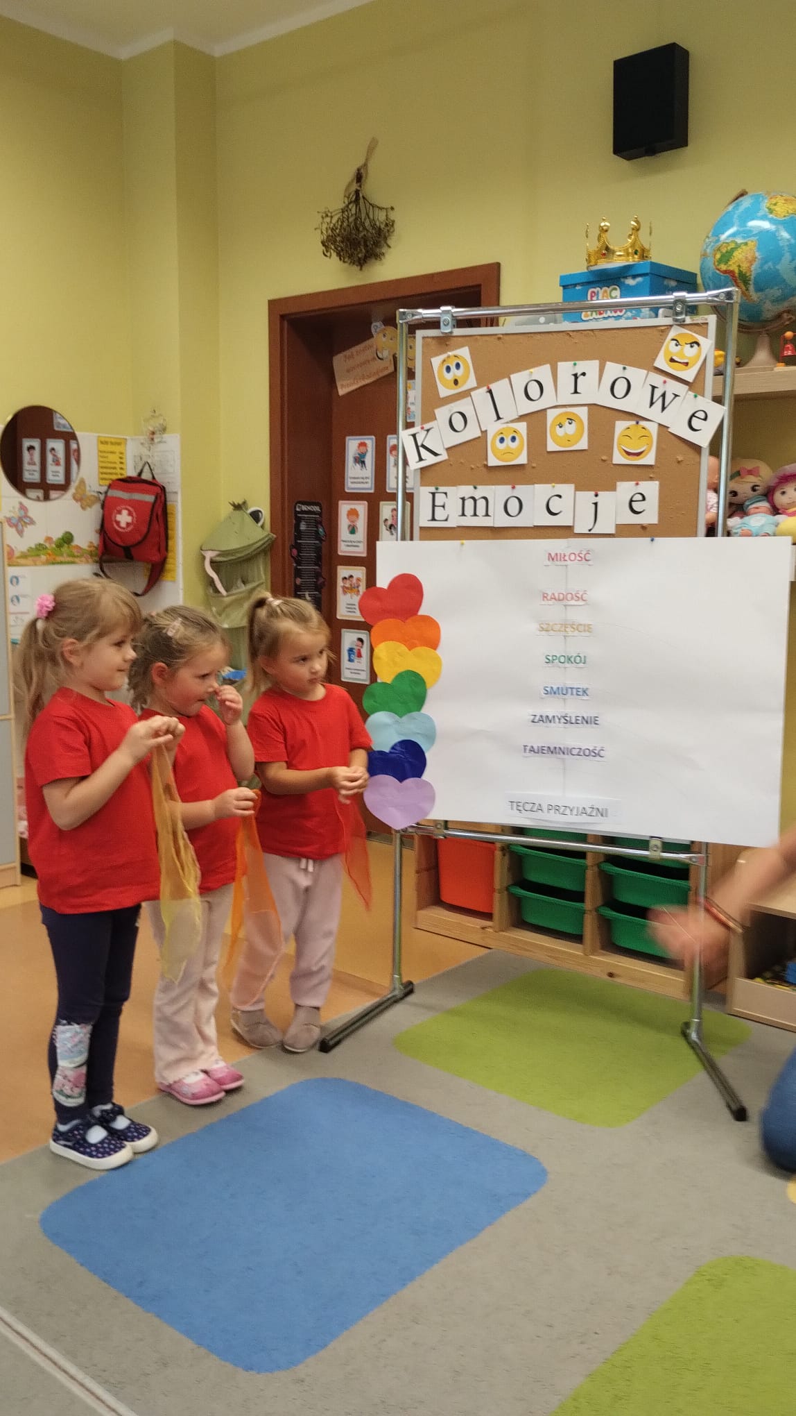 „Przyjaźń to magia, którą tworzymy razem!” Poprzez realizację innowacji „Kolorowe Emocje”, dzieci mają okazję lepiej poznać siebie nawzajem, nauczyć się wyrażania emocji i dbania o relacje z innymi – wszystko w atmosferze pełnej ciepła, zabawy i kolorów. To był dzień pełen pozytywnych wrażeń, serdeczności i prawdziwej przyjaźni, który na długo zostanie w naszej pamięci!