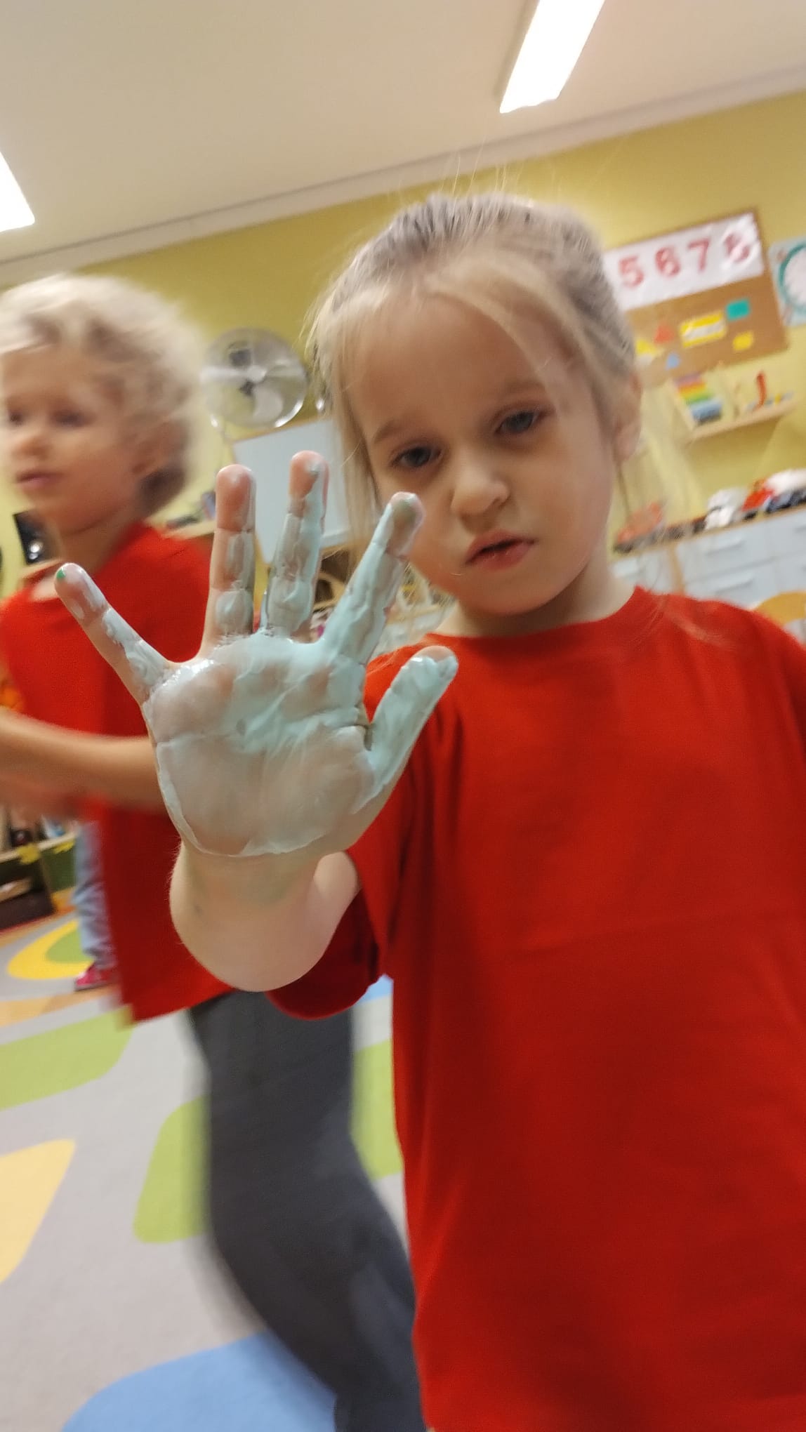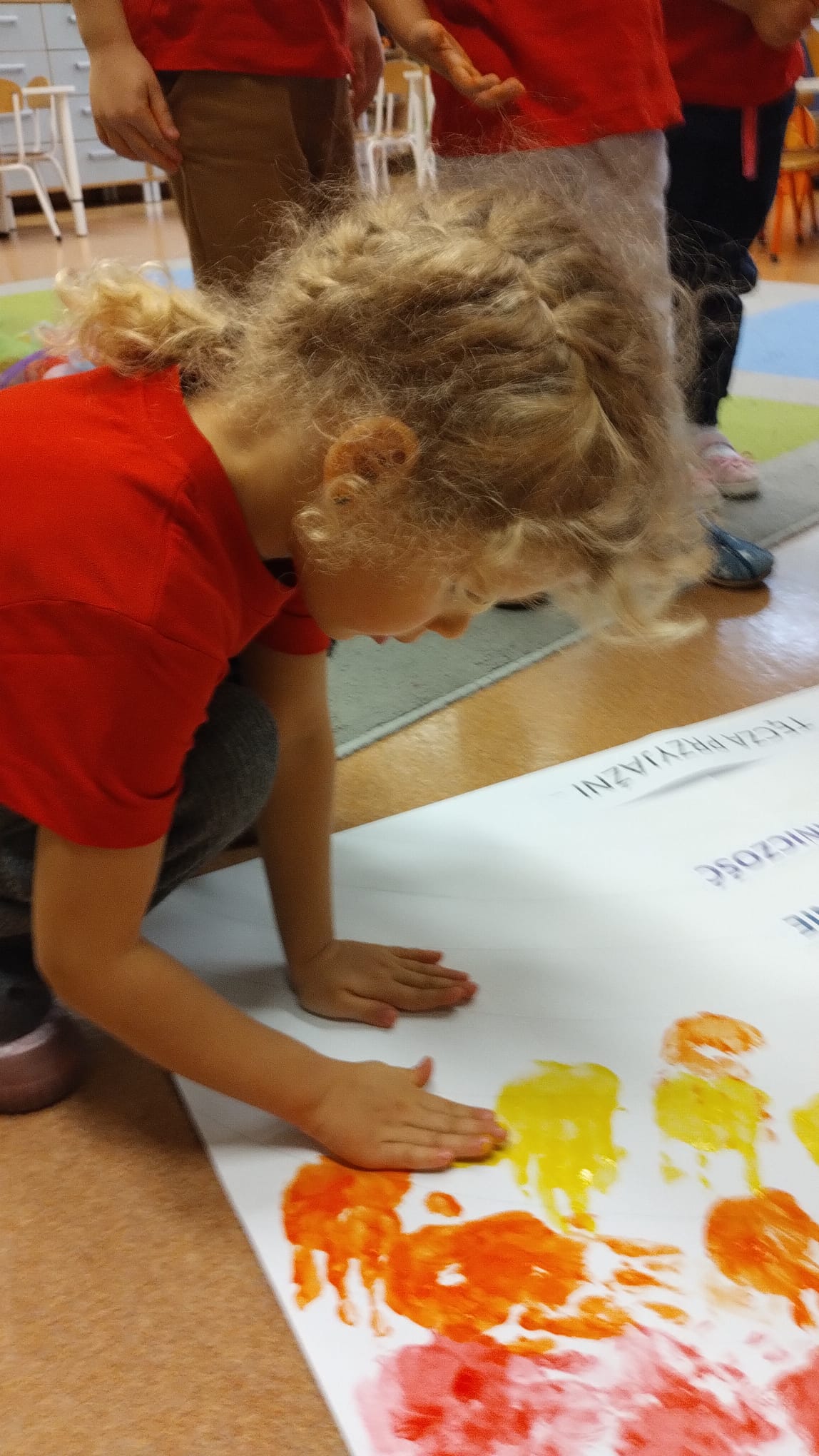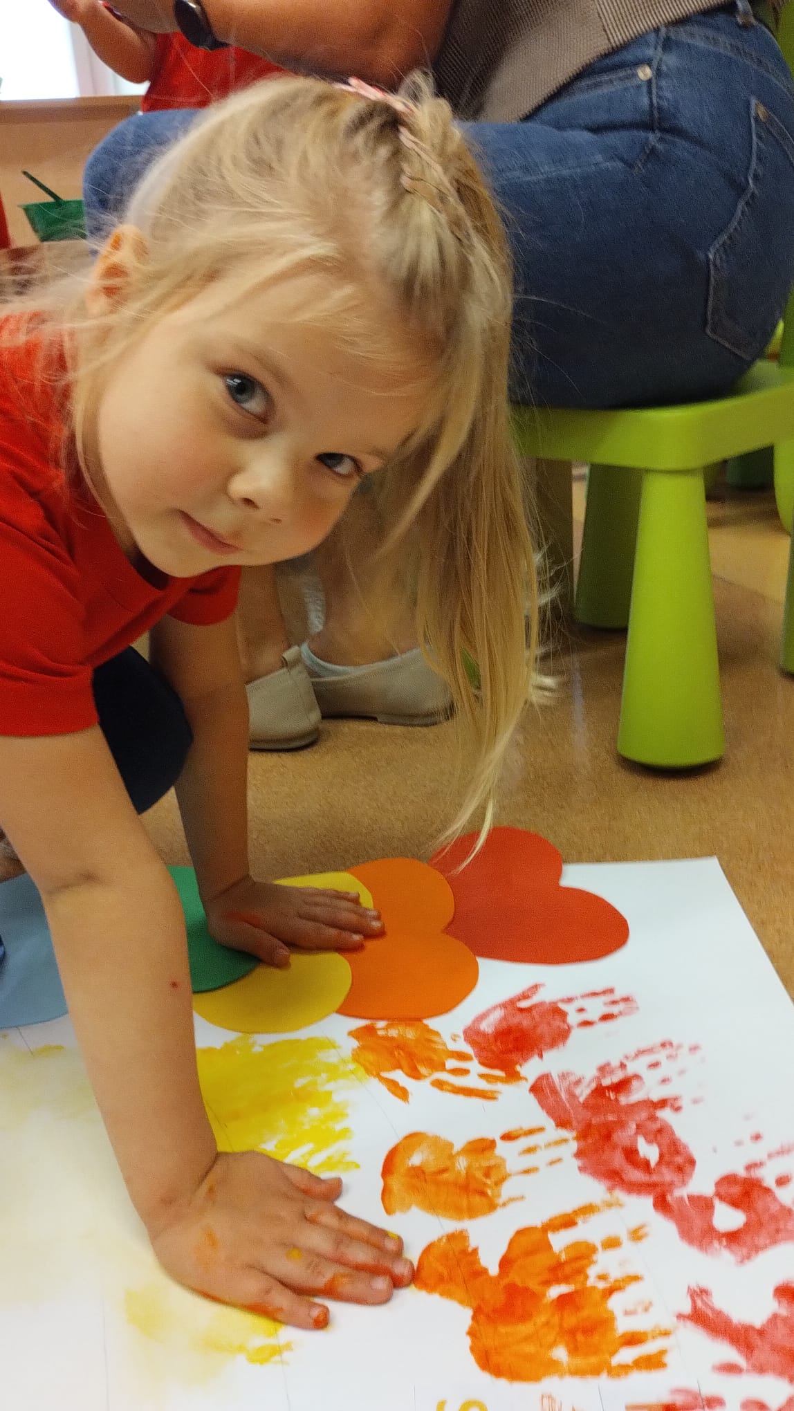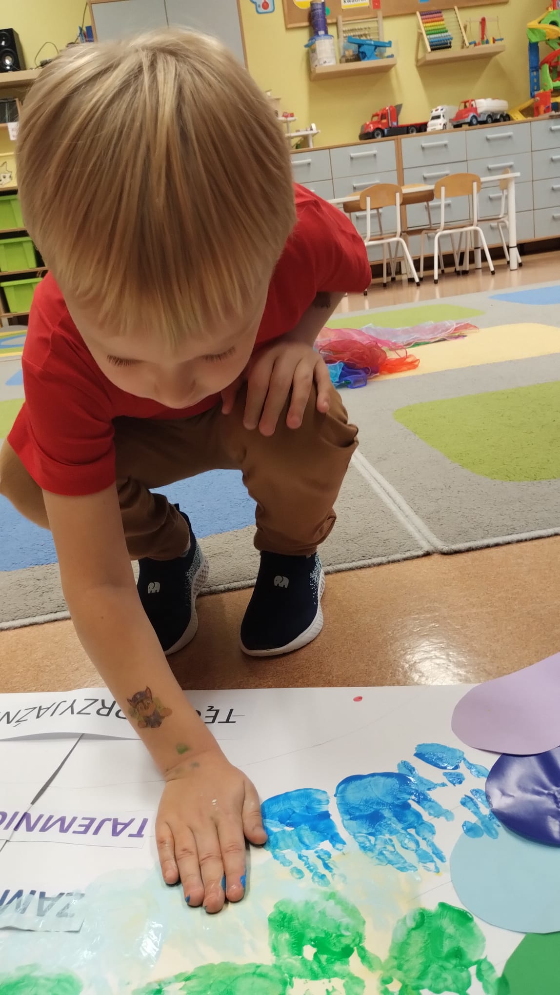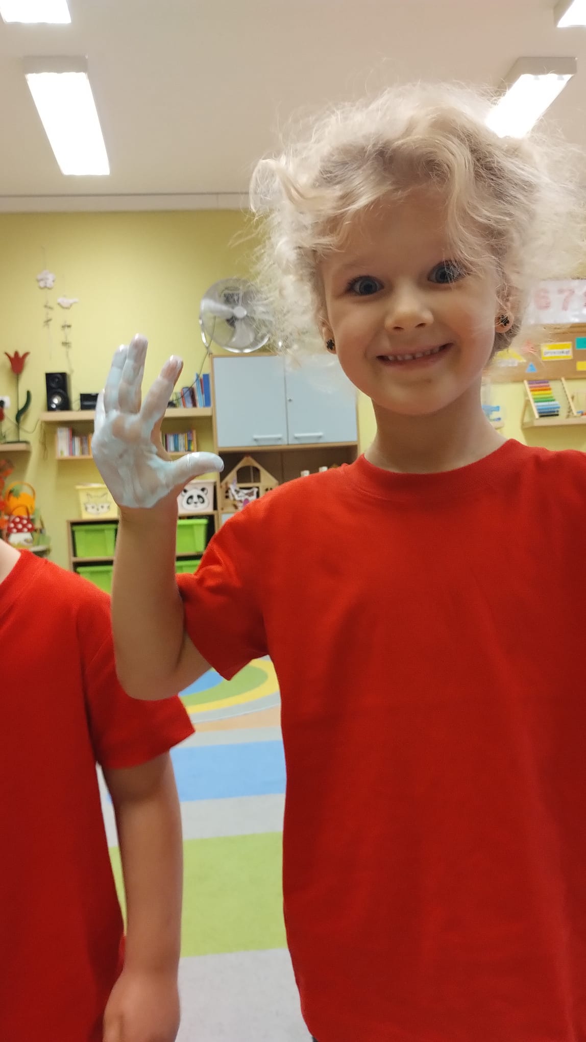 Kulminacyjnym punktem zajęć było wspólne tworzenie „Tęczy Przyjaźni”. Każde dziecko zamoczyło swoją dłoń w kolorowej farbie i odciskało ją na dużym arkuszu papieru, tworząc łuki tęczy. Każdy kolor symbolizował inną emocję – radość, spokój, miłość, wdzięczność , życzliwość i tajemniczość. Wspólna praca była okazją do rozmów, śmiechu i dzielenia się dobrymi emocjami .W ten sposób powstało wyjątkowe dzieło, które nie tylko pięknie ozdobiło naszą salę, ale przede wszystkim było wyrazem wspólnoty i bliskości.