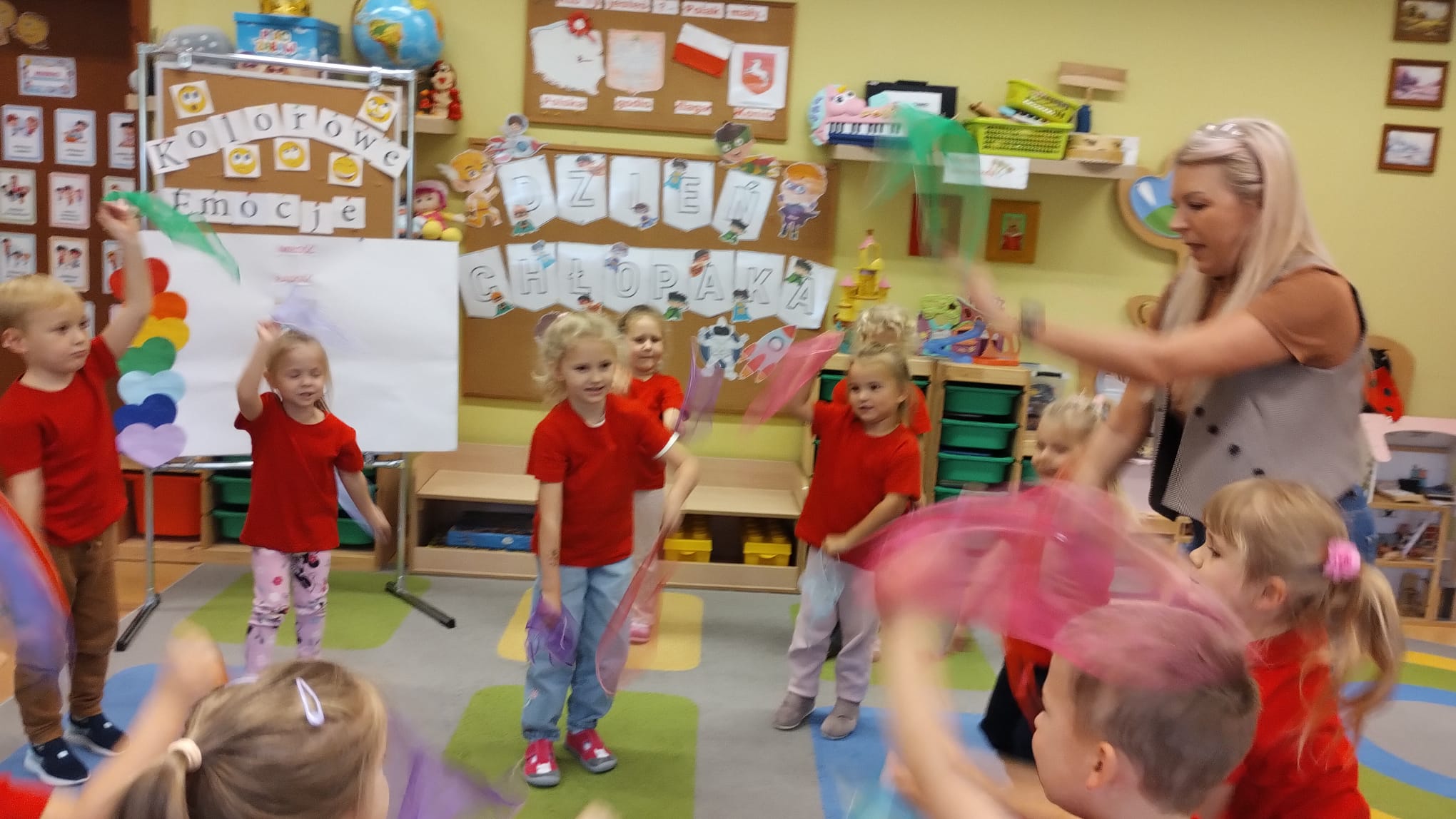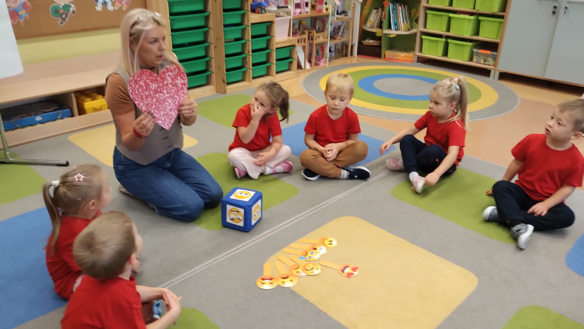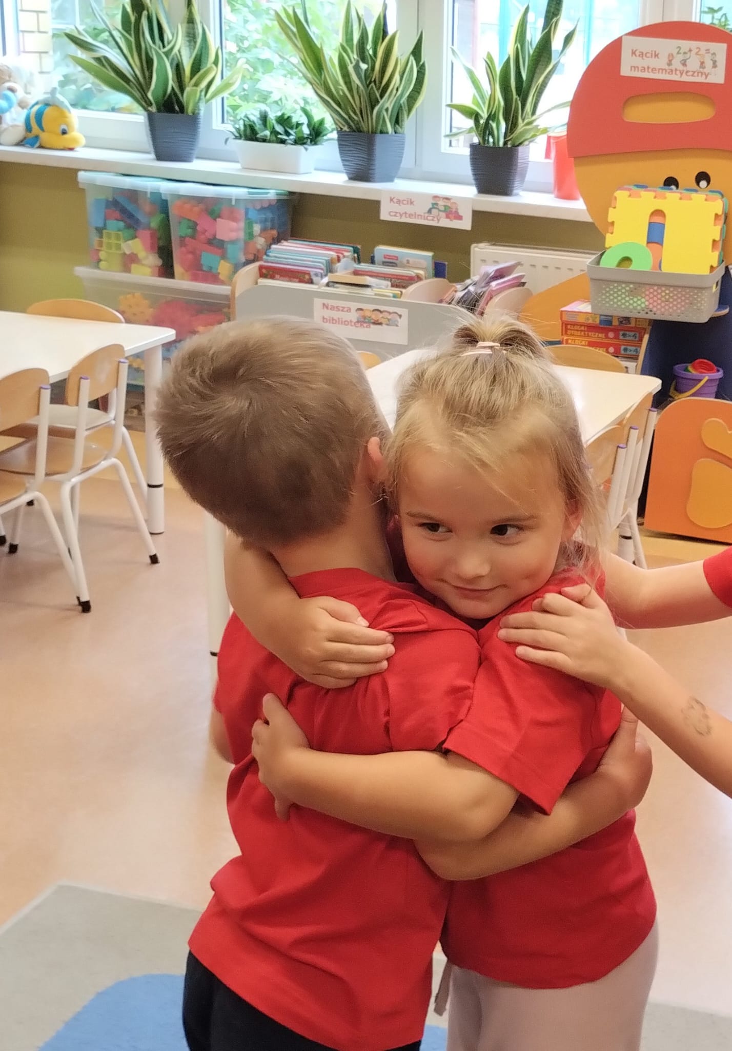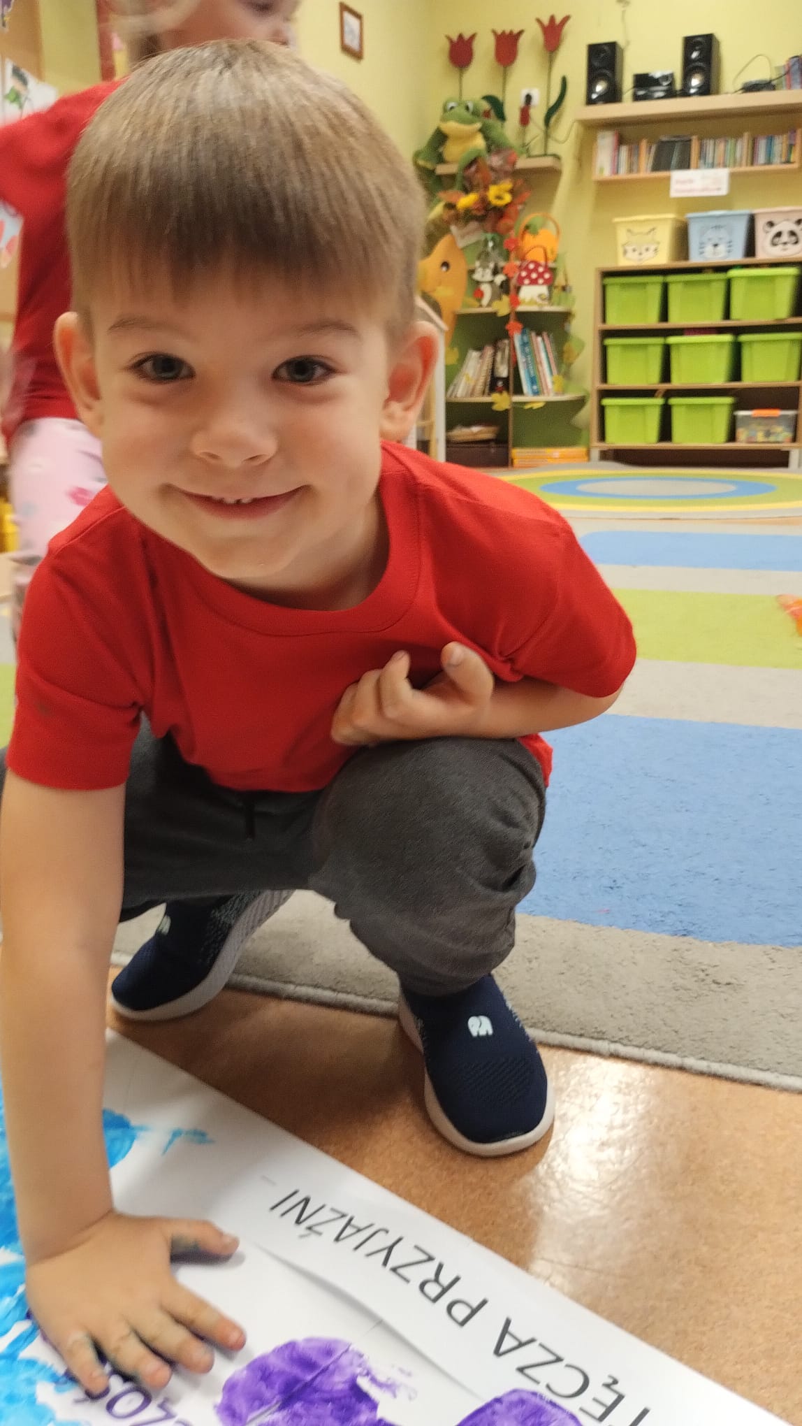 30 września w grupie czterolatków świętowaliśmy Dzień Chłopaka w wyjątkowy sposób – łącząc zabawę z realizacją innowacji pedagogicznej „Kolorowe Emocje”, a także w ramach Tygodnia Budowania Relacji. Dzień rozpoczęliśmy od rozmów o przyjaźni i wzajemnym szacunku. Dzieci poznały różne emocje i uczyły się je rozpoznawać oraz wyrażać – zarówno słowami, jak i gestem czy mimiką. Pomogły nam w tym kolorowe ilustracje oraz zabawy dramowe. Szczególną uwagę poświęciliśmy radości, wdzięczności i życzliwości – emocjom, które towarzyszyły nam przez cały dzień. W ramach Tygodnia Budowania Relacji podejmowaliśmy różnorodne działania mające na celu integrację grupy, wzmacnianie więzi oraz rozwijanie umiejętności społecznych. Nie zabrakło wspólnych zabaw ruchowych, tańców oraz gier zespołowych, które sprzyjały współpracy, empatii i wzajemnemu zrozumieniu. Dzieci spontanicznie dzieliły się swoimi doświadczeniami – mówiły, czym jest przyjaźń, jakie emocje jej towarzyszą i jak można być dobrym przyjacielem, kiedy czują się szczęśliwe, kto im pomaga w trudnych chwilach i dlaczego lubią swoich kolegów i koleżanki.