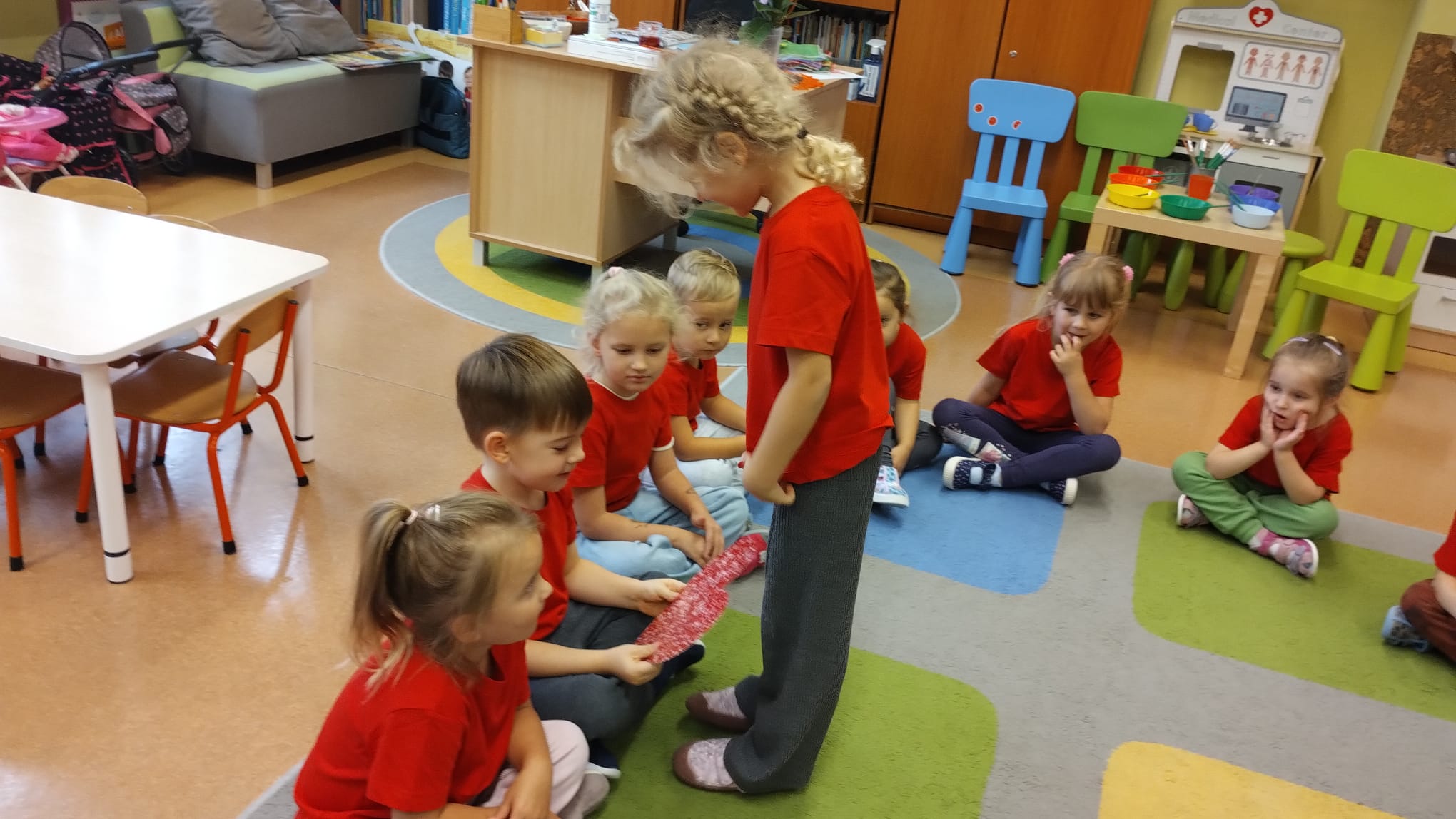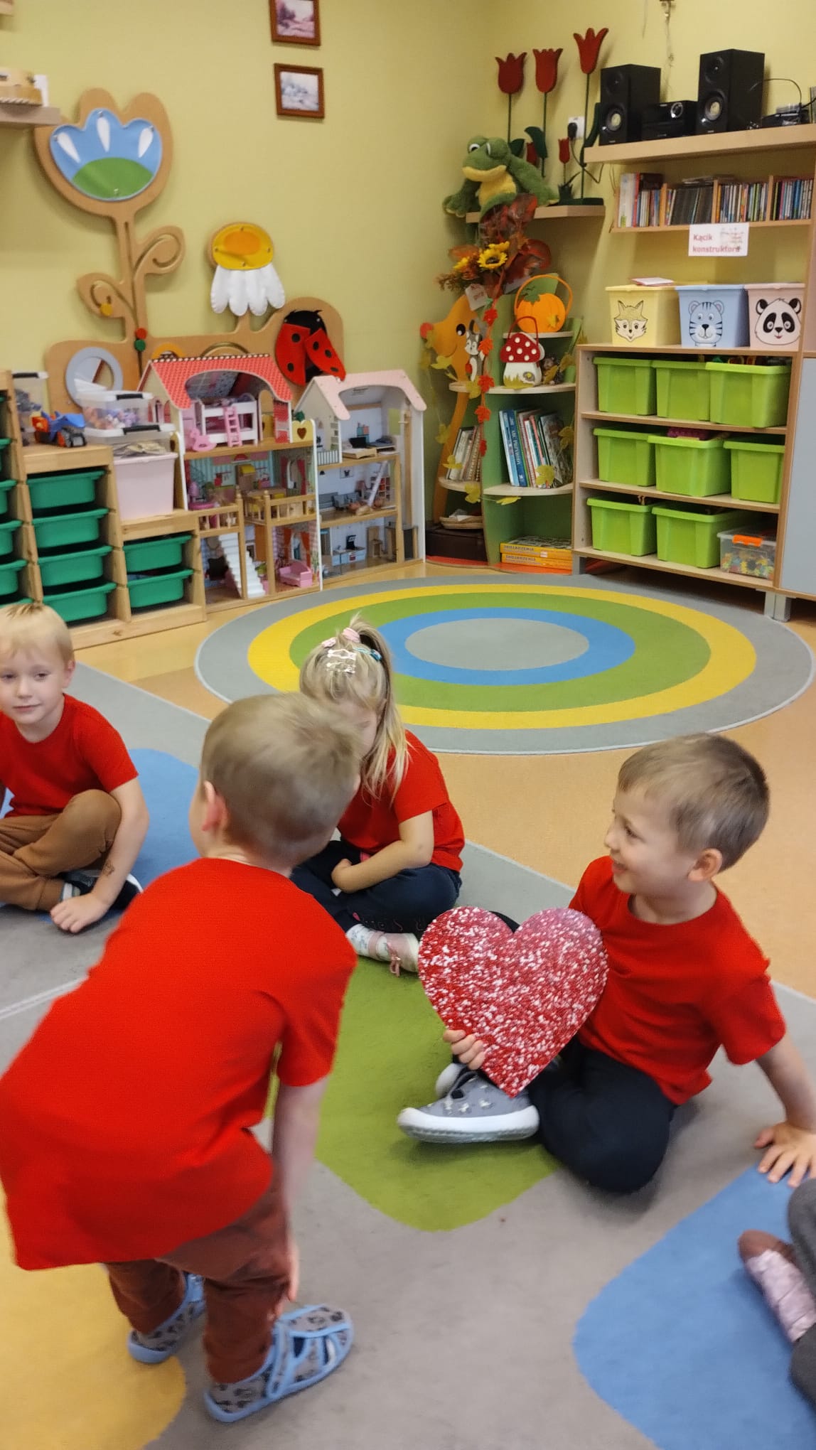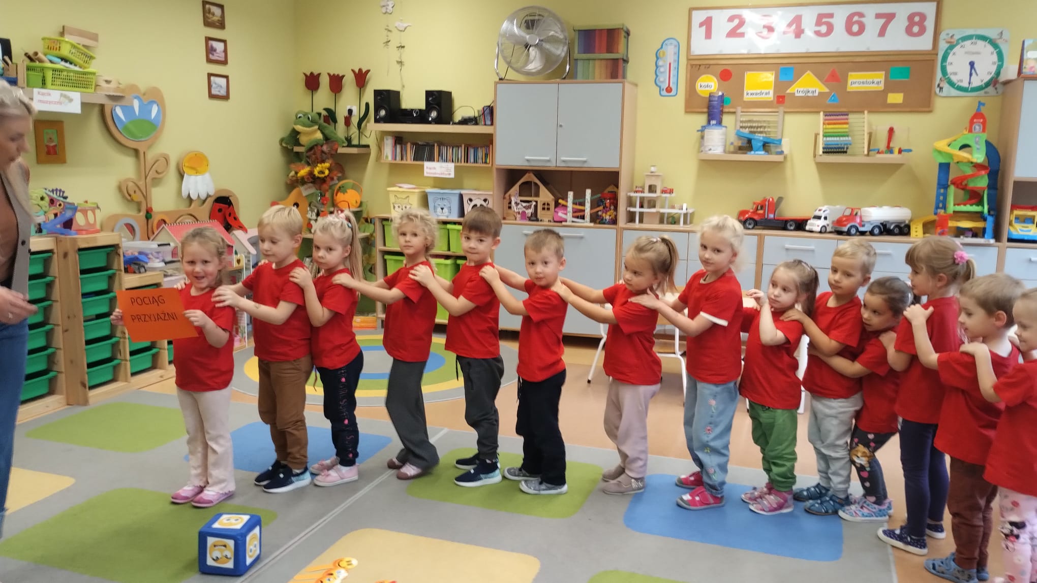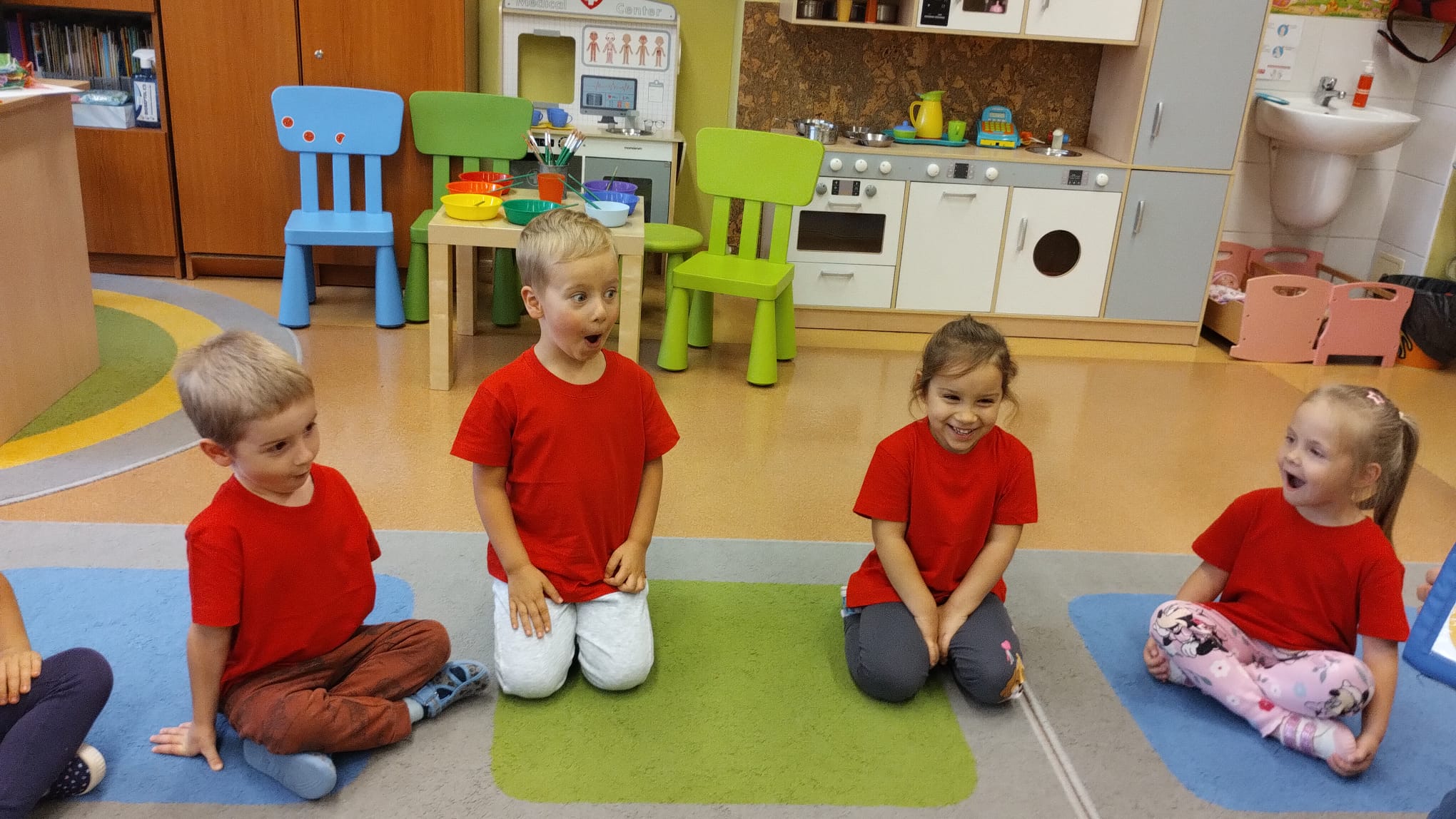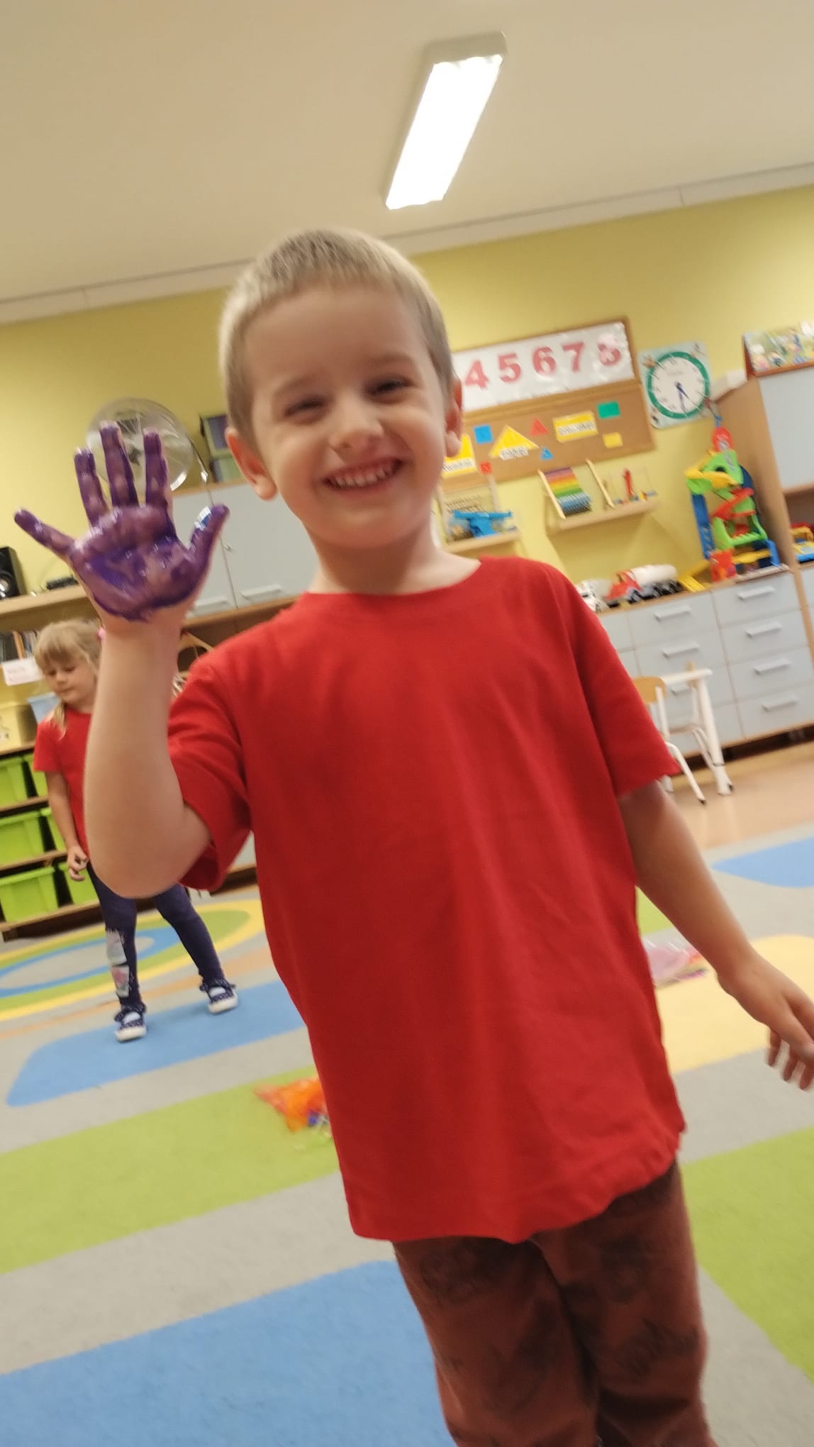 30 września w grupie czterolatków świętowaliśmy Dzień Chłopaka w wyjątkowy sposób – łącząc zabawę z realizacją innowacji pedagogicznej „Kolorowe Emocje”, a także w ramach Tygodnia Budowania Relacji. Dzień rozpoczęliśmy od rozmów o przyjaźni i wzajemnym szacunku. Dzieci poznały różne emocje i uczyły się je rozpoznawać oraz wyrażać – zarówno słowami, jak i gestem czy mimiką. Pomogły nam w tym kolorowe ilustracje oraz zabawy dramowe. Szczególną uwagę poświęciliśmy radości, wdzięczności i życzliwości – emocjom, które towarzyszyły nam przez cały dzień. W ramach Tygodnia Budowania Relacji podejmowaliśmy różnorodne działania mające na celu integrację grupy, wzmacnianie więzi oraz rozwijanie umiejętności społecznych. Nie zabrakło wspólnych zabaw ruchowych, tańców oraz gier zespołowych, które sprzyjały współpracy, empatii i wzajemnemu zrozumieniu. Dzieci spontanicznie dzieliły się swoimi doświadczeniami – mówiły, czym jest przyjaźń, jakie emocje jej towarzyszą i jak można być dobrym przyjacielem, kiedy czują się szczęśliwe, kto im pomaga w trudnych chwilach i dlaczego lubią swoich kolegów i koleżanki.