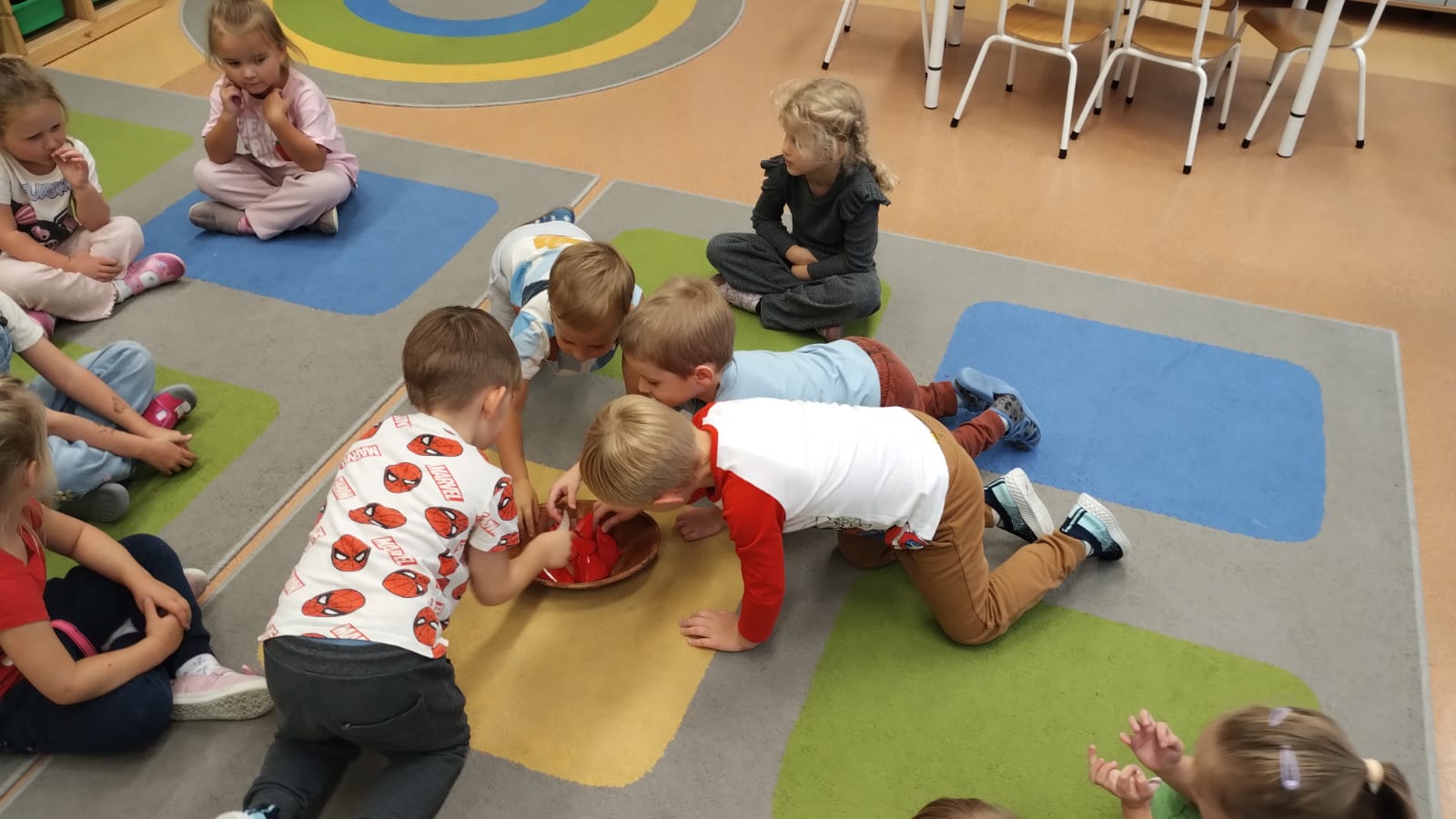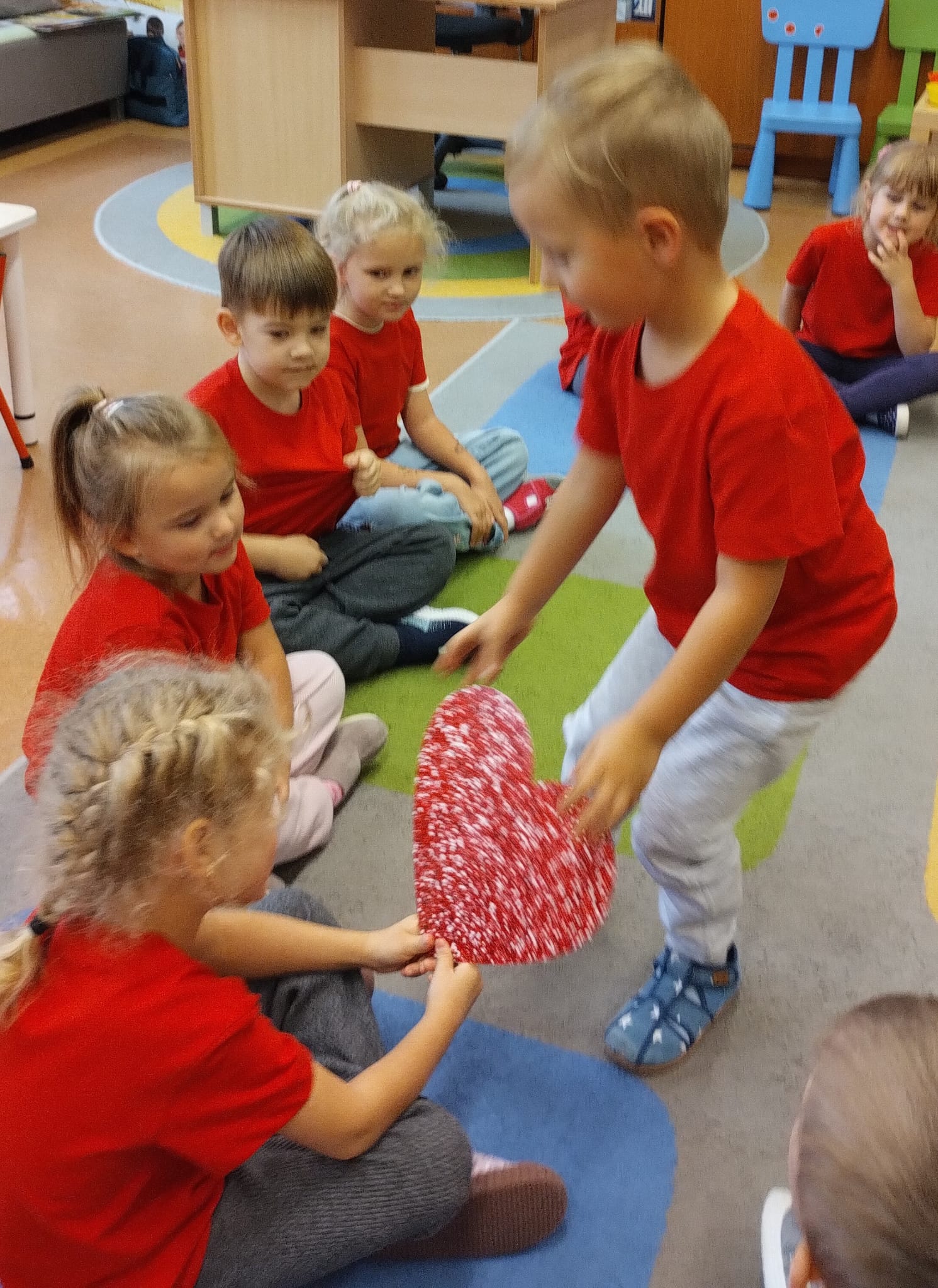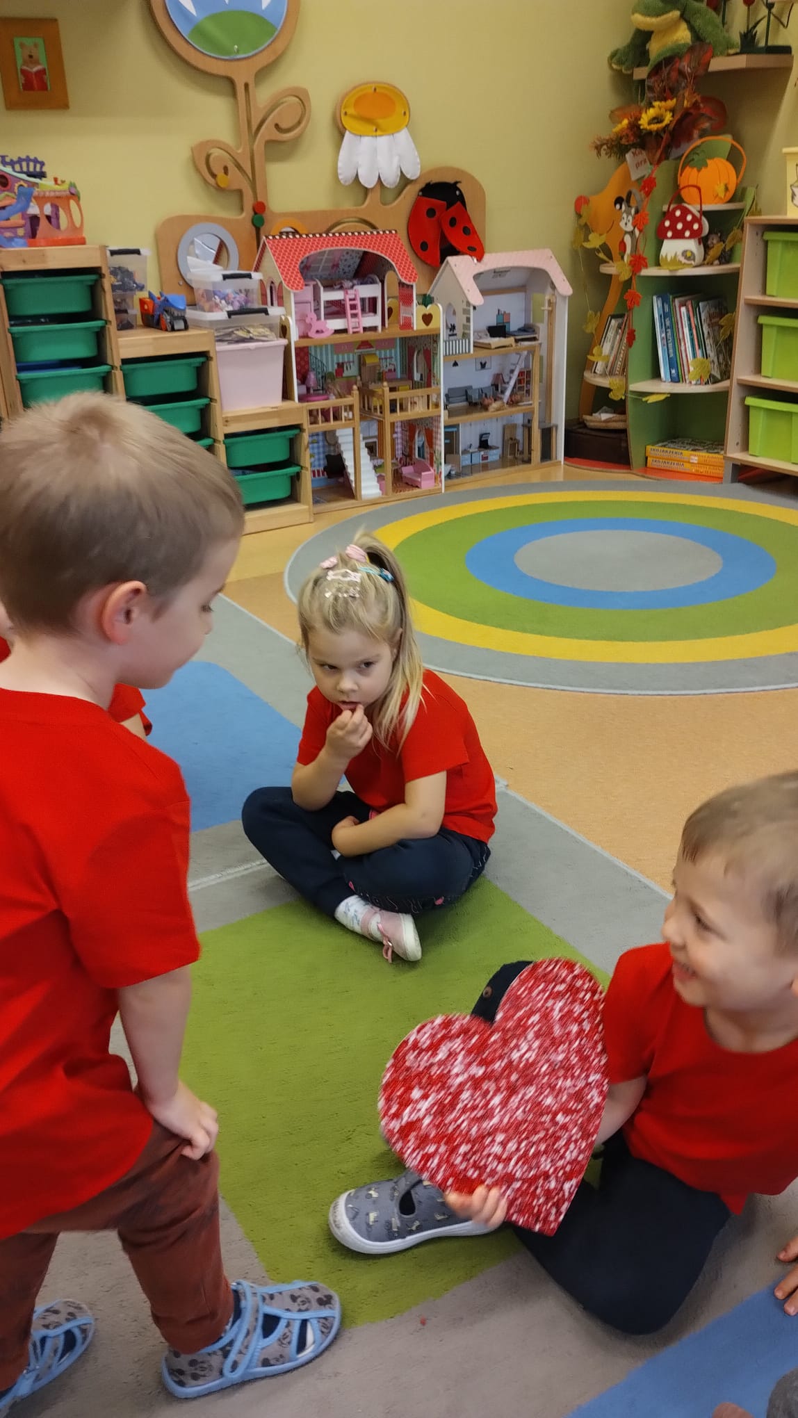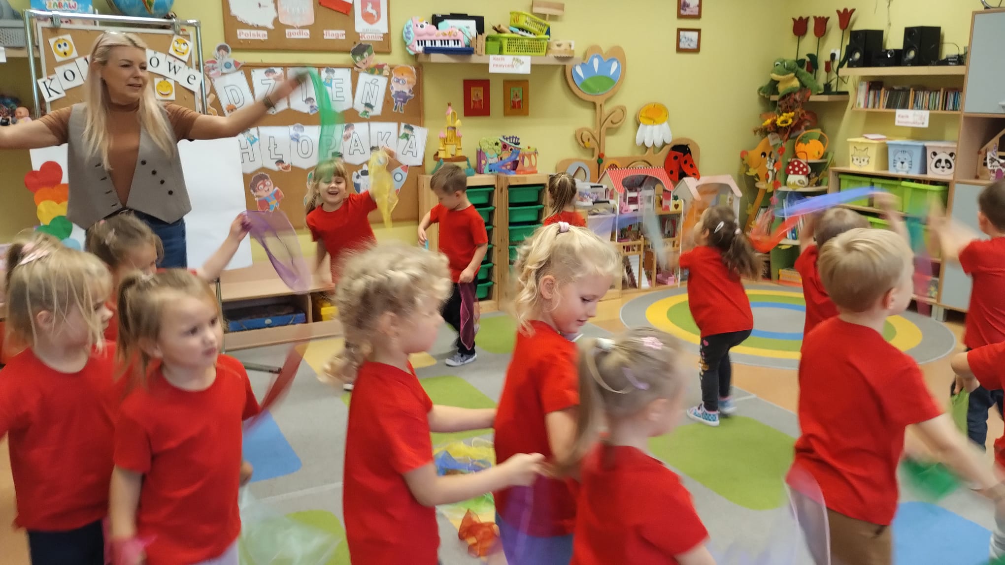 30 września w grupie czterolatków świętowaliśmy Dzień Chłopaka w wyjątkowy sposób – łącząc zabawę z realizacją innowacji pedagogicznej „Kolorowe Emocje”, a także w ramach Tygodnia Budowania Relacji. Dzień rozpoczęliśmy od rozmów o przyjaźni i wzajemnym szacunku. Dzieci poznały różne emocje i uczyły się je rozpoznawać oraz wyrażać – zarówno słowami, jak i gestem czy mimiką. Pomogły nam w tym kolorowe ilustracje oraz zabawy dramowe. Szczególną uwagę poświęciliśmy radości, wdzięczności i życzliwości – emocjom, które towarzyszyły nam przez cały dzień. W ramach Tygodnia Budowania Relacji podejmowaliśmy różnorodne działania mające na celu integrację grupy, wzmacnianie więzi oraz rozwijanie umiejętności społecznych. Nie zabrakło wspólnych zabaw ruchowych, tańców oraz gier zespołowych, które sprzyjały współpracy, empatii i wzajemnemu zrozumieniu. Dzieci spontanicznie dzieliły się swoimi doświadczeniami – mówiły, czym jest przyjaźń, jakie emocje jej towarzyszą i jak można być dobrym przyjacielem, kiedy czują się szczęśliwe, kto im pomaga w trudnych chwilach i dlaczego lubią swoich kolegów i koleżanki.