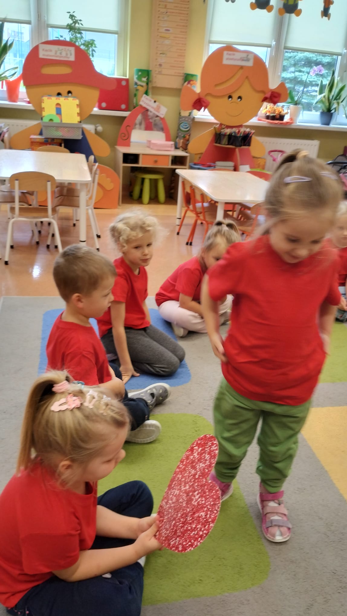 Zajęcia zakończyliśmy w kręgu – każde dziecko mówiło, komu chciałoby dziś podziękować za miły gest lub wsparcie , zabawą ruchową przy muzyce i wspólnym okrzykiem: