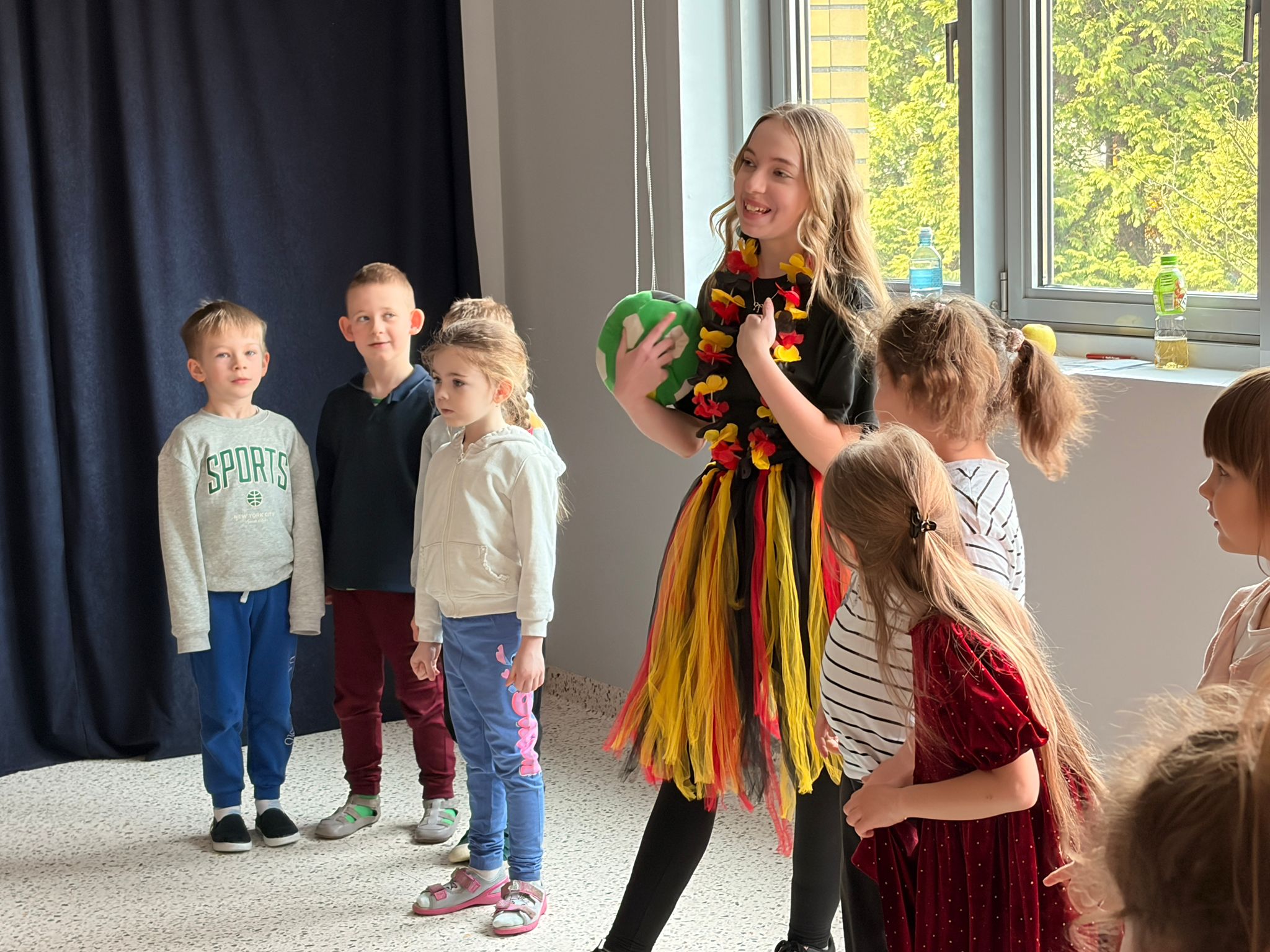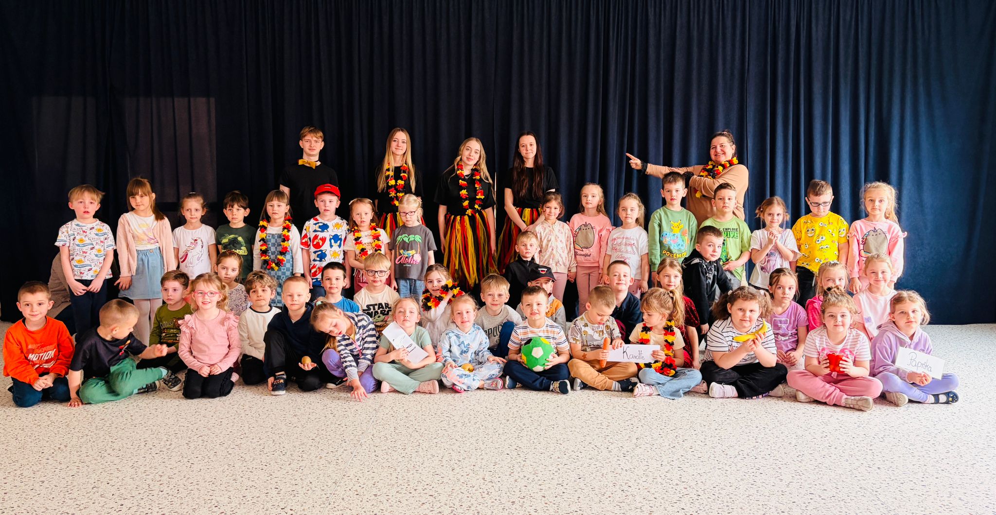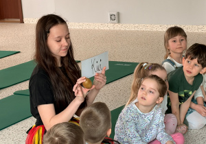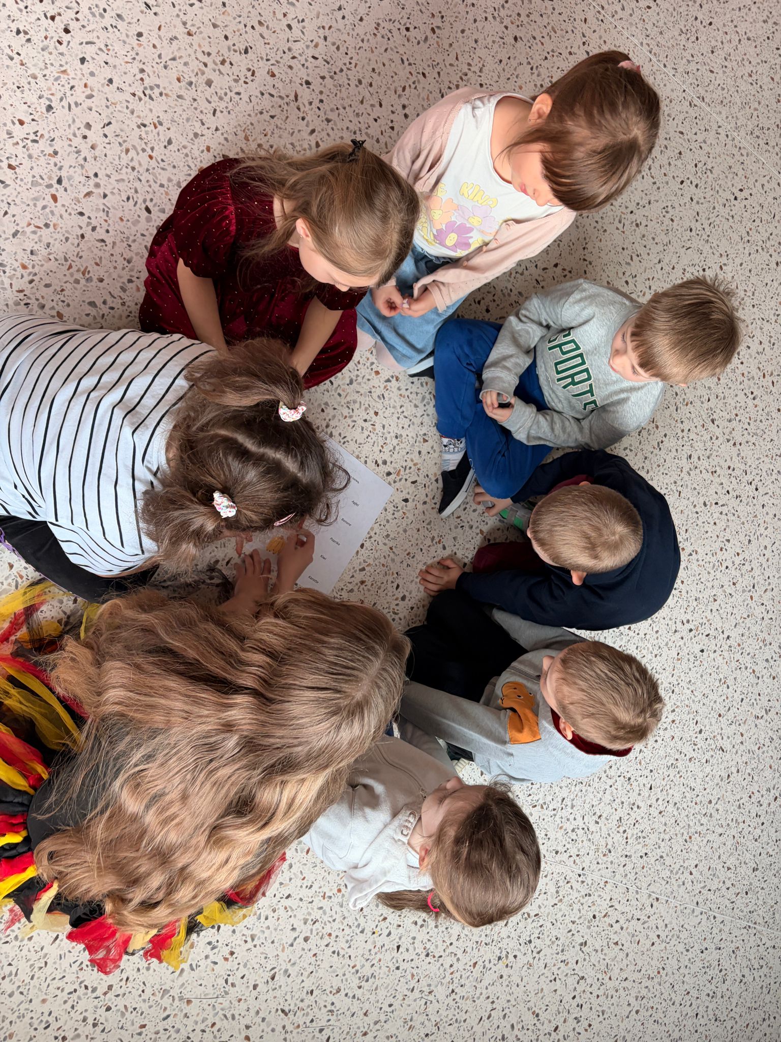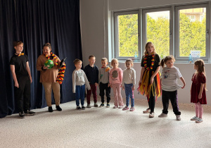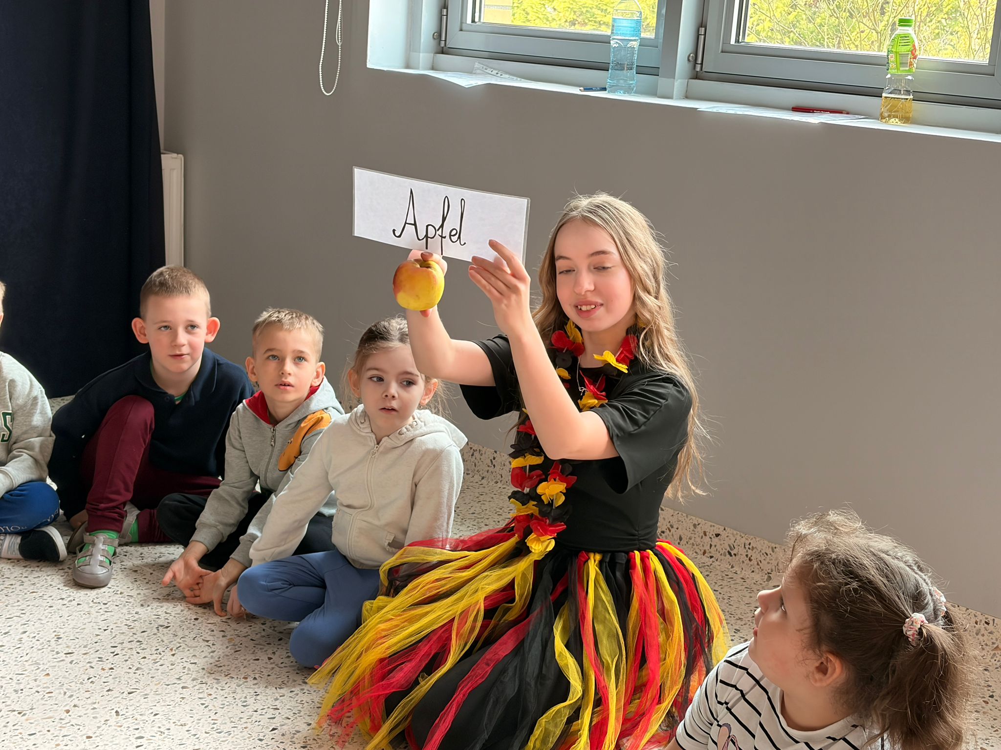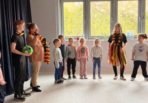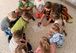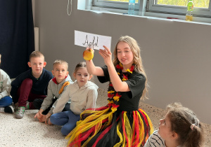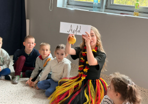 We wtorek 24 marca przedszkolaki z gr. XI i XII miały wyjątkową okazję zanurzyć się na chwilę w dość mało znanym dotychczas dla dzieci języku: języku niemieckim. A to za sprawą Natalii, Nicoli, Hani, Darii i Filipa J. z klasy 8c, którzy pod opieką Pani Katarzyny Steczyńskiej realizowali klasowy projekt z języka niemieckiego: „Uczniowie uczą uczniów”. Uczniowie SP1 wcielili się w rolę nauczycieli i z ogromnym zaangażowaniem prowadzili zajęcia dla najmłodszych. Przedszkolaki uczyły się liczyć, poznawały nazwy warzyw i owoców, a także wspólnie grały w memory, tańczyły i rapowały .