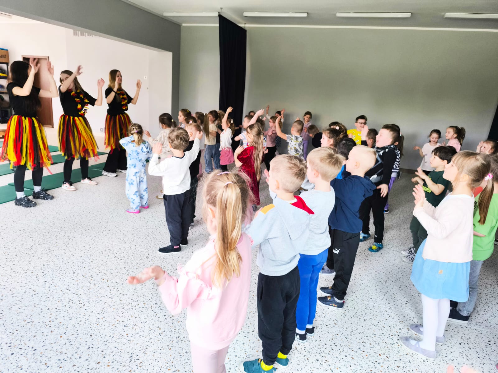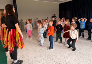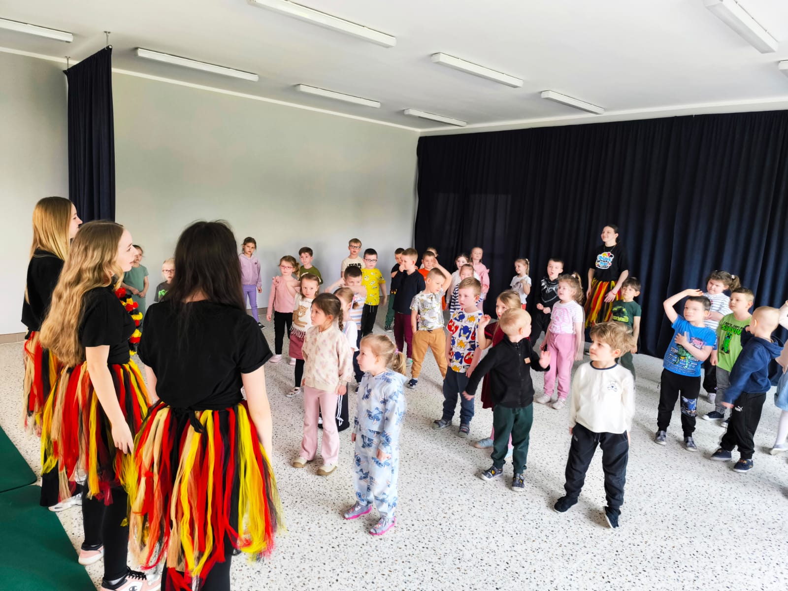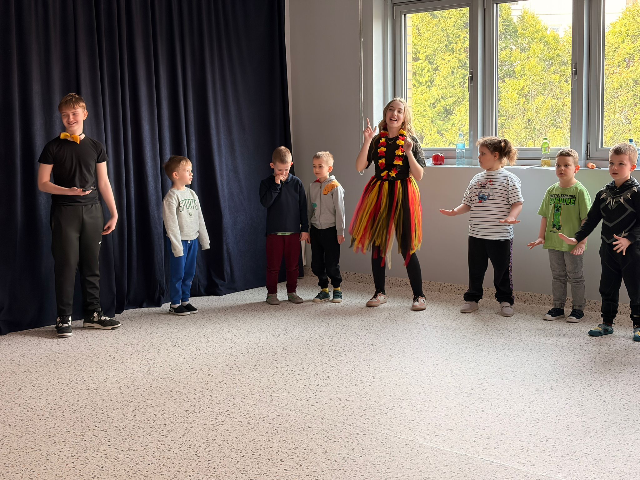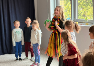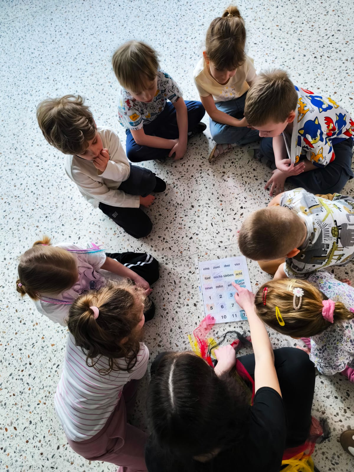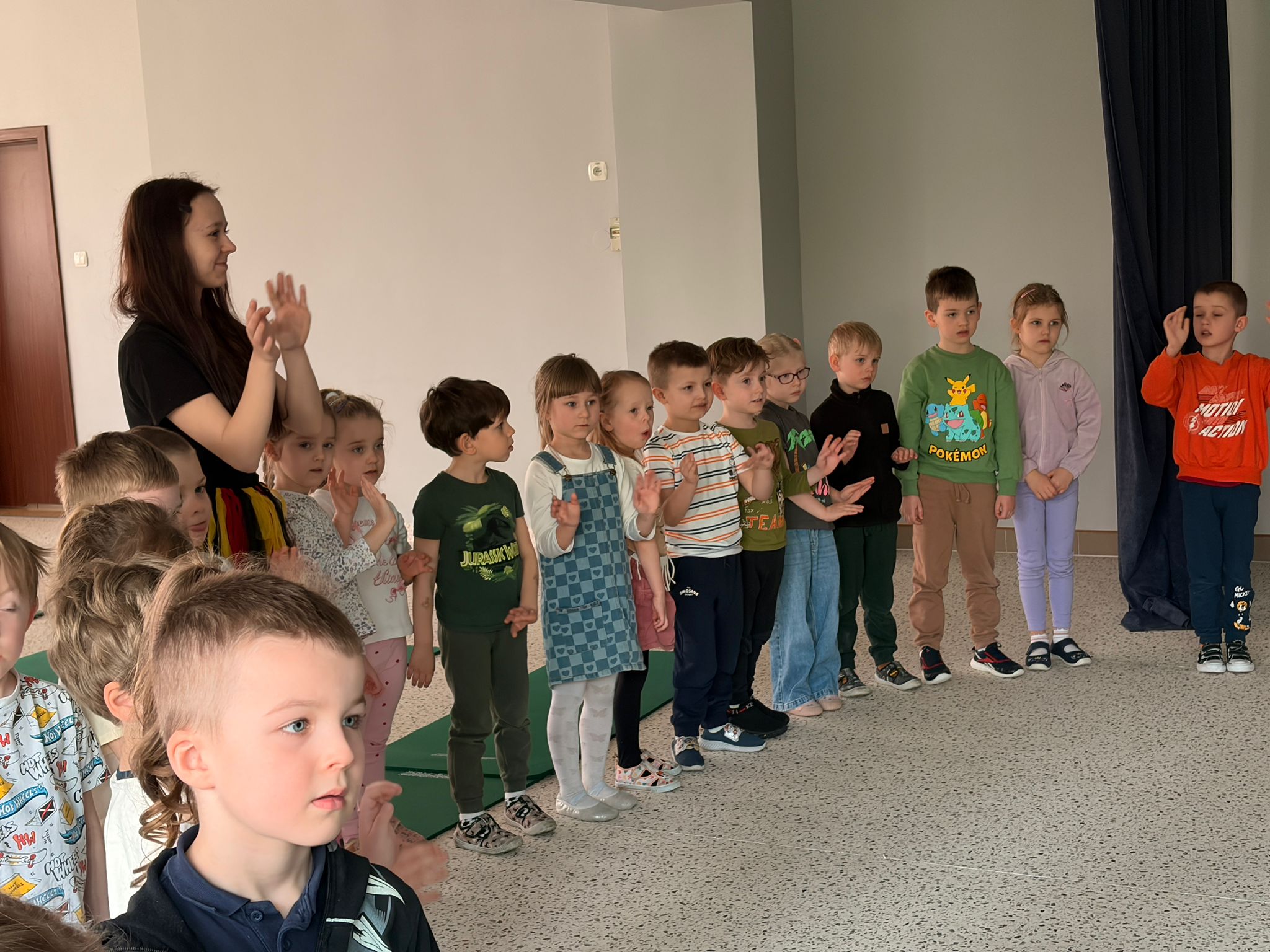 We wtorek 24 marca przedszkolaki z gr. XI i XII miały wyjątkową okazję zanurzyć się na chwilę w dość mało znanym dotychczas dla dzieci języku: języku niemieckim. A to za sprawą Natalii, Nicoli, Hani, Darii i Filipa J. z klasy 8c, którzy pod opieką Pani Katarzyny Steczyńskiej realizowali klasowy projekt z języka niemieckiego: „Uczniowie uczą uczniów”. Uczniowie SP1 wcielili się w rolę nauczycieli i z ogromnym zaangażowaniem prowadzili zajęcia dla najmłodszych. Przedszkolaki uczyły się liczyć, poznawały nazwy warzyw i owoców, a także wspólnie grały w memory, tańczyły i rapowały .