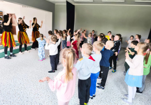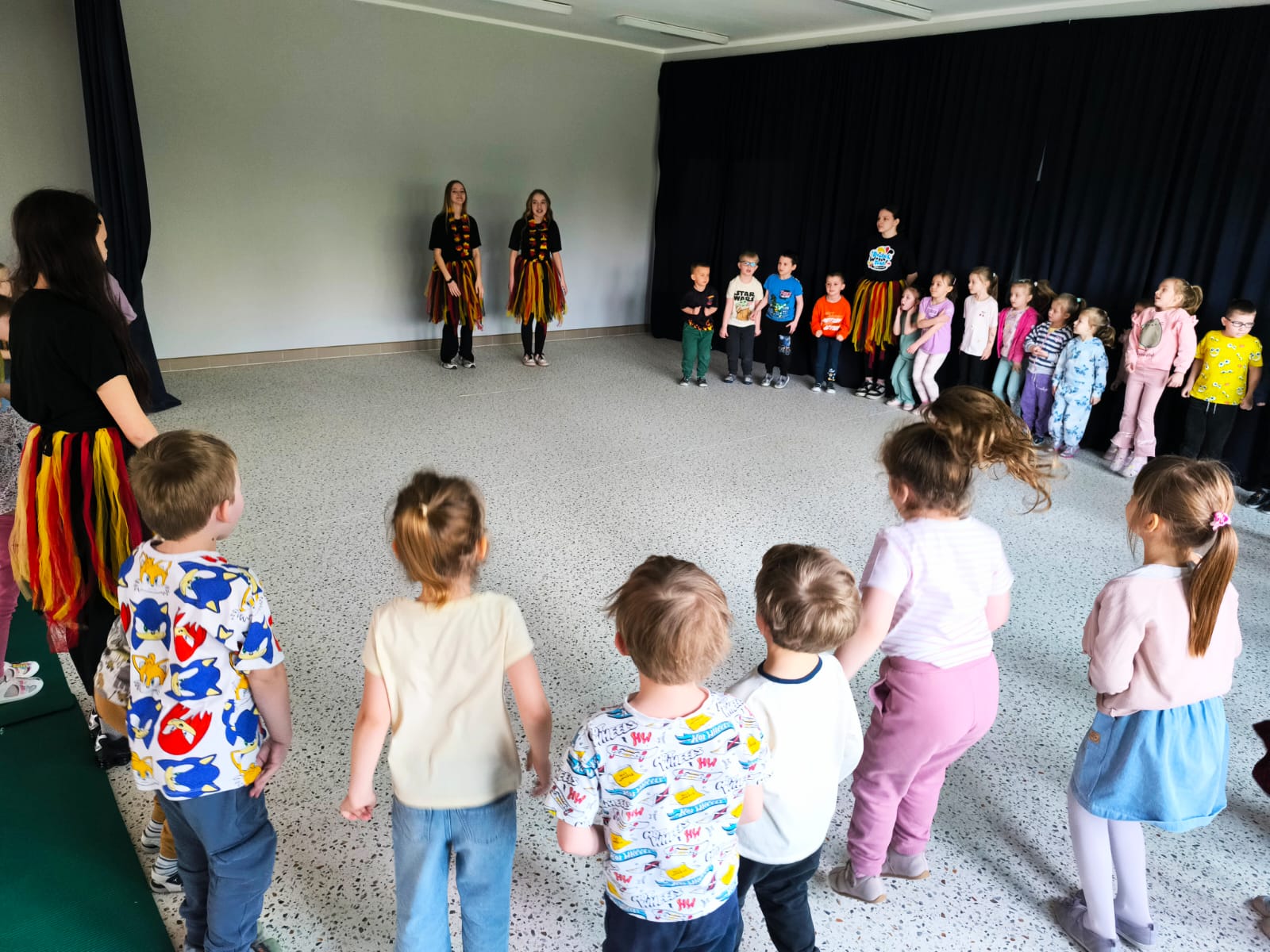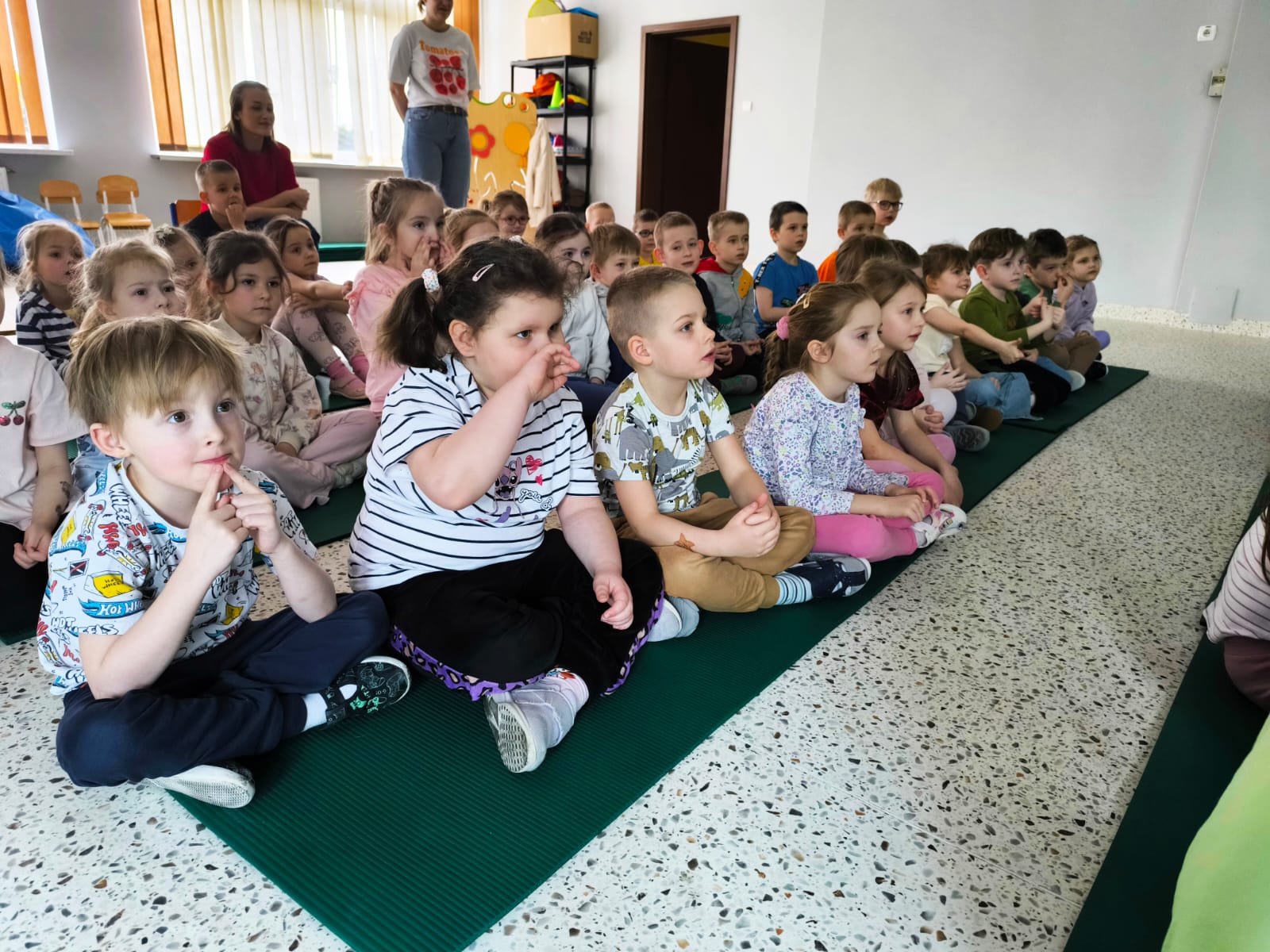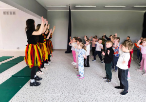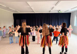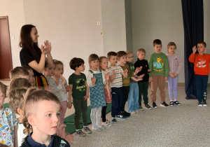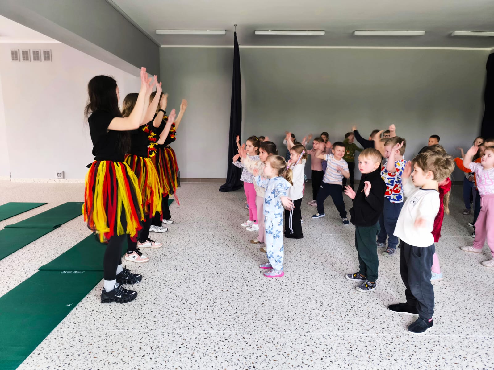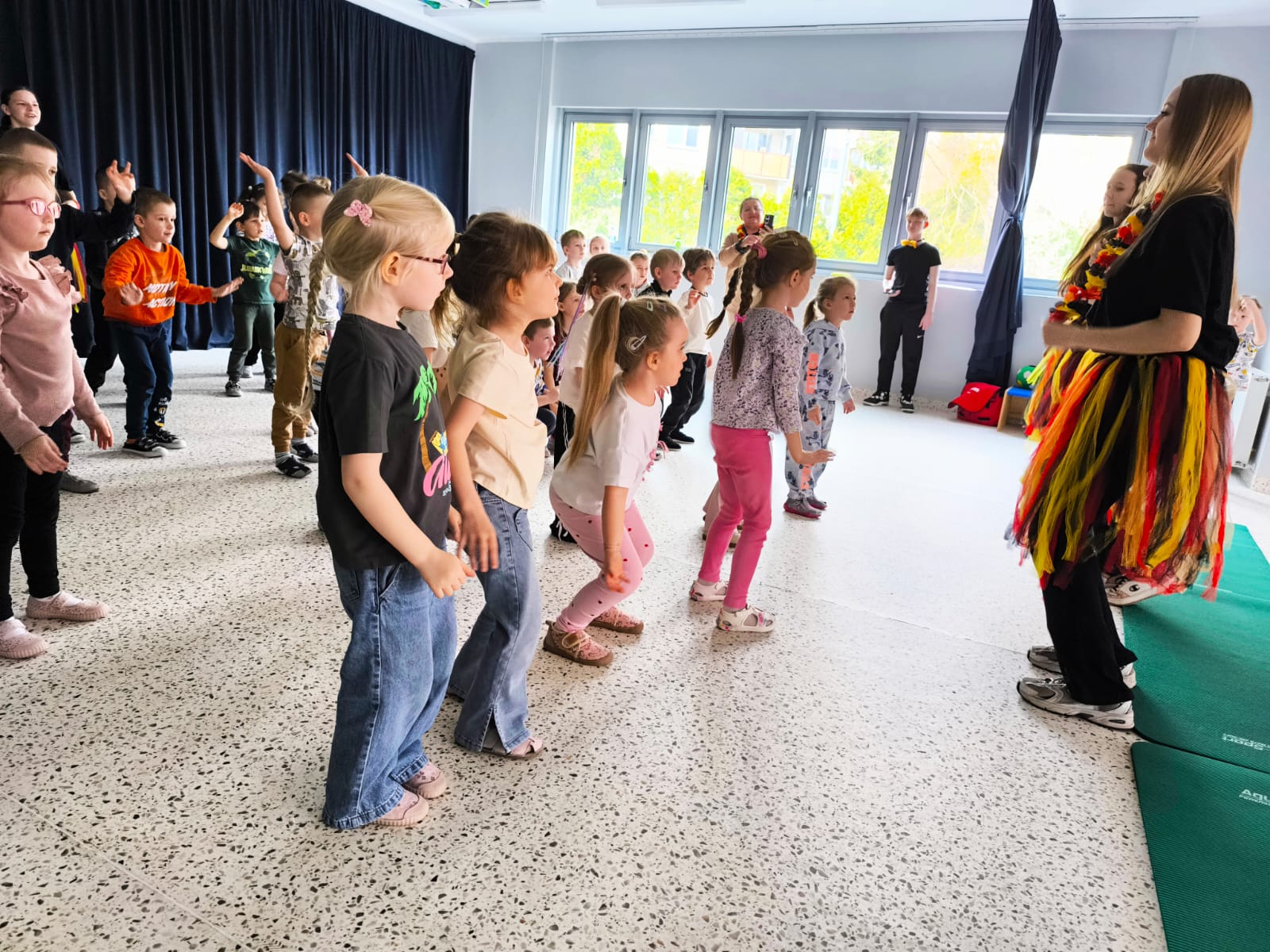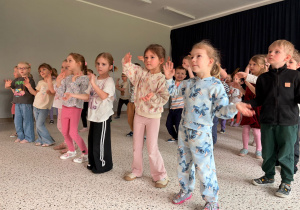 We wtorek 24 marca przedszkolaki z gr. XI i XII miały wyjątkową okazję zanurzyć się na chwilę w dość mało znanym dotychczas dla dzieci języku: języku niemieckim. A to za sprawą Natalii, Nicoli, Hani, Darii i Filipa J. z klasy 8c, którzy pod opieką Pani Katarzyny Steczyńskiej realizowali klasowy projekt z języka niemieckiego: „Uczniowie uczą uczniów”. Uczniowie SP1 wcielili się w rolę nauczycieli i z ogromnym zaangażowaniem prowadzili zajęcia dla najmłodszych. Przedszkolaki uczyły się liczyć, poznawały nazwy warzyw i owoców, a także wspólnie grały w memory, tańczyły i rapowały .