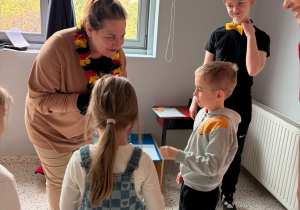 To było niezwykle wartościowe doświadczenie –uczniowie mogli poczuć się jak prawdziwi nauczyciele i przekonać się, na czym polega rola belfra. A przedszkolaki miały możliwość zabawić się w języku niemieckim i wzbogacić swoje wiadomości i umiejętności. To było naprawdę fajna lekcja! Brawo za kreatywność i świetną energię!  Uczniom ze SP nr 1 i Pani Katarzynie Steczyńskiej składamy serdeczne podziękowania za odwiedziny i oczywiście zapraszamy ponownie J. Bis bald!