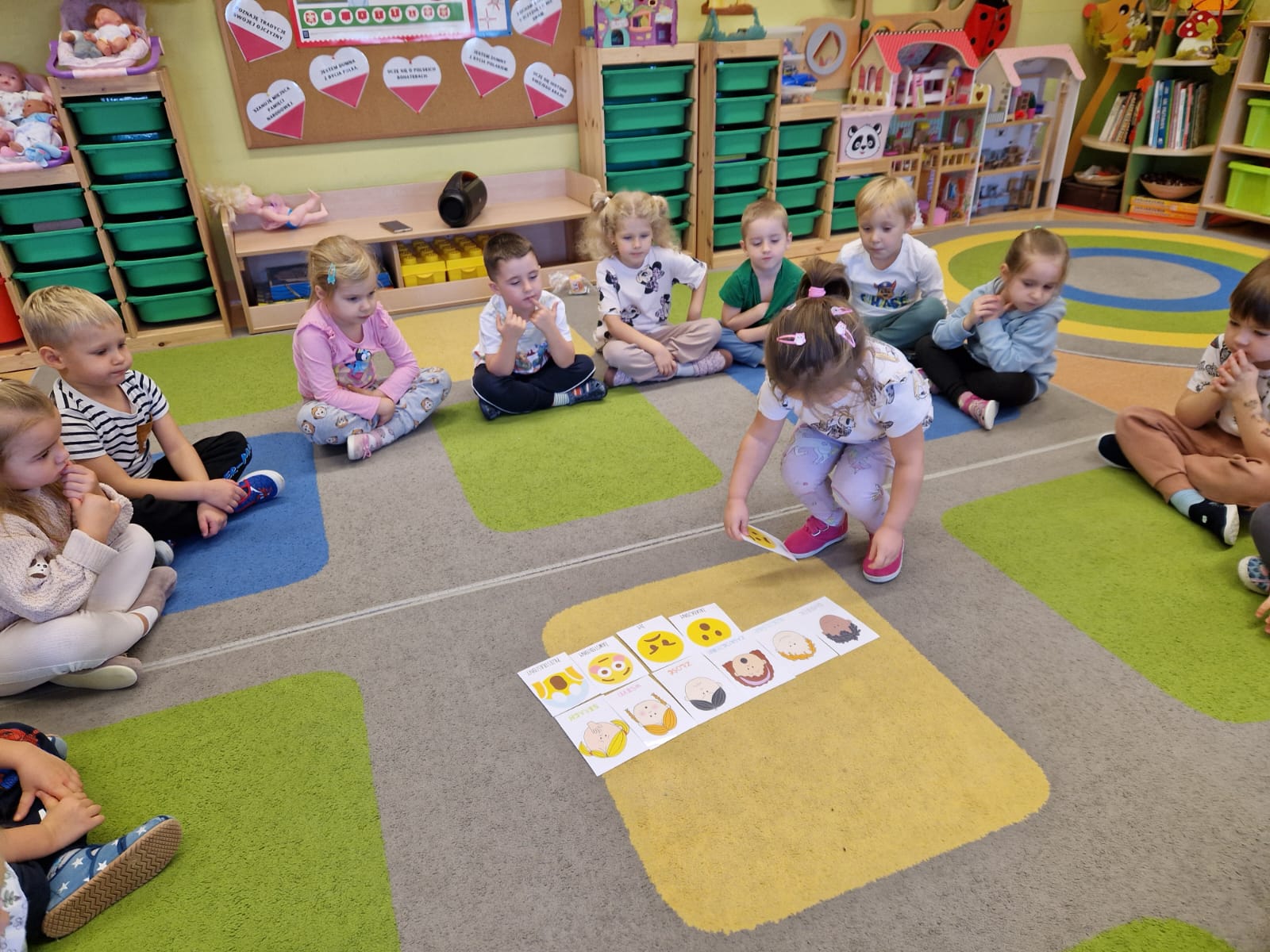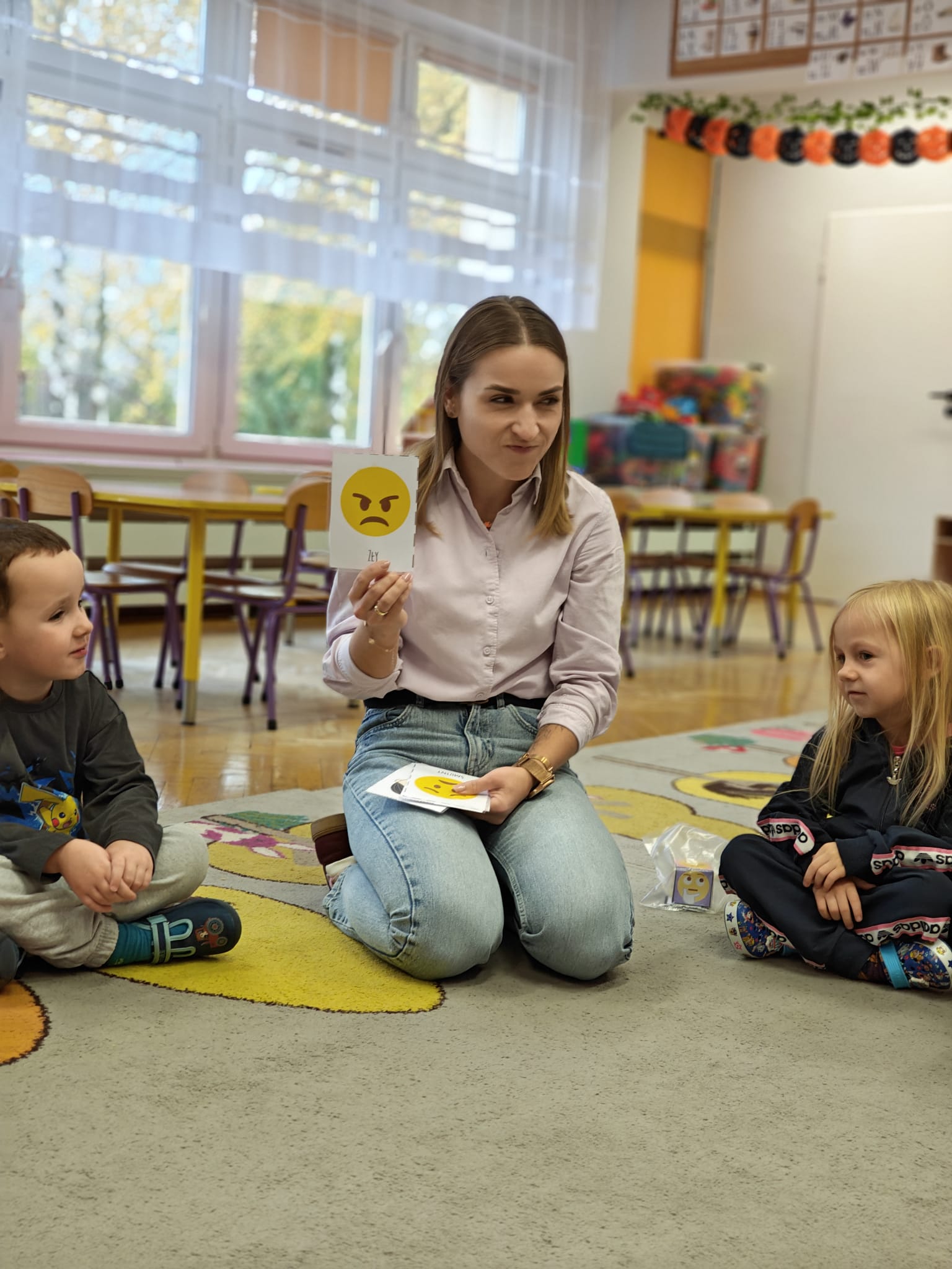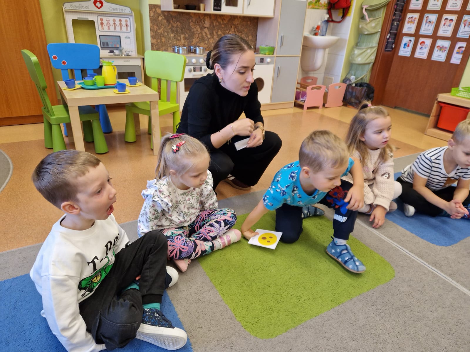 Moje emocje: głównym celem zajęć było rozwijanie u dzieci umiejętności rozpoznawania, nazywania oraz wyrażania emocji. Dzięki temu dzieci uczą się lepiej rozumieć swoje uczucia oraz uczucia innych, co sprzyja budowaniu empatii i poprawia komunikację społeczną.