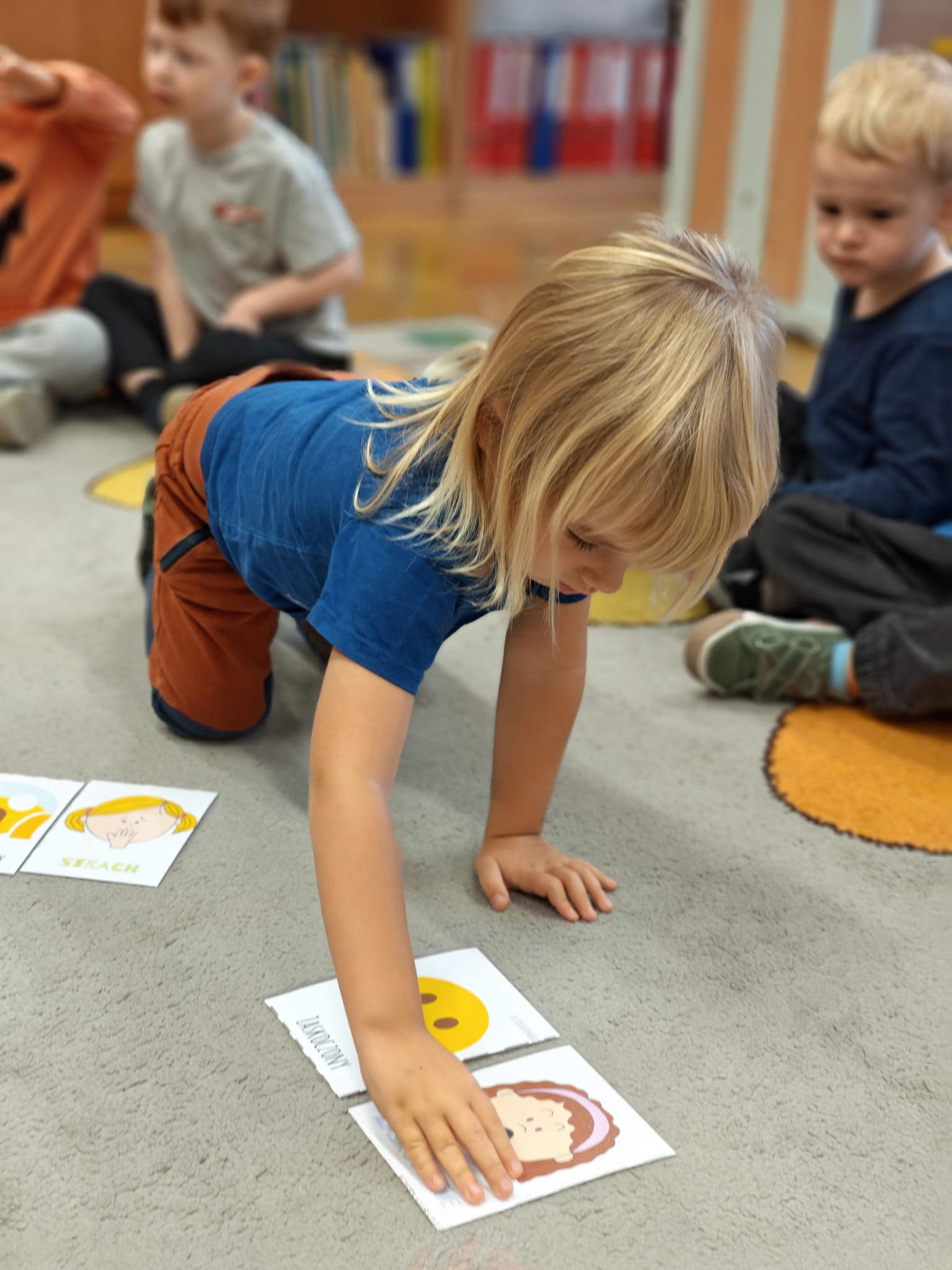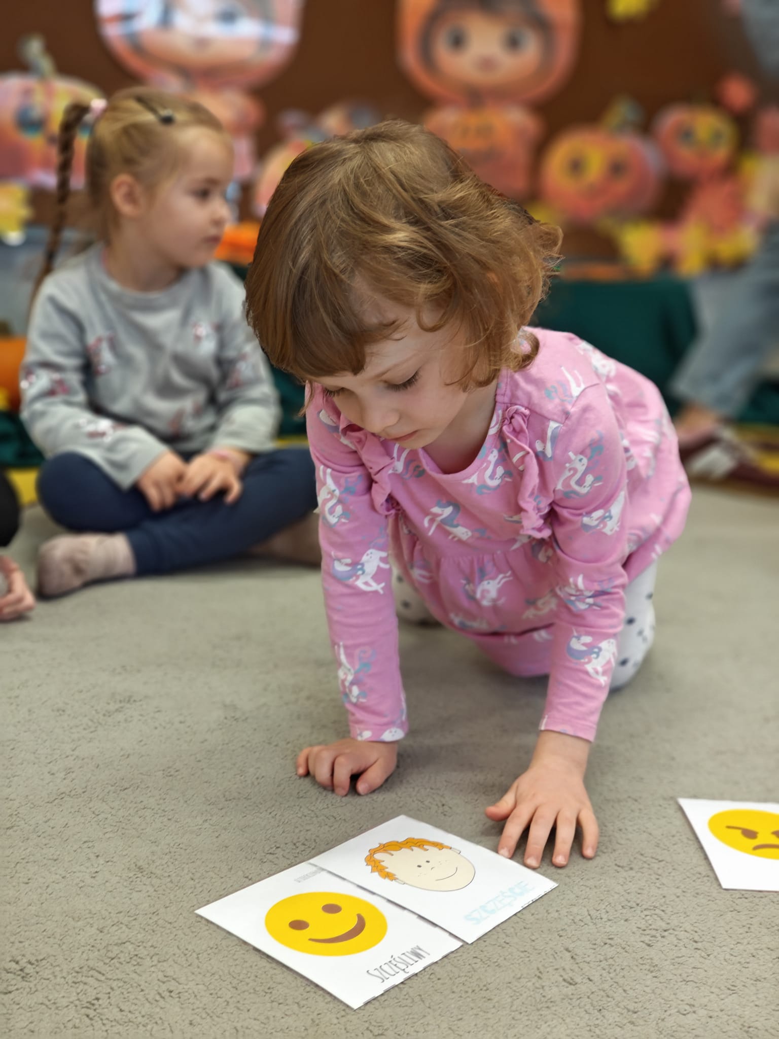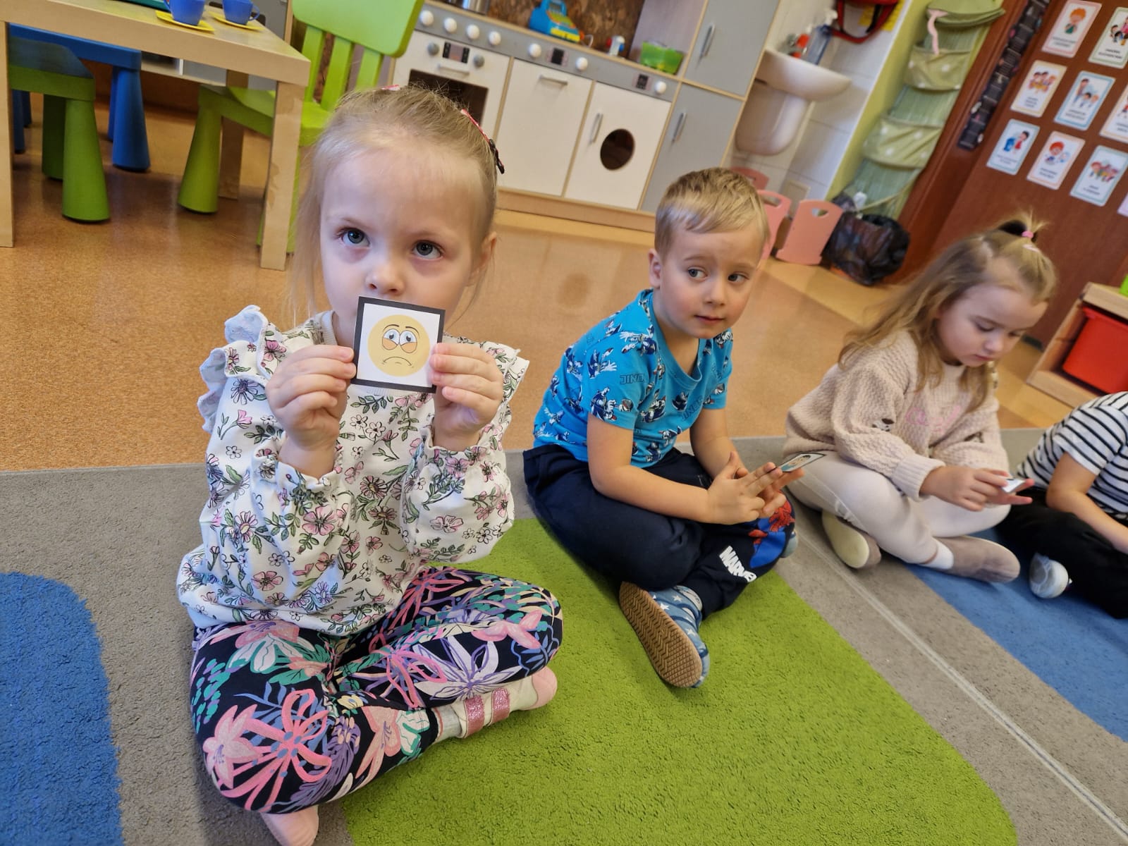 Moje emocje: głównym celem zajęć było rozwijanie u dzieci umiejętności rozpoznawania, nazywania oraz wyrażania emocji. Dzięki temu dzieci uczą się lepiej rozumieć swoje uczucia oraz uczucia innych, co sprzyja budowaniu empatii i poprawia komunikację społeczną.