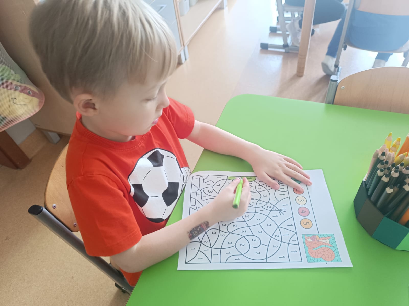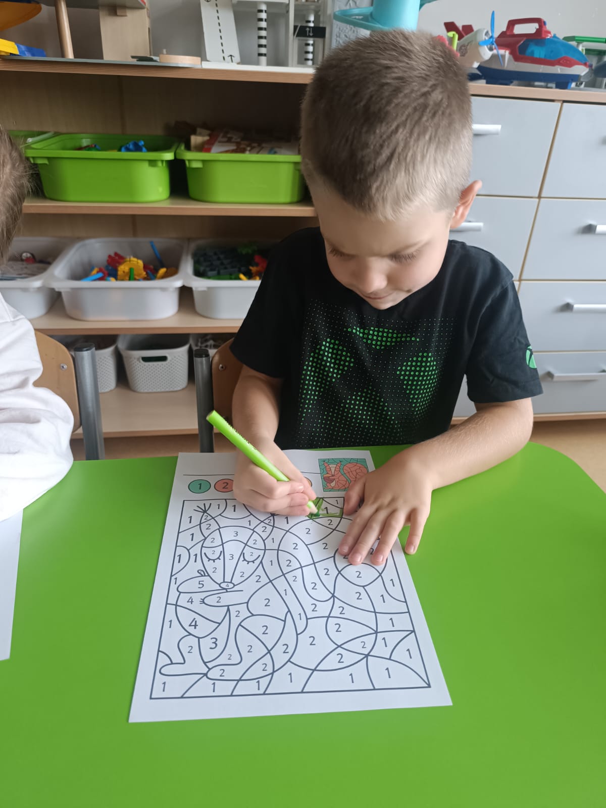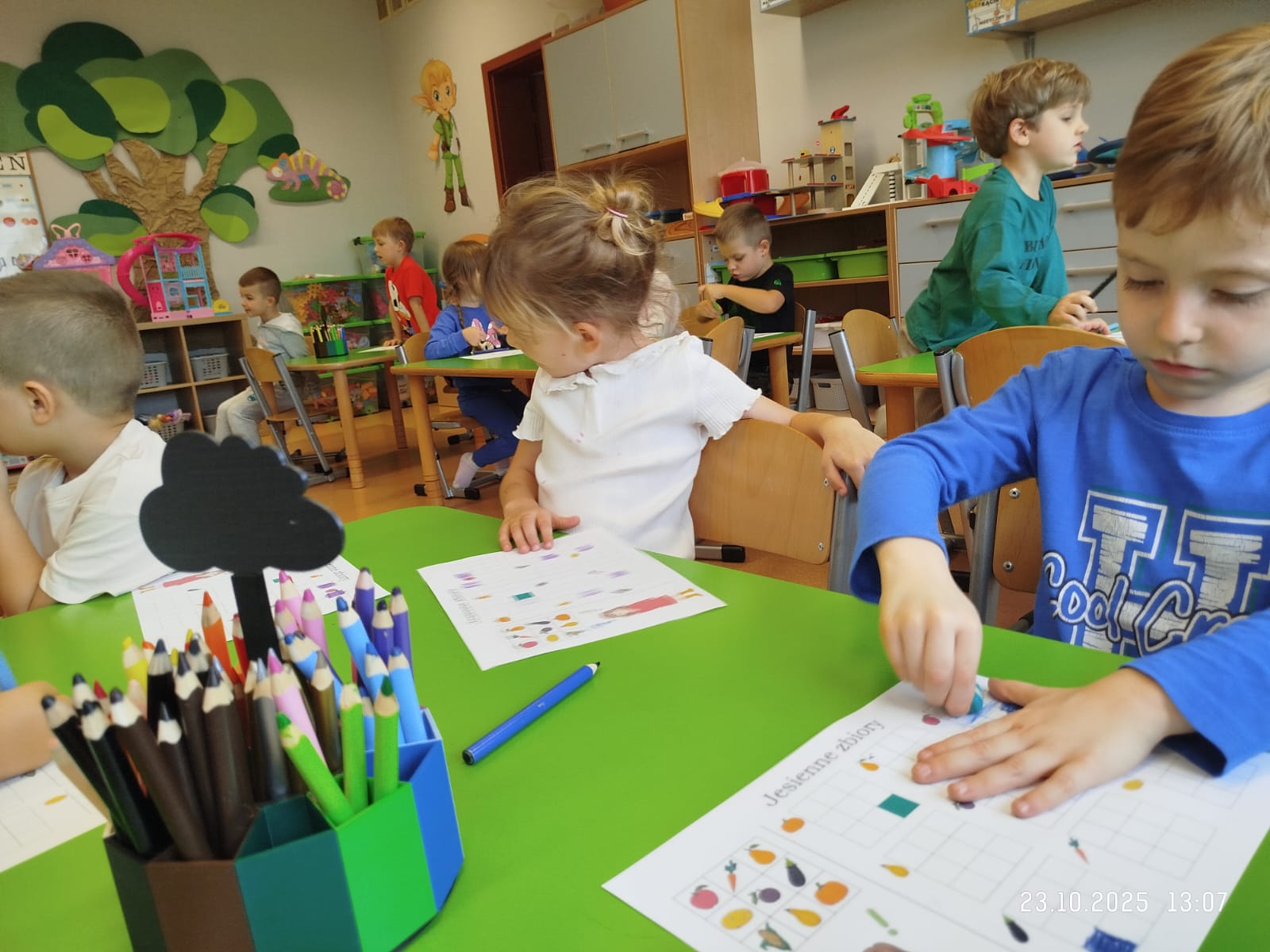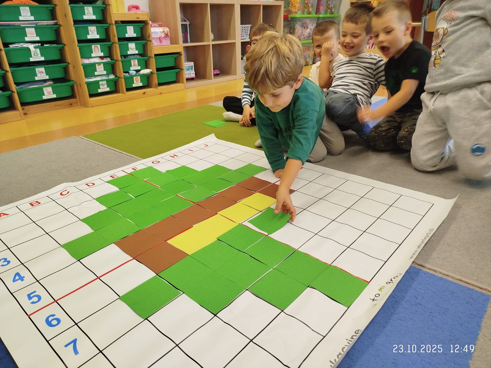CodeWeek, czyli Europejski Tydzień Kodowania, to inicjatywa promująca programowanie i umiejętności cyfrowe wśród uczestników w ciekawy i interesujący sposób. W tym czasie przedszkolaki podejmowały wiele ciekawych aktywności, rozbudzały swoją wyobraźnię, szukały rozwiązań oraz wyciągały wnioski podczas wspólnych zabaw. Dzieci zaznajomiły się z różnymi narzędziami do kodowania i chętnie uczestniczyły w zabawach. Przedszkolaki poprzez kodowanie rozwijały min. logiczne myślenie, wyobraźnię, spostrzegawczość, dedukcję, umiejętność współpracy, planowania i analizowania. Podczas zabawy dydaktycznej "Skarby jesieni" na macie do kodowania ułożyły wzór kasztana wzdłuż osi symetrii, poznając przy tym nowe pojęcie matematyczne. Zadania te sprawiły dzieciom dużą frajdę, dlatego też będziemy kontynuować naszą przygodę z kodowaniem w kolejnych latach.