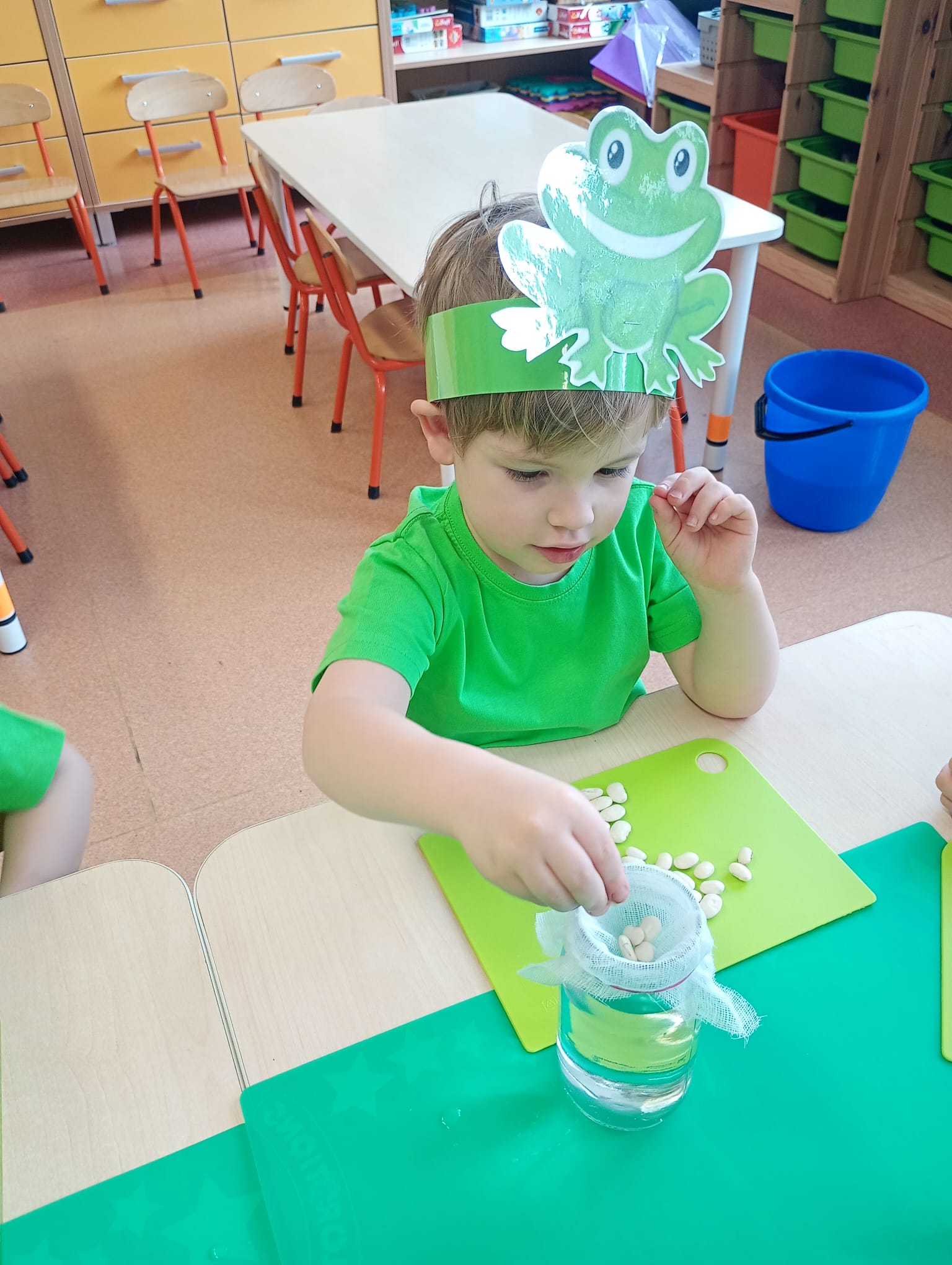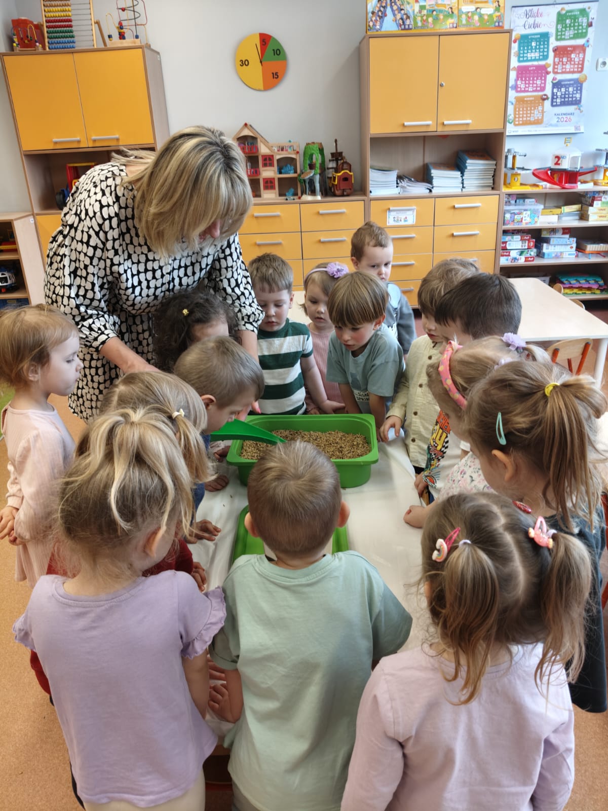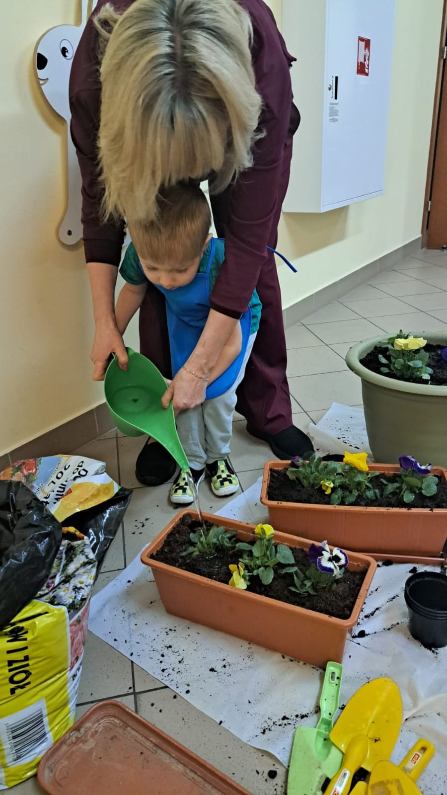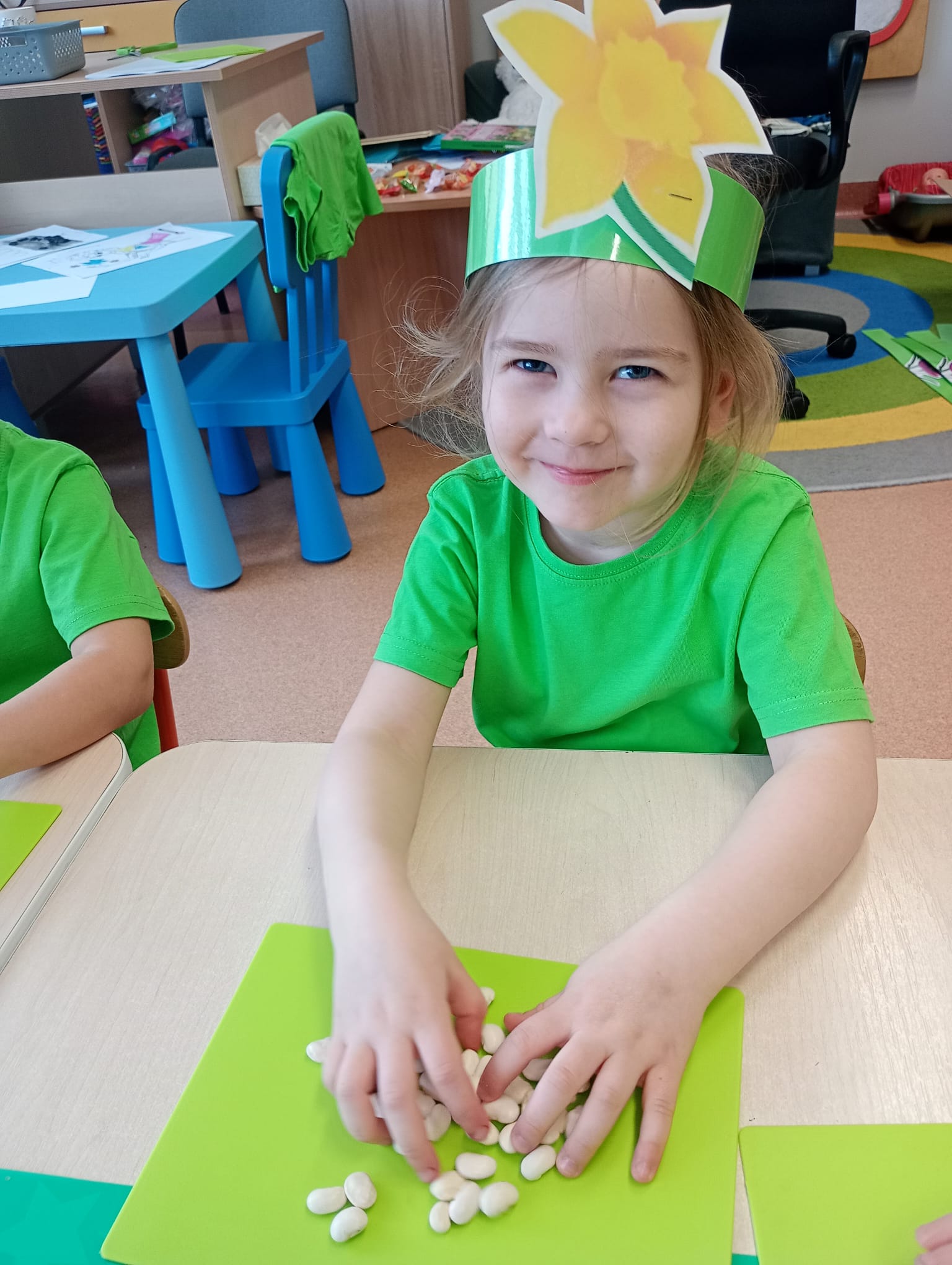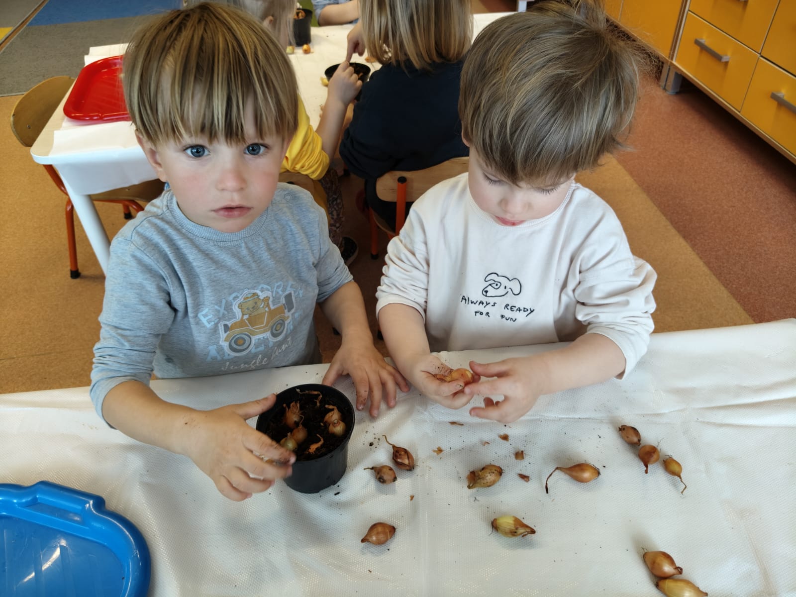 Wraz z nadejściem wiosny z powodzeniem założyliśmy zielony kącik na parapecie okiennym. Dzieci przy niewielkiej pomocy, przygotowały niezbędny warsztat pracy tj.: ziemię, nasiona, cebulki, wodę. Następnie samodzielnie zasiały nasiona rzeżuchy w pojemniczkach z namoczoną watą, w słoiczkach z wodą na gazie ziarenka fasoli, a w pojemniczkach z ziemią zasadziły cebulki i kolorowe bratki. Założone uprawy dzieci pielęgnowały, podlewał oraz każdego dnia obserwowały zmiany zachodzące w roślinach, zauważały kiełkowanie, wzrost łodyg, liści, dowiedziały się, co jest potrzebne roślinom do wzrostu. Miały możliwość zapoznania się z różnymi rodzajami nasion oraz dowiedziały jakie są sposoby uprawy roślin i ich pielęgnacji. Od momentu zakładania zielonego ogródka, doświadczały wielu wrażeń zmysłowych. Przygotowanie podłoża, dotykanie różnych części roślin, czynności pielęgnacyjne – to stymulacja zmysłu dotyku. Przy sprawdzaniu twardości nasion, przy sadzenie aktywowały czucie głębokie. Przyglądanie się efektom hodowli, wyszukiwanie zmian i innych ciekawostek pobudzało do pracy zmysł wzroku, nie zapominaliśmy także o zmysłach powonienia i smaku. Uprawa ogródka ziołowego była również naturalną okazją do rozmów z dziećmi o zasadach zdrowego żywienia. Udział w projekcie był dla dzieci wyzwaniem, które stawiało je w roli aktywnych i czujnych obserwatorów otaczającego świata. Rozbudzało zainteresowania, mobilizowało do poszukiwania odpowiedzi na różne pytania, uczyło twórczego myślenia i zaspokajało potrzeby poznawcze. Dzieci uczyły się planowania i organizacji pracy, współpracy, pozytywnej komunikacji. Doświadczały radości, satysfakcji, oraz wzmacniały poczucie własnej wartości.