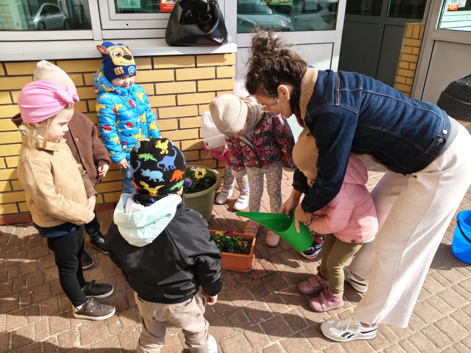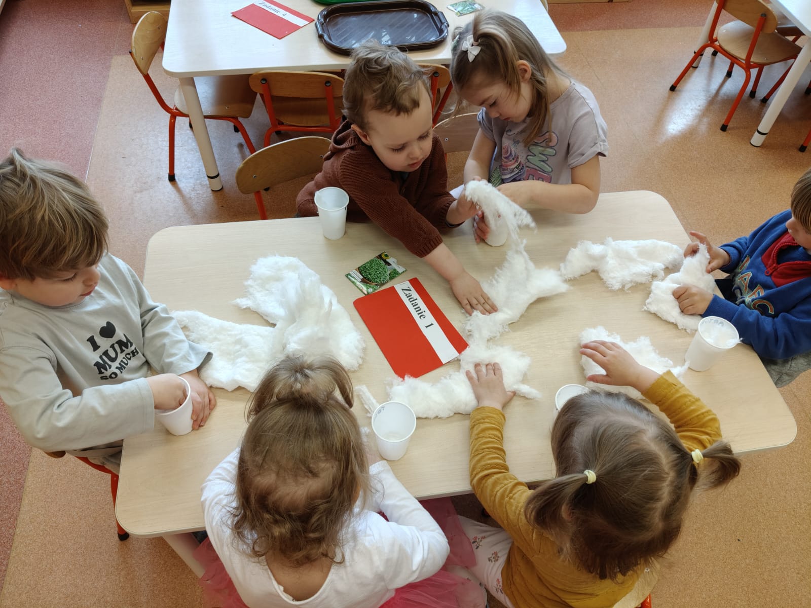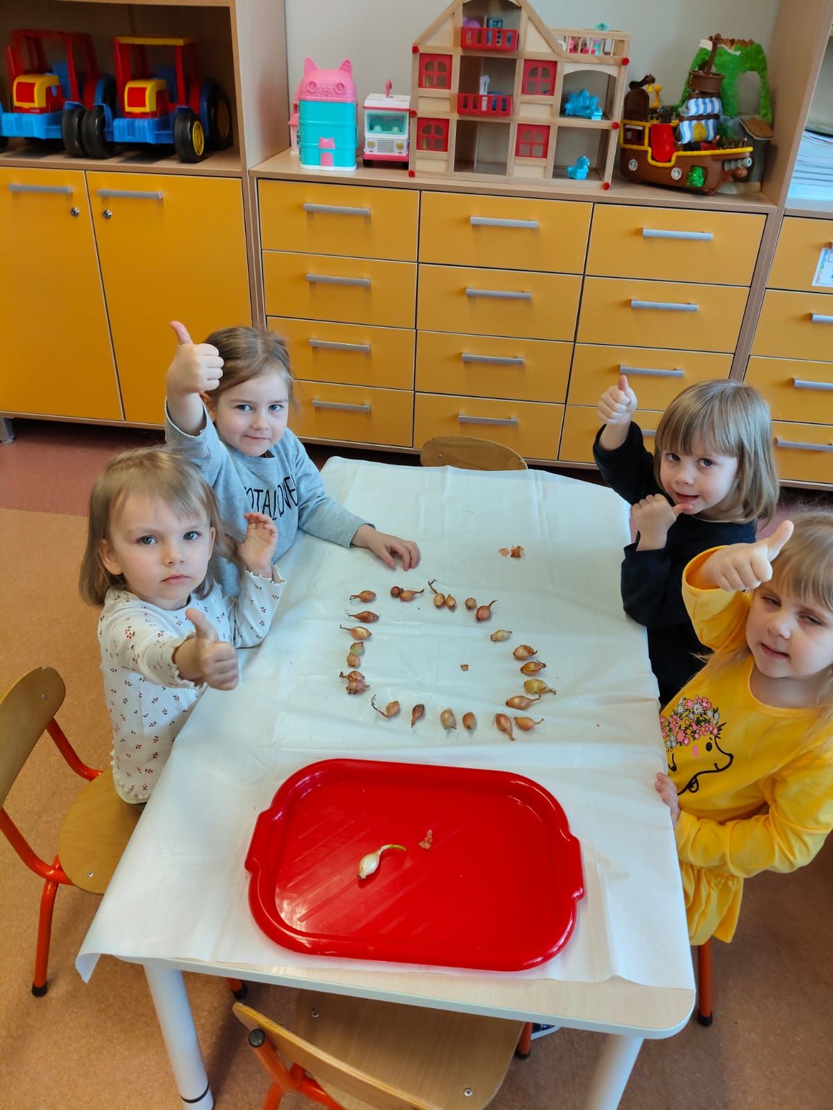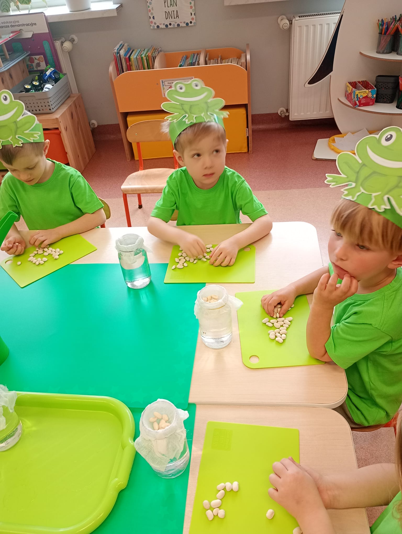 Wraz z nadejściem wiosny z powodzeniem założyliśmy zielony kącik na parapecie okiennym. Dzieci przy niewielkiej pomocy, przygotowały niezbędny warsztat pracy tj.: ziemię, nasiona, cebulki, wodę. Następnie samodzielnie zasiały nasiona rzeżuchy w pojemniczkach z namoczoną watą, w słoiczkach z wodą na gazie ziarenka fasoli, a w pojemniczkach z ziemią zasadziły cebulki i kolorowe bratki. Założone uprawy dzieci pielęgnowały, podlewał oraz każdego dnia obserwowały zmiany zachodzące w roślinach, zauważały kiełkowanie, wzrost łodyg, liści, dowiedziały się, co jest potrzebne roślinom do wzrostu. Miały możliwość zapoznania się z różnymi rodzajami nasion oraz dowiedziały jakie są sposoby uprawy roślin i ich pielęgnacji. Od momentu zakładania zielonego ogródka, doświadczały wielu wrażeń zmysłowych. Przygotowanie podłoża, dotykanie różnych części roślin, czynności pielęgnacyjne – to stymulacja zmysłu dotyku. Przy sprawdzaniu twardości nasion, przy sadzenie aktywowały czucie głębokie. Przyglądanie się efektom hodowli, wyszukiwanie zmian i innych ciekawostek pobudzało do pracy zmysł wzroku, nie zapominaliśmy także o zmysłach powonienia i smaku. Uprawa ogródka ziołowego była również naturalną okazją do rozmów z dziećmi o zasadach zdrowego żywienia. Udział w projekcie był dla dzieci wyzwaniem, które stawiało je w roli aktywnych i czujnych obserwatorów otaczającego świata. Rozbudzało zainteresowania, mobilizowało do poszukiwania odpowiedzi na różne pytania, uczyło twórczego myślenia i zaspokajało potrzeby poznawcze. Dzieci uczyły się planowania i organizacji pracy, współpracy, pozytywnej komunikacji. Doświadczały radości, satysfakcji, oraz wzmacniały poczucie własnej wartości.