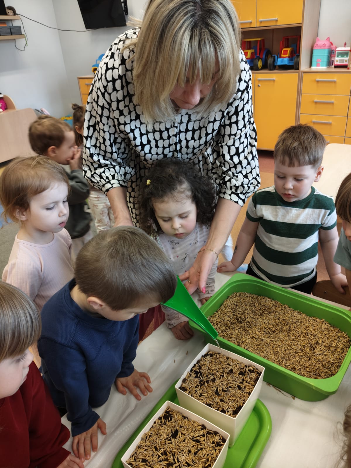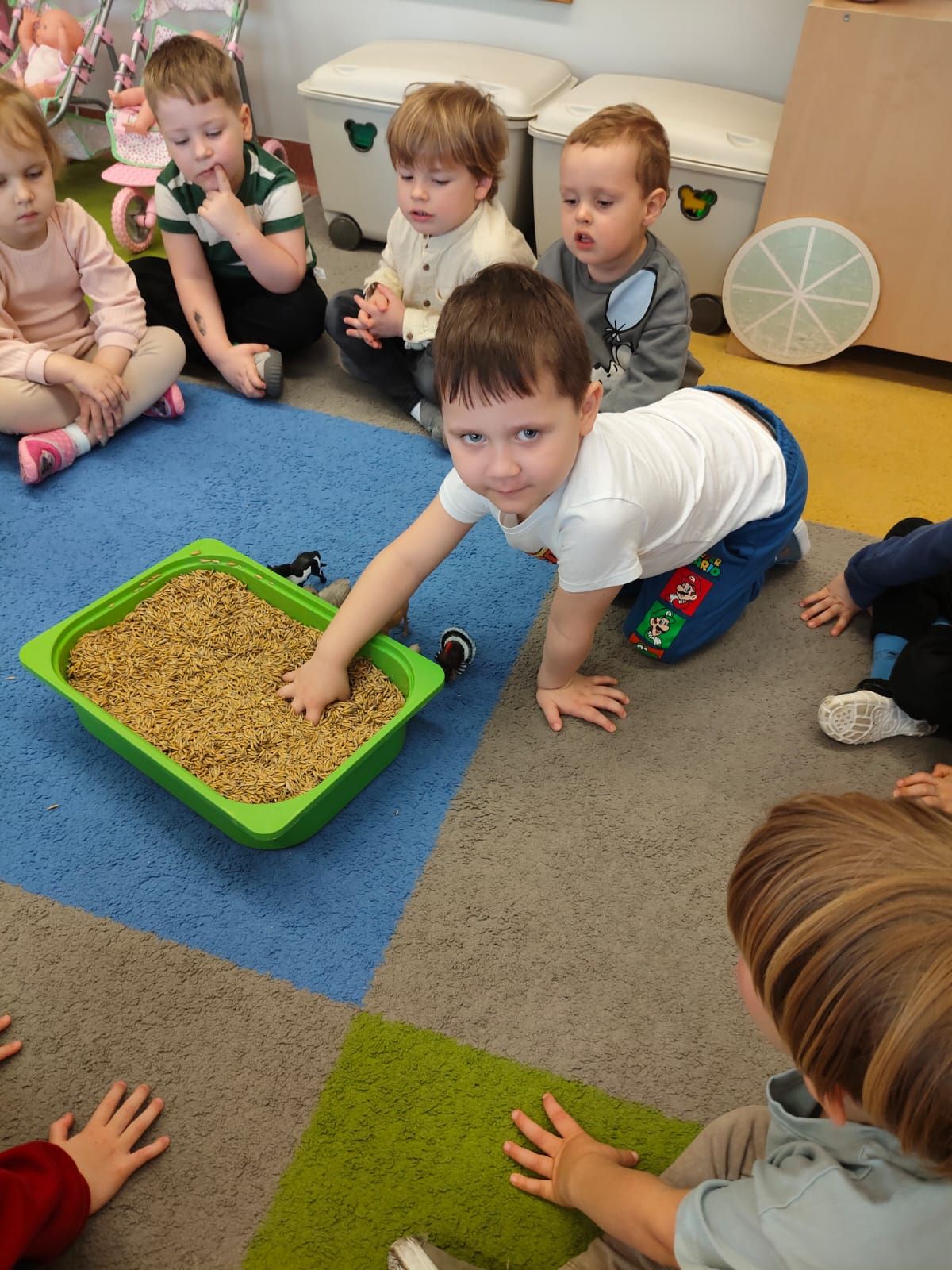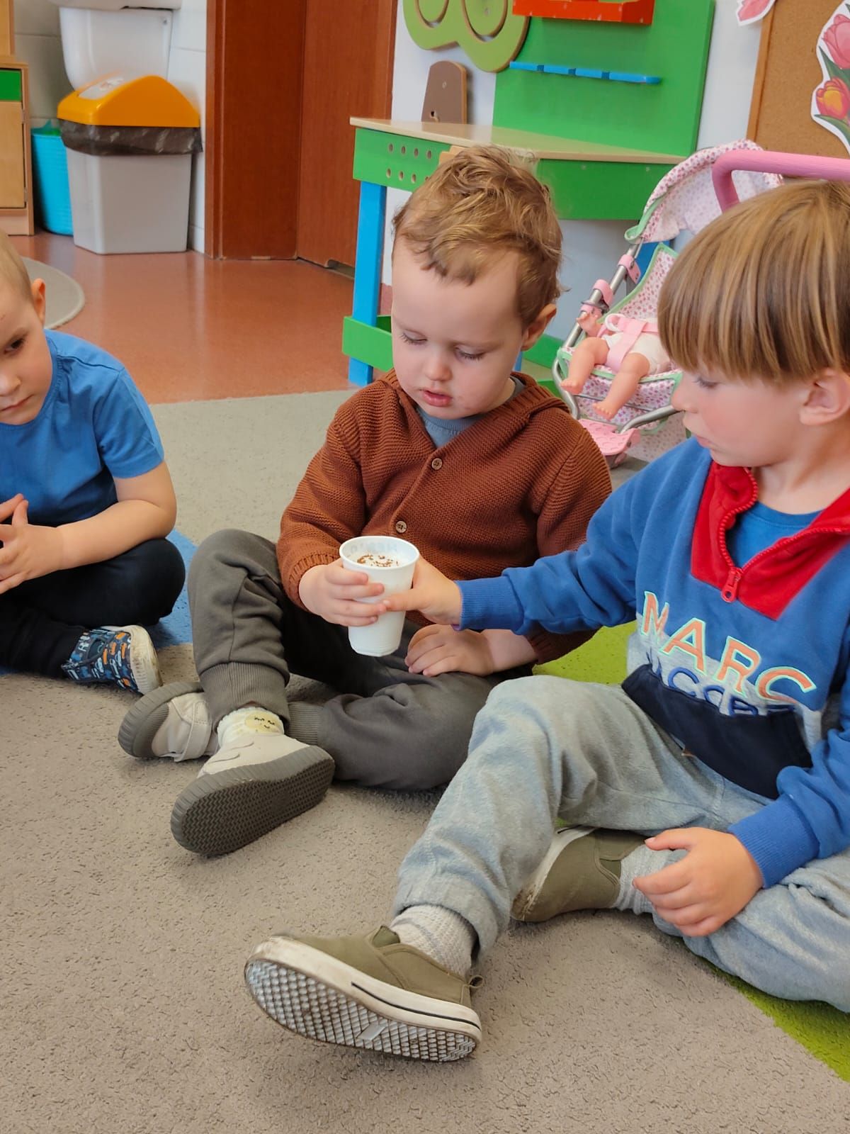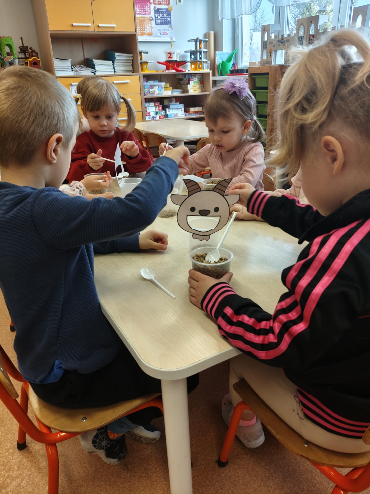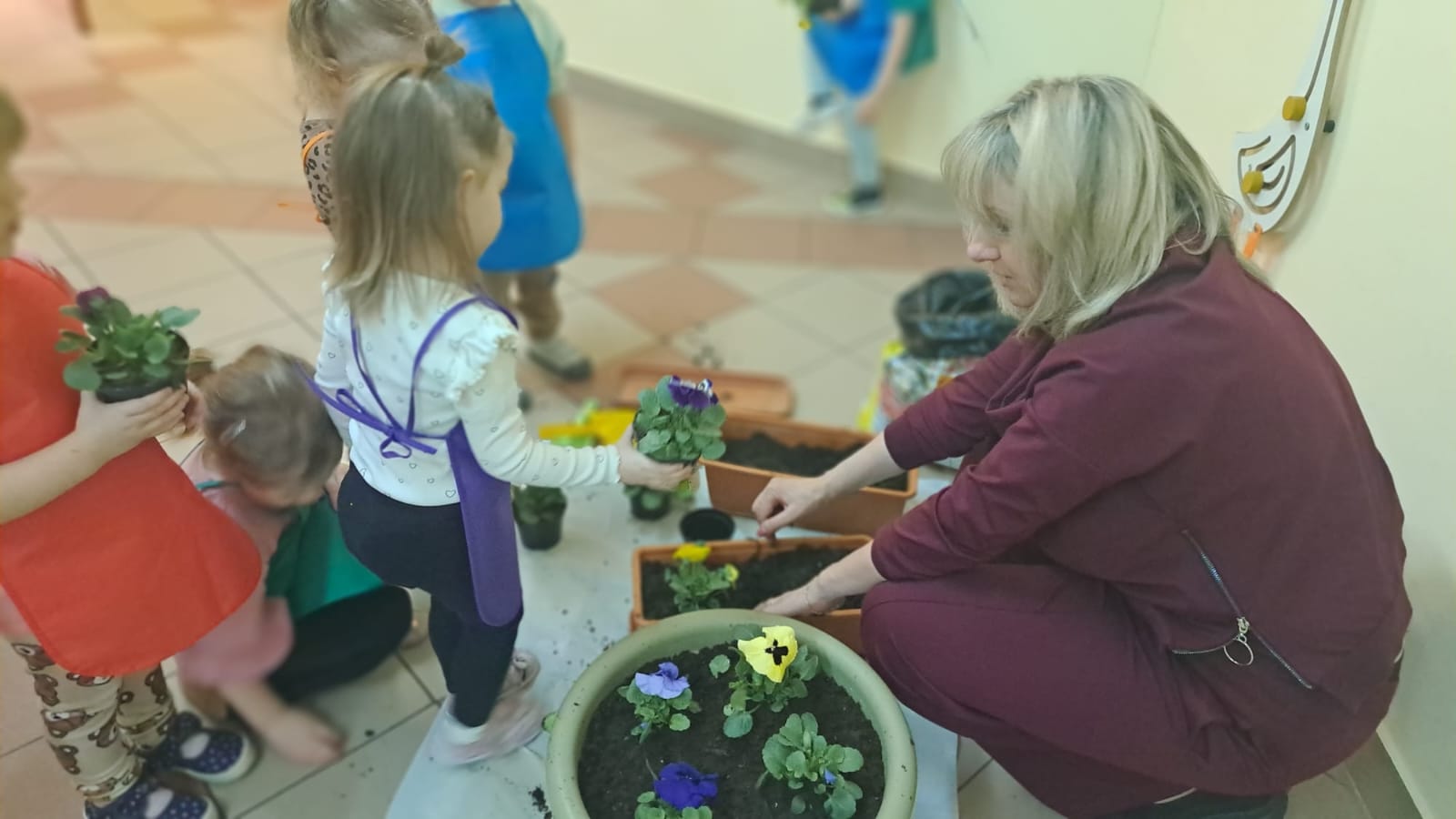 Wraz z nadejściem wiosny z powodzeniem założyliśmy zielony kącik na parapecie okiennym. Dzieci przy niewielkiej pomocy, przygotowały niezbędny warsztat pracy tj.: ziemię, nasiona, cebulki, wodę. Następnie samodzielnie zasiały nasiona rzeżuchy w pojemniczkach z namoczoną watą, w słoiczkach z wodą na gazie ziarenka fasoli, a w pojemniczkach z ziemią zasadziły cebulki i kolorowe bratki. Założone uprawy dzieci pielęgnowały, podlewał oraz każdego dnia obserwowały zmiany zachodzące w roślinach, zauważały kiełkowanie, wzrost łodyg, liści, dowiedziały się, co jest potrzebne roślinom do wzrostu. Miały możliwość zapoznania się z różnymi rodzajami nasion oraz dowiedziały jakie są sposoby uprawy roślin i ich pielęgnacji. Od momentu zakładania zielonego ogródka, doświadczały wielu wrażeń zmysłowych. Przygotowanie podłoża, dotykanie różnych części roślin, czynności pielęgnacyjne – to stymulacja zmysłu dotyku. Przy sprawdzaniu twardości nasion, przy sadzenie aktywowały czucie głębokie. Przyglądanie się efektom hodowli, wyszukiwanie zmian i innych ciekawostek pobudzało do pracy zmysł wzroku, nie zapominaliśmy także o zmysłach powonienia i smaku. Uprawa ogródka ziołowego była również naturalną okazją do rozmów z dziećmi o zasadach zdrowego żywienia. Udział w projekcie był dla dzieci wyzwaniem, które stawiało je w roli aktywnych i czujnych obserwatorów otaczającego świata. Rozbudzało zainteresowania, mobilizowało do poszukiwania odpowiedzi na różne pytania, uczyło twórczego myślenia i zaspokajało potrzeby poznawcze. Dzieci uczyły się planowania i organizacji pracy, współpracy, pozytywnej komunikacji. Doświadczały radości, satysfakcji, oraz wzmacniały poczucie własnej wartości.